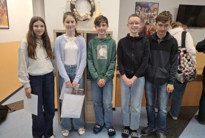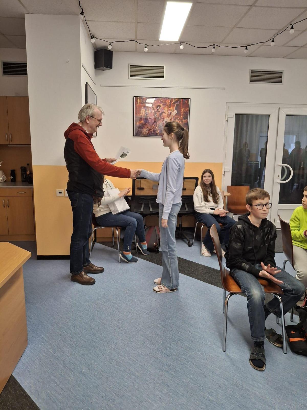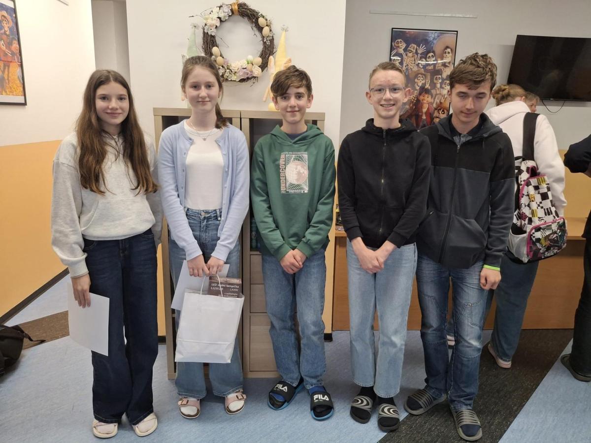 Všem žákům děkujeme za skvělou reprezentaci naší školy. Lucce přejeme mnoho úspěchů v krajském kole a budeme jí držet palce, aby to zlato znovu „cinklo".