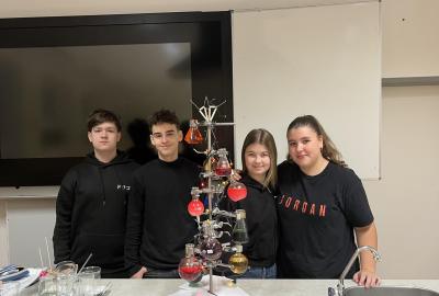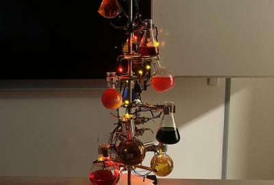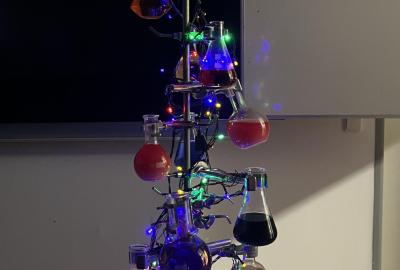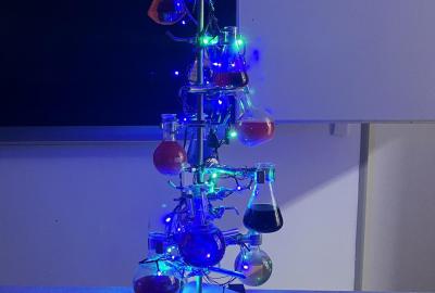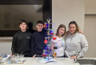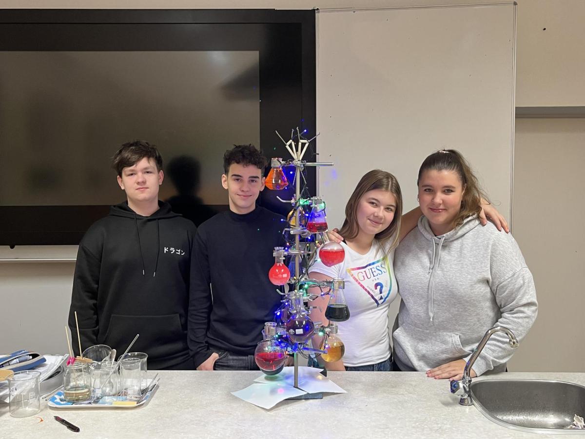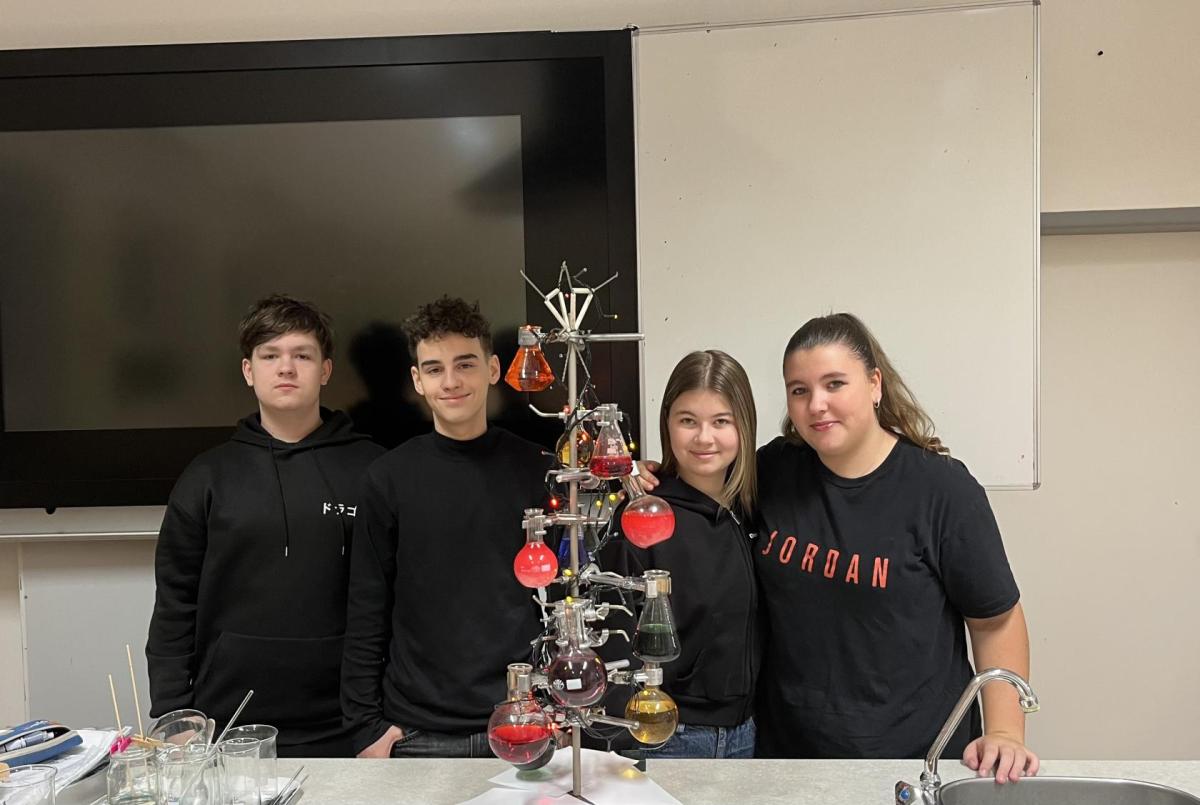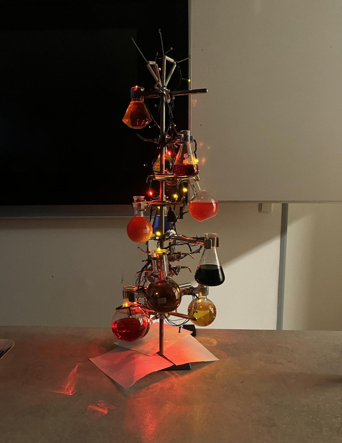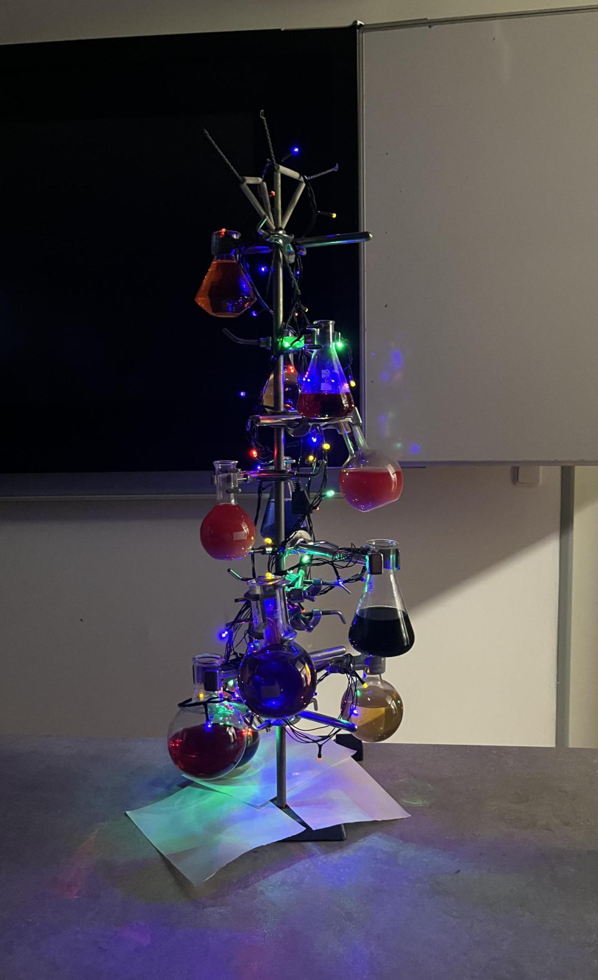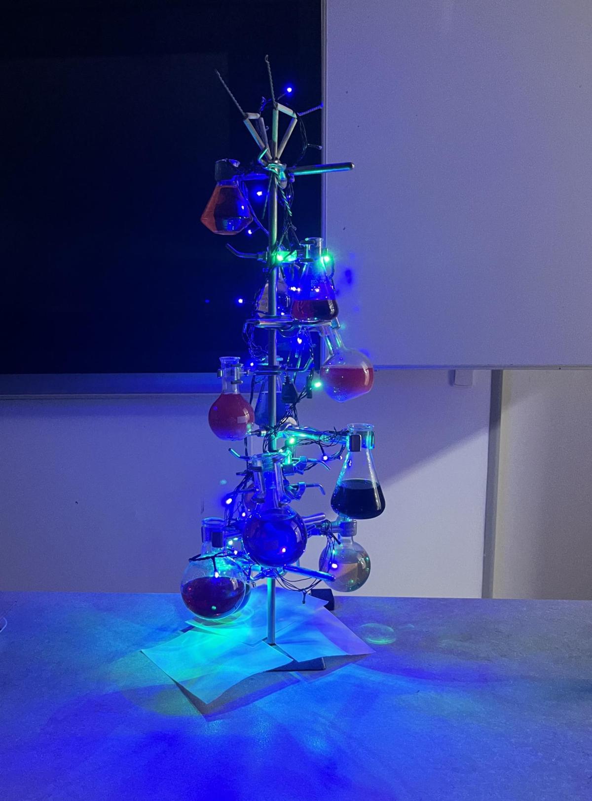Žáci chemického kroužku vytvořili pro spolužáky vánoční stromek. Jak se vám líbí?