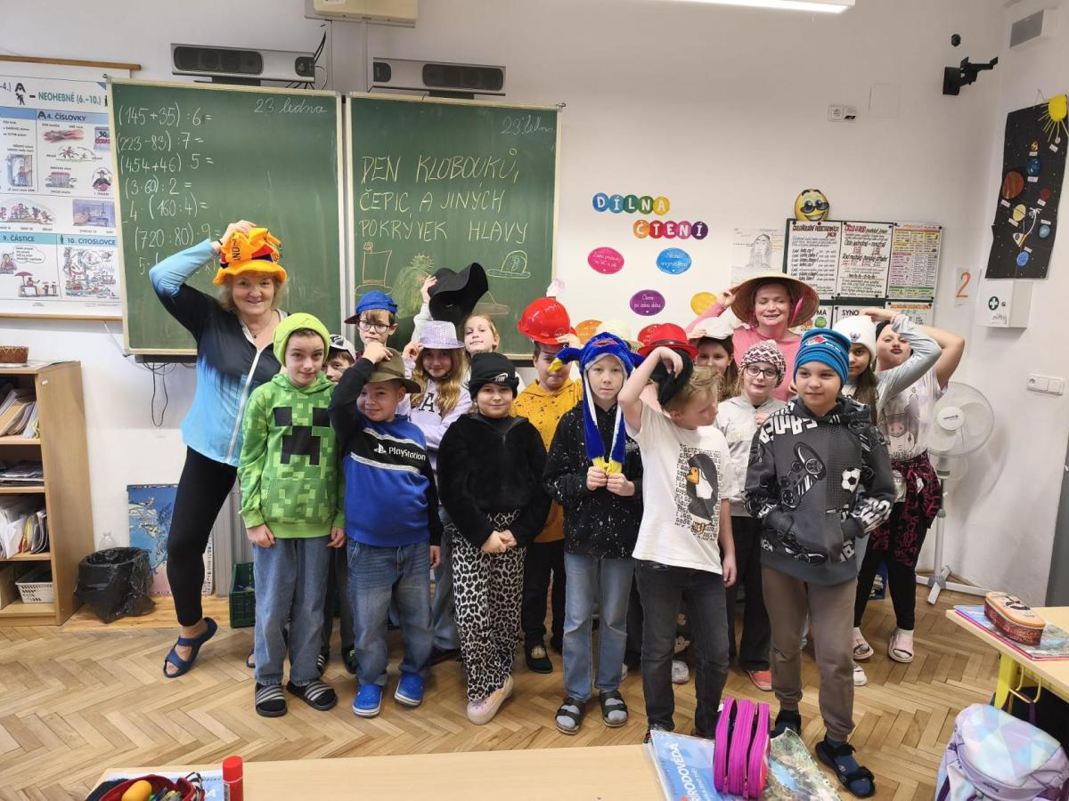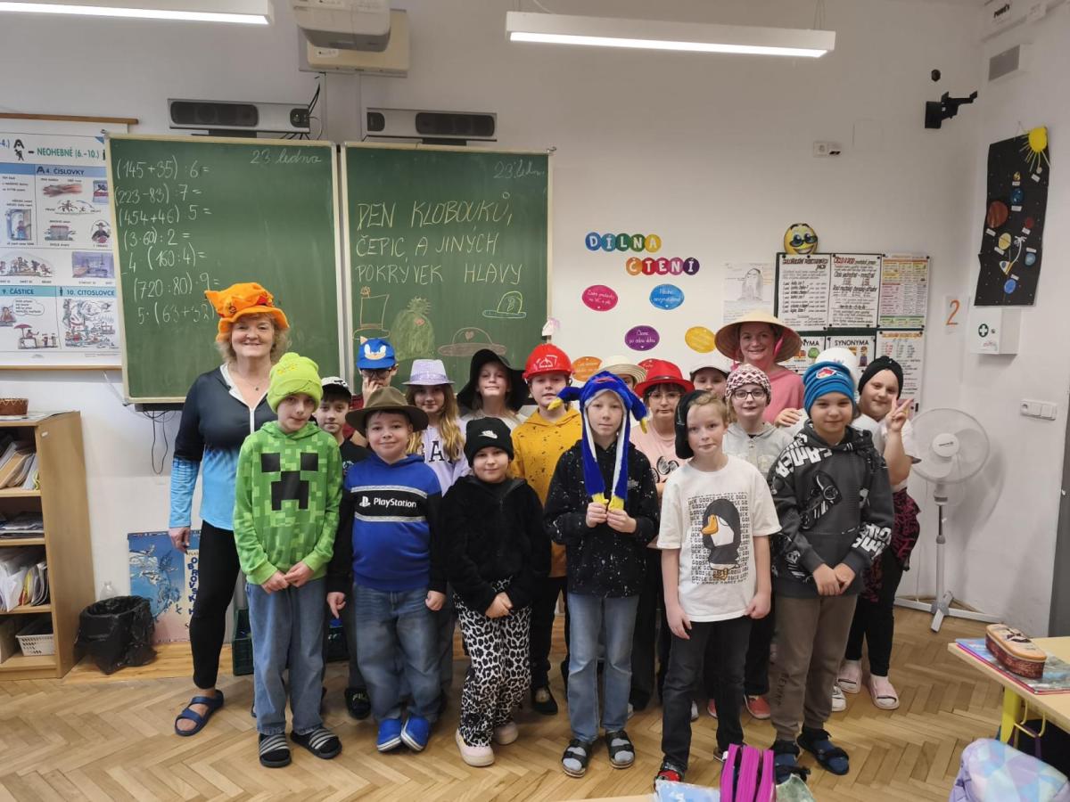 Během ledna se na naší škole uskutečnil další tematický den pořádaný žákovskou radou školy. Tentokrát byl ve znamení klobouků a dalších pokrývek hlavy. Tato akce pro měsíc leden nebyla vybrána náhodně. Na 15. ledna totiž vychází Mezinárodní den pokrývek hlavy. Tento netradiční svátek vybízí k nošení klobouků, čepic, čelenek či jiných zajímavých pokrývek. Cílem je nejen připomenutí ochrany hlavy v zimním období, ale i zábava a kreativita.