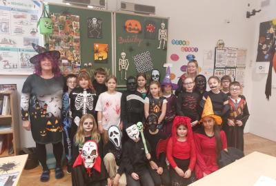 Na konci října proběhl na naší škole tematický den spojený s obdobím tajemna a mystična. V Čechách máme svátek Všech svatých, po kterém následují Dušičky. V anglosaských zemích se v tuto dobu slaví Halloween, který je díky strašidelnosti svátkem, který láká děti po celém světě k oslavám. Přesně na 31. října se chodby naší školy přeměnily na přehlídku tematických kostýmů a doplňků. Učitelé připravili aktivity spojené s podzimním obdobím a do akce školy se zapojili dokonce i rodiče, kteří se svými ratolestmi napekli dobroty. Za co se převlékli naši žáci a žákyně se můžete podívat do fotogalerie. Akci pro děti i učitele uspořádala žákovská rada školy.