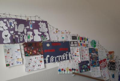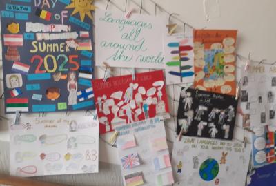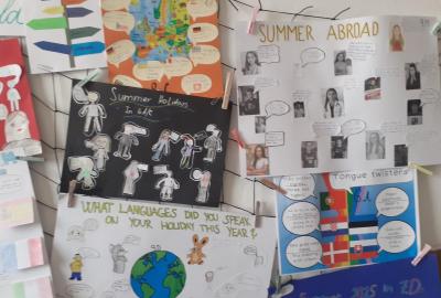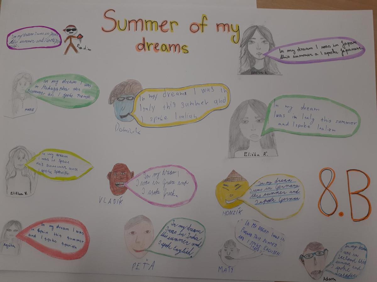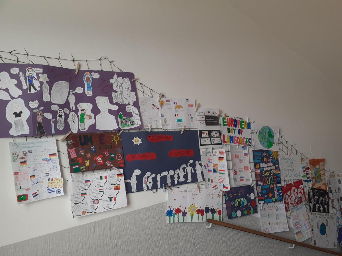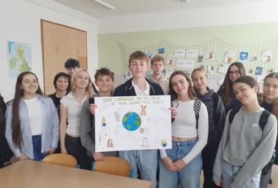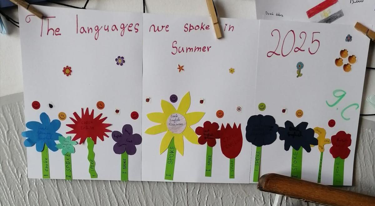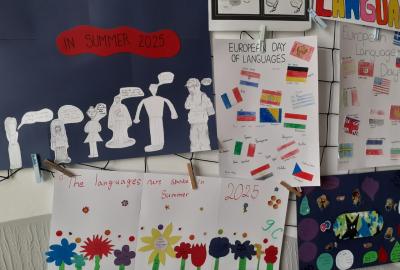 Propagace studia jazyků je nedílnou součástí našeho vzdělávání. I letos jsme 26. září na Evropský den jazyků odstartovali v rámci hodin anglického jazyka různé aktivity napříč ročníky 2. stupně. Ohlédnutím se za uplynulými prázdninami jsme zvolili společné komunikované téma: Komunikace v zahraničí během letních prázdnin. Žáci pod vedením svých učitelů anglického jazyka pracovali na různých aktivitách ve skupinách, ve dvojicích nebo individuálně. Náplní byly nejen dialogy, ale např. prezentace destinací, které žáci během léta navštívili. Někteří zavzpomínali na fráze a věty, které v různých zemích slyšeli či sami použili. Jako výstup žáci zpracovali nápadité projekty ve formátu A4 i více, které nyní zdobí boční stěnu schodiště vedoucí do vrchních pater 2. stupně. Tato cesta vzhůru, možná právě symbolicky, naznačuje, že díky komunikačním dovednostem a schopnostem se domluvit v jiném kulturním prostředí, máme šanci se lépe uplatnit a uspět v dnešním světě. Každý jazyk rozšiřuje naše obzory, umožňuje nám lépe porozumět jiným lidem a kulturám a obohacuje nás o nové dovednosti. Přísloví, které je připisováno J.A.Komenskému naznačuje, že znalost jazyků zvyšuje naši osobní hodnotu a rozšiřuje naše chápaní světa.