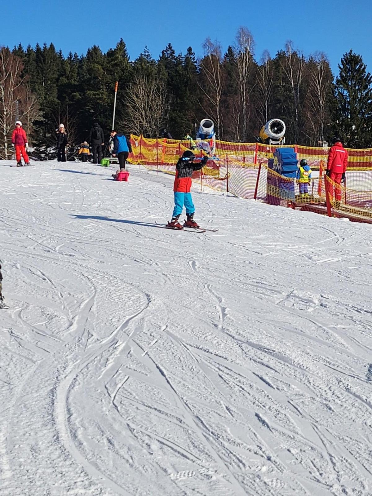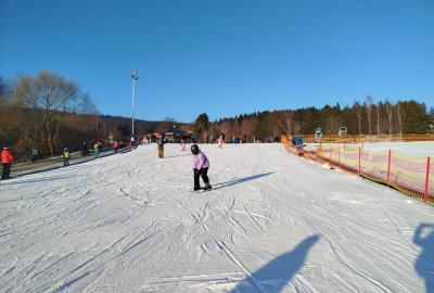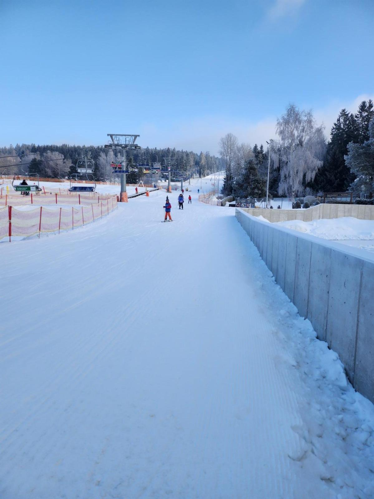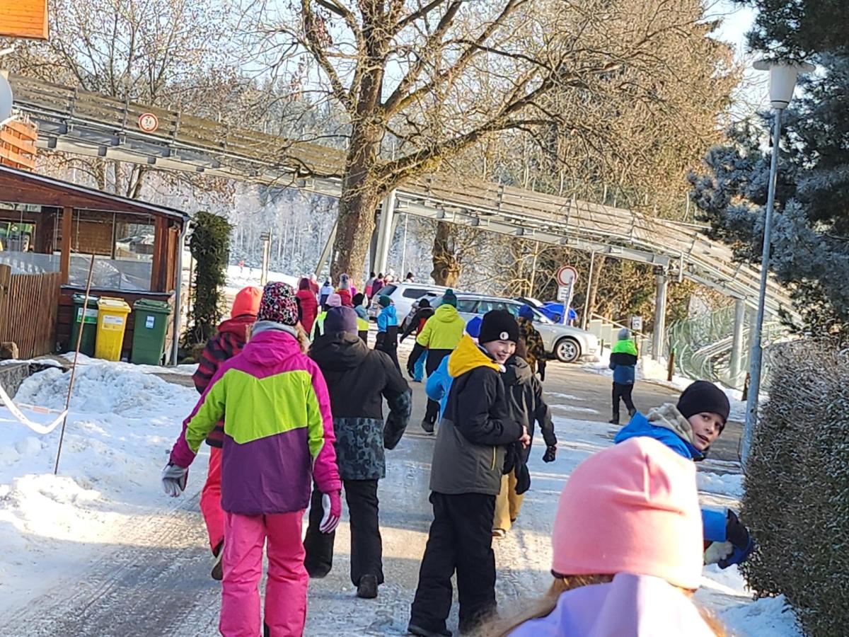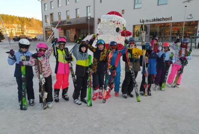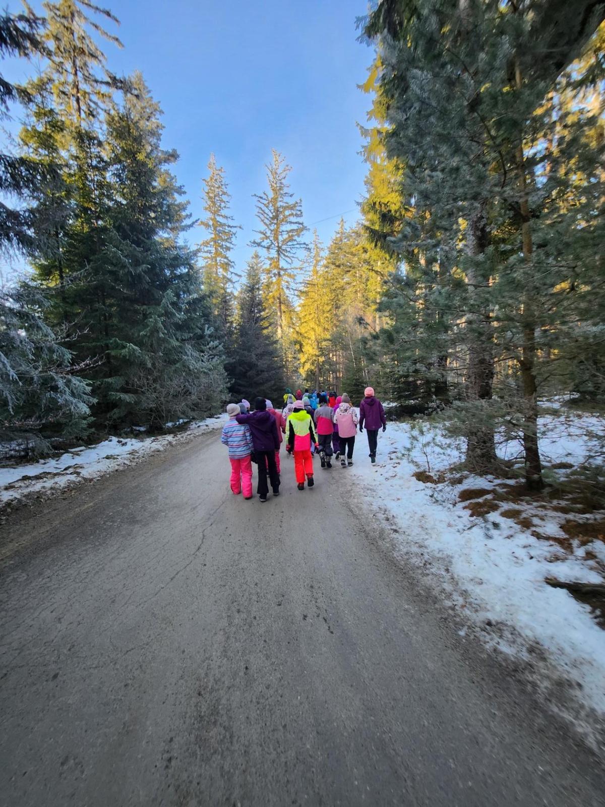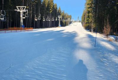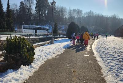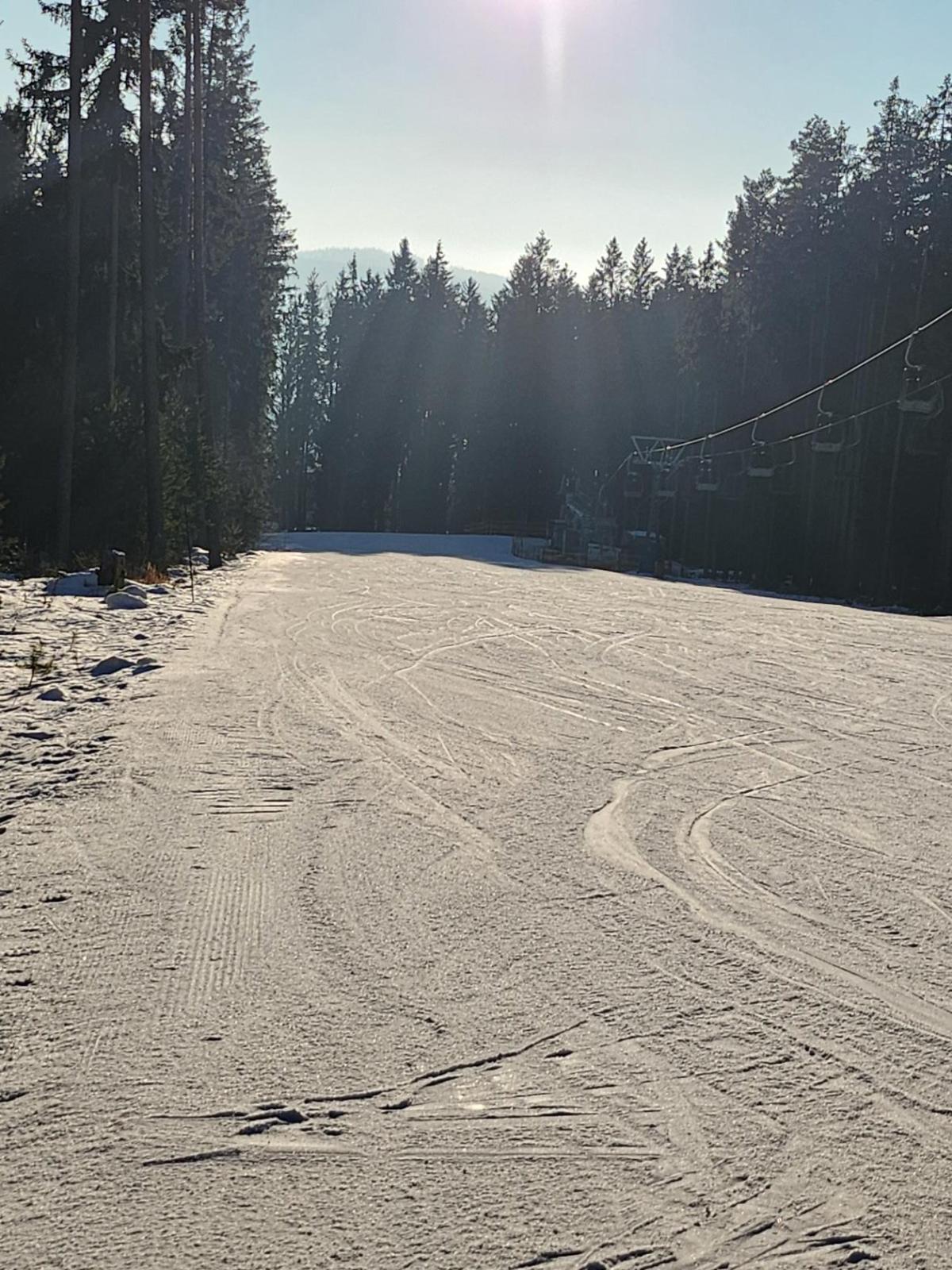 Přivítalo nás mrazivé, ale přesto slunečné ráno. Ani -13°C venku a dokonce ani -5°C v autobuse (před zatopením), nás nedokázalo odradit. A proto jsme vyrazili na lyžovačku. Mráz se nad námi smiloval a tak jsme se opravdu zapotili.
