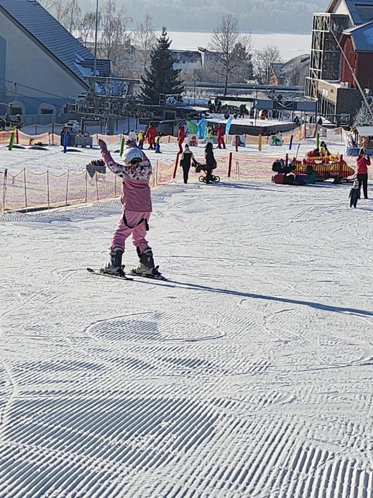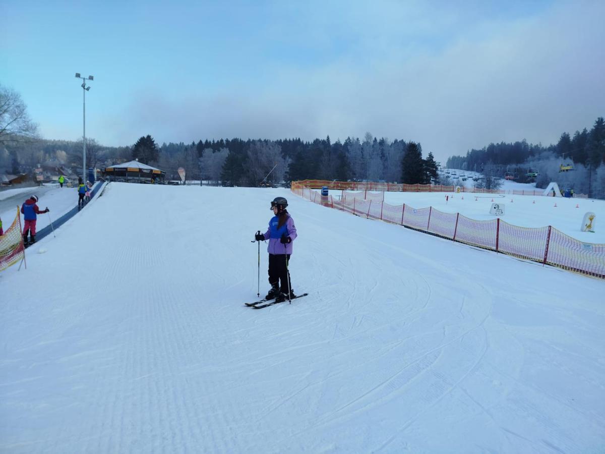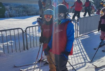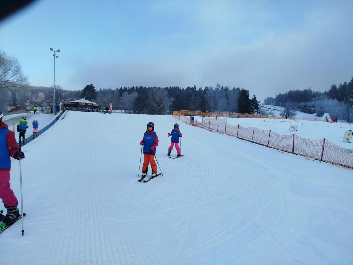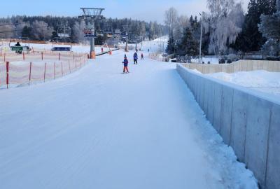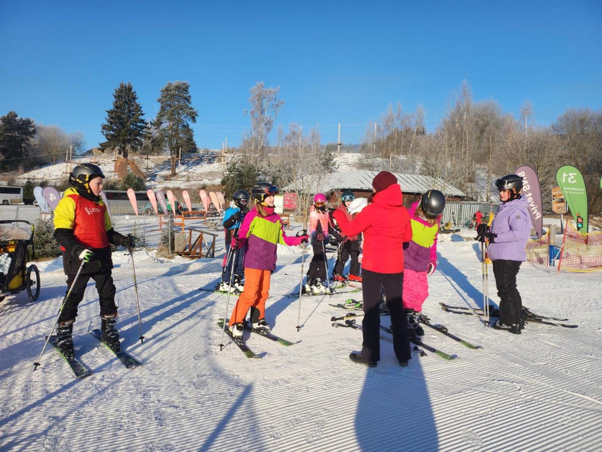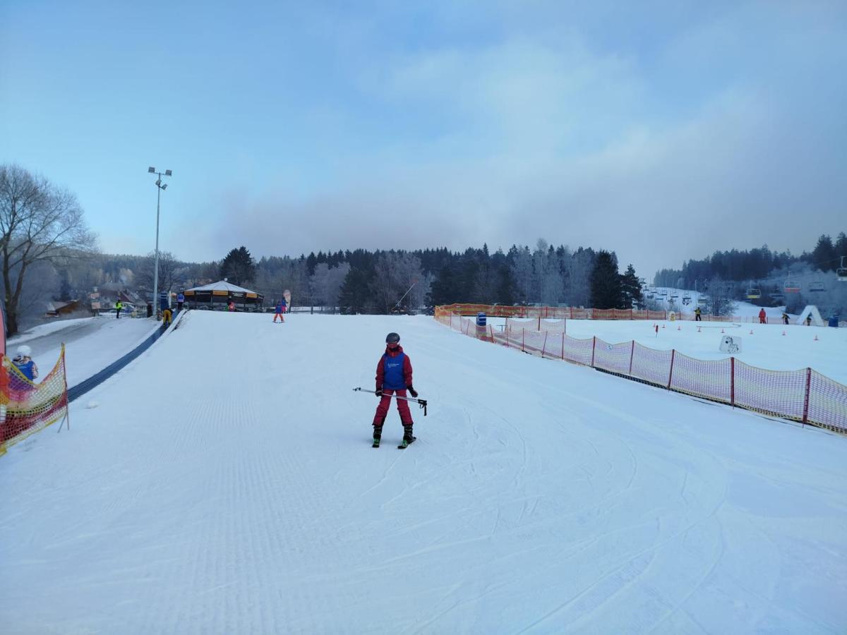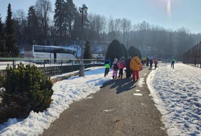 Přivítalo nás mrazivé, ale přesto slunečné ráno. Ani -13°C venku a dokonce ani -5°C v autobuse (před zatopením), nás nedokázalo odradit. A proto jsme vyrazili na lyžovačku. Mráz se nad námi smiloval a tak jsme se opravdu zapotili.
