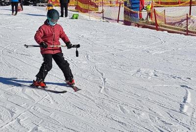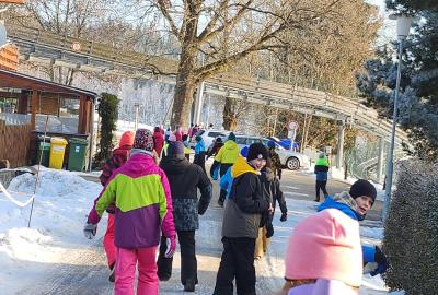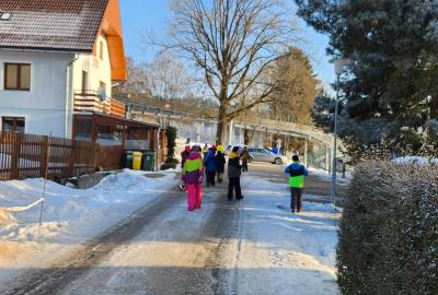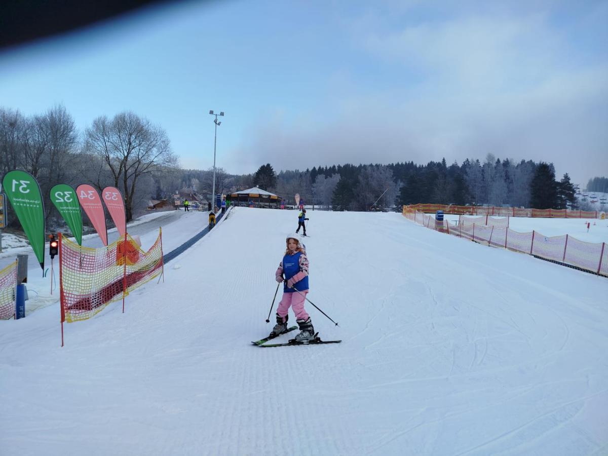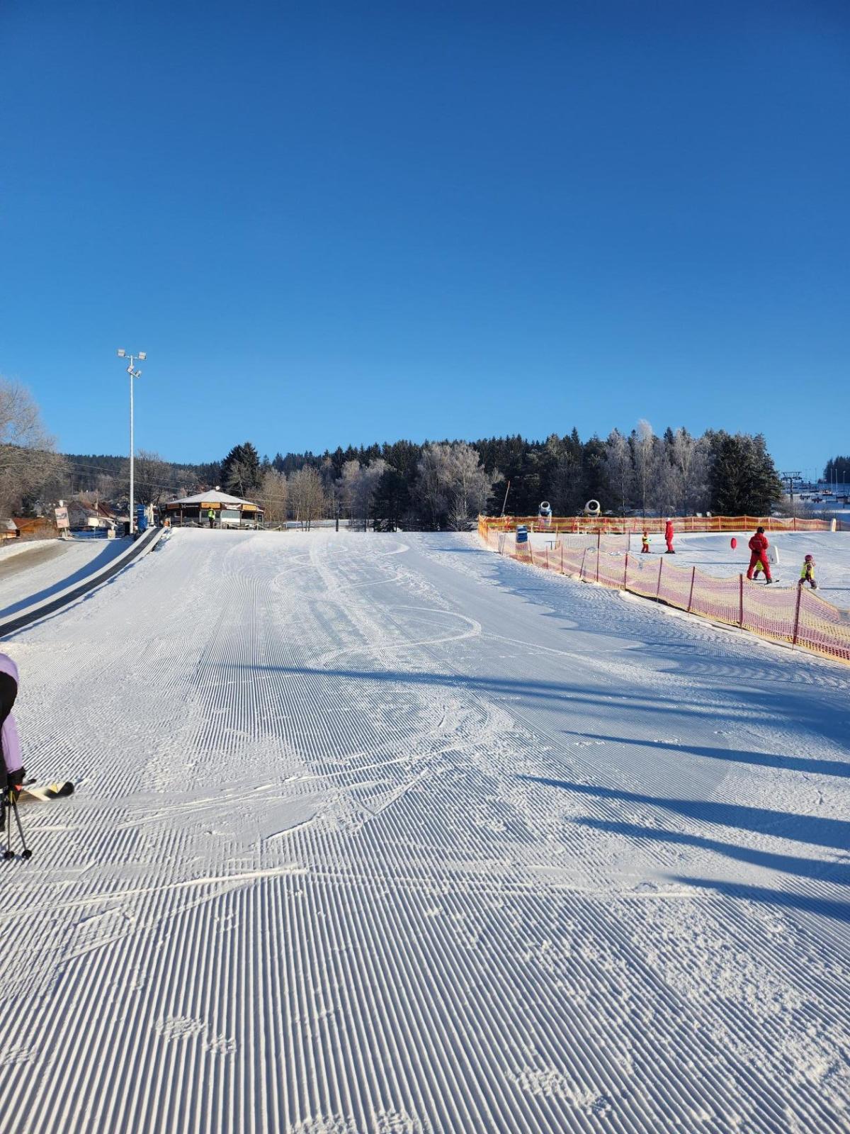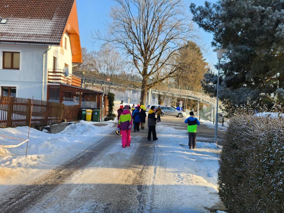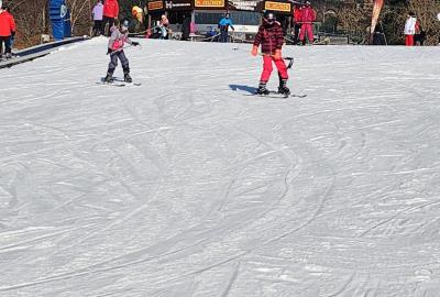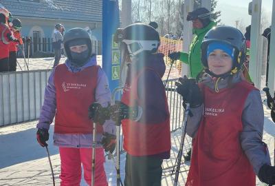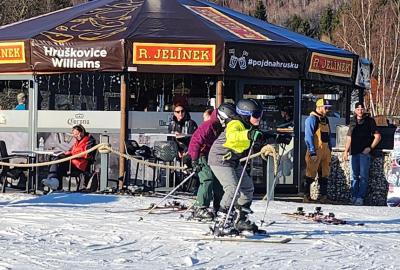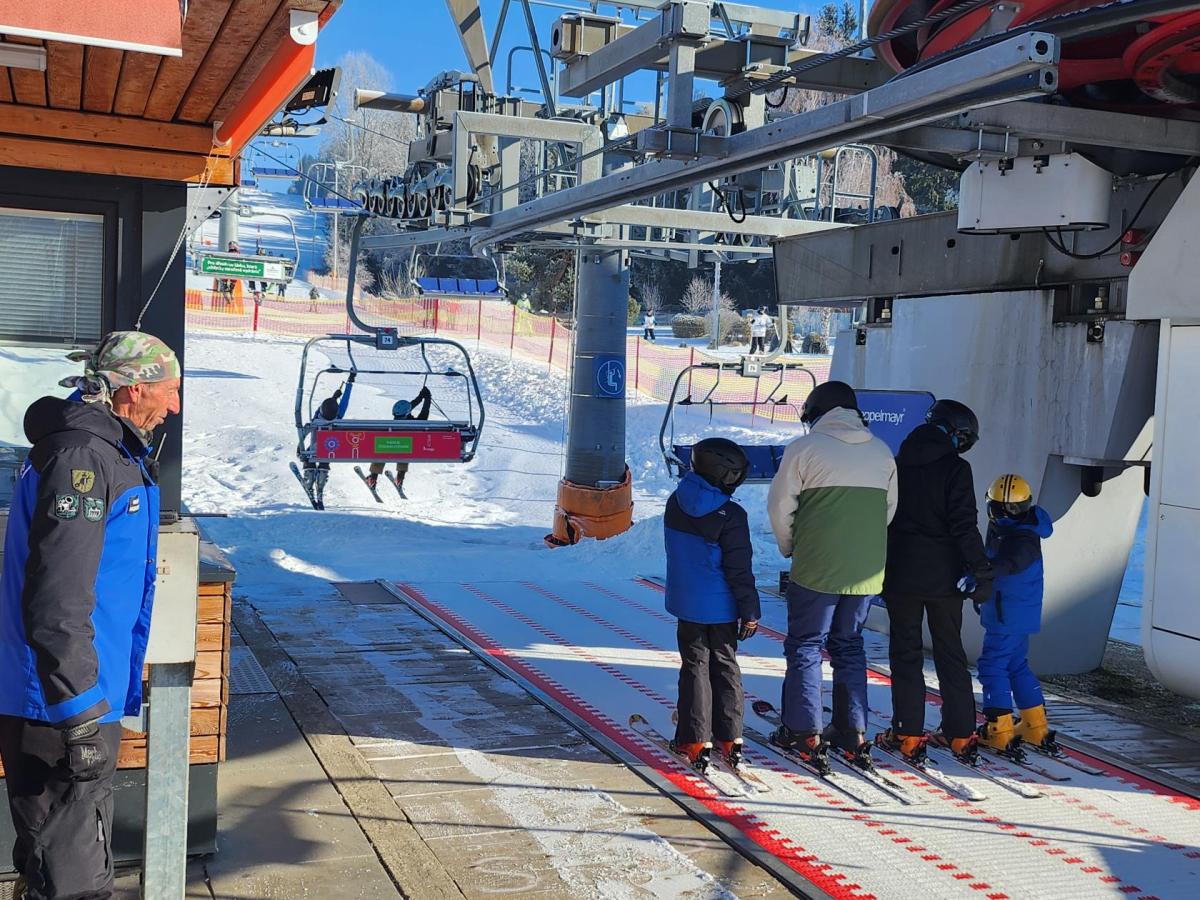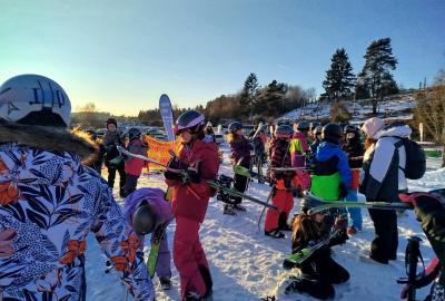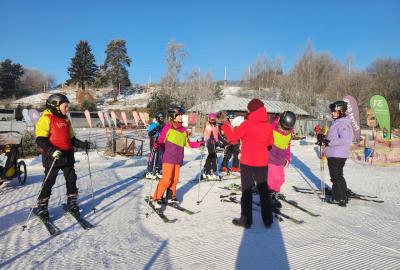 Přivítalo nás mrazivé, ale přesto slunečné ráno. Ani -13°C venku a dokonce ani -5°C v autobuse (před zatopením), nás nedokázalo odradit. A proto jsme vyrazili na lyžovačku. Mráz se nad námi smiloval a tak jsme se opravdu zapotili.