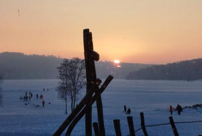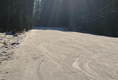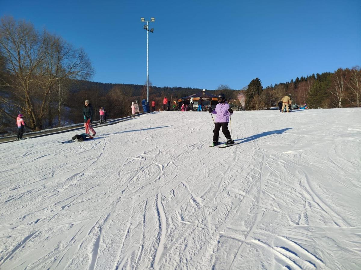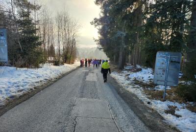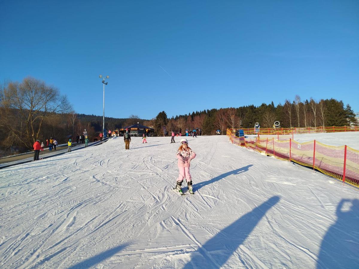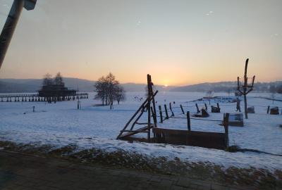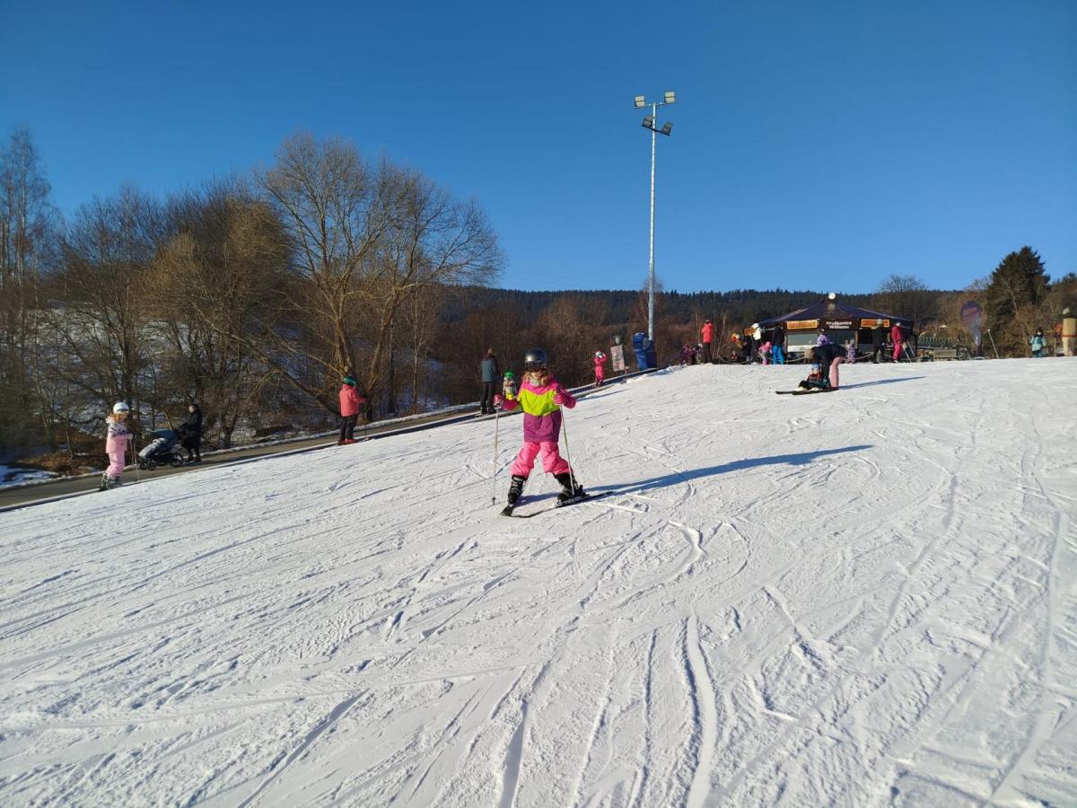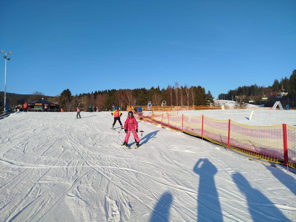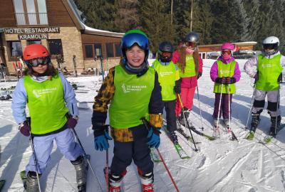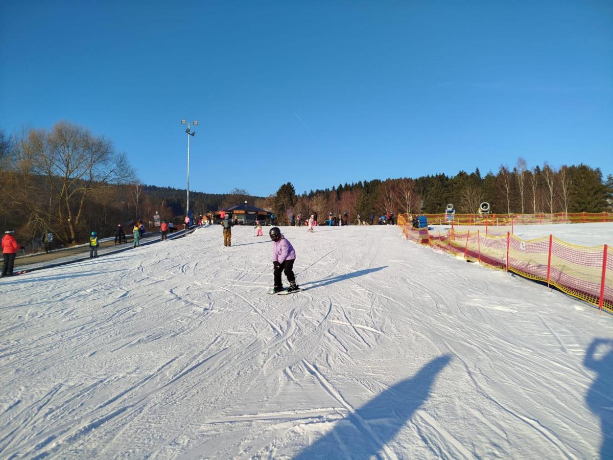 Přivítalo nás mrazivé, ale přesto slunečné ráno. Ani -13°C venku a dokonce ani -5°C v autobuse (před zatopením), nás nedokázalo odradit. A proto jsme vyrazili na lyžovačku. Mráz se nad námi smiloval a tak jsme se opravdu zapotili.