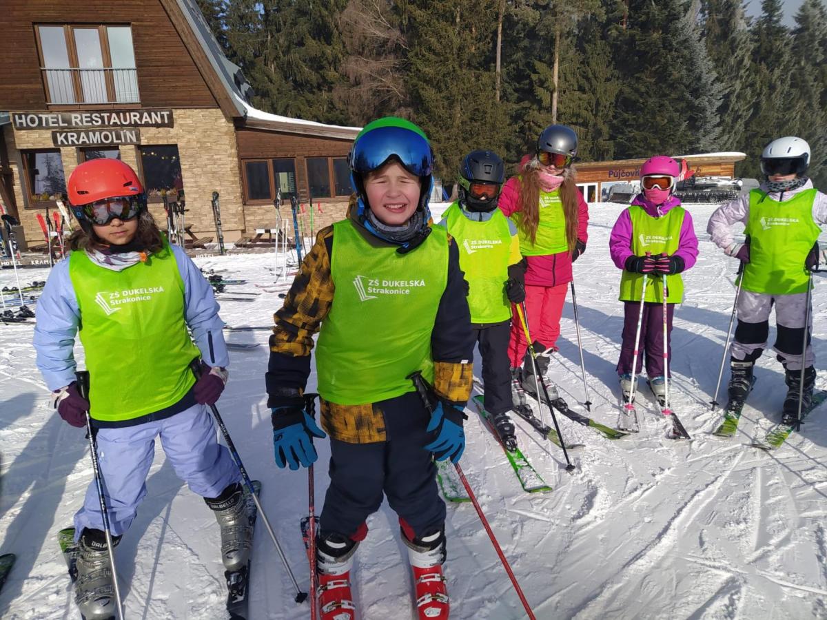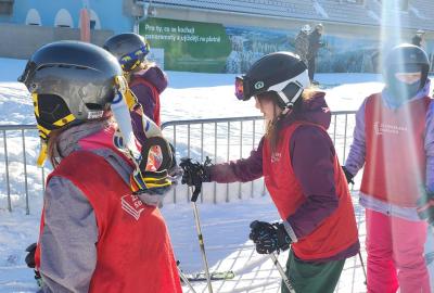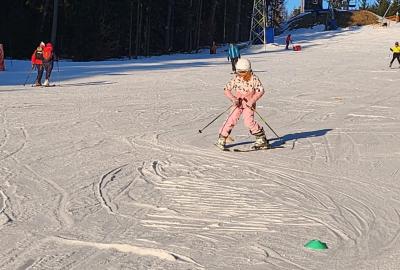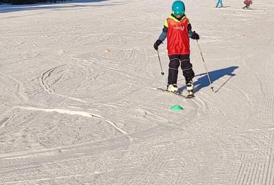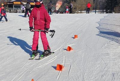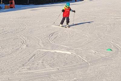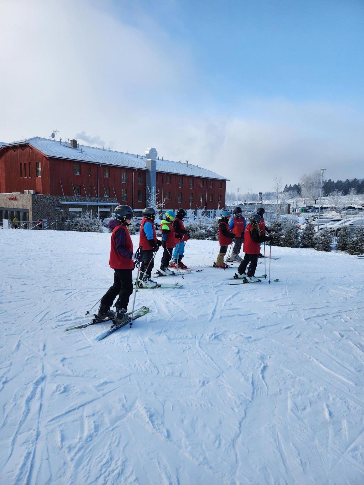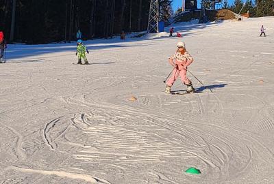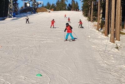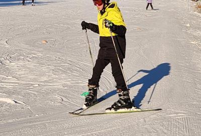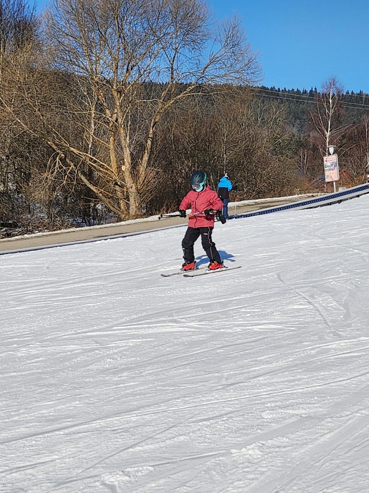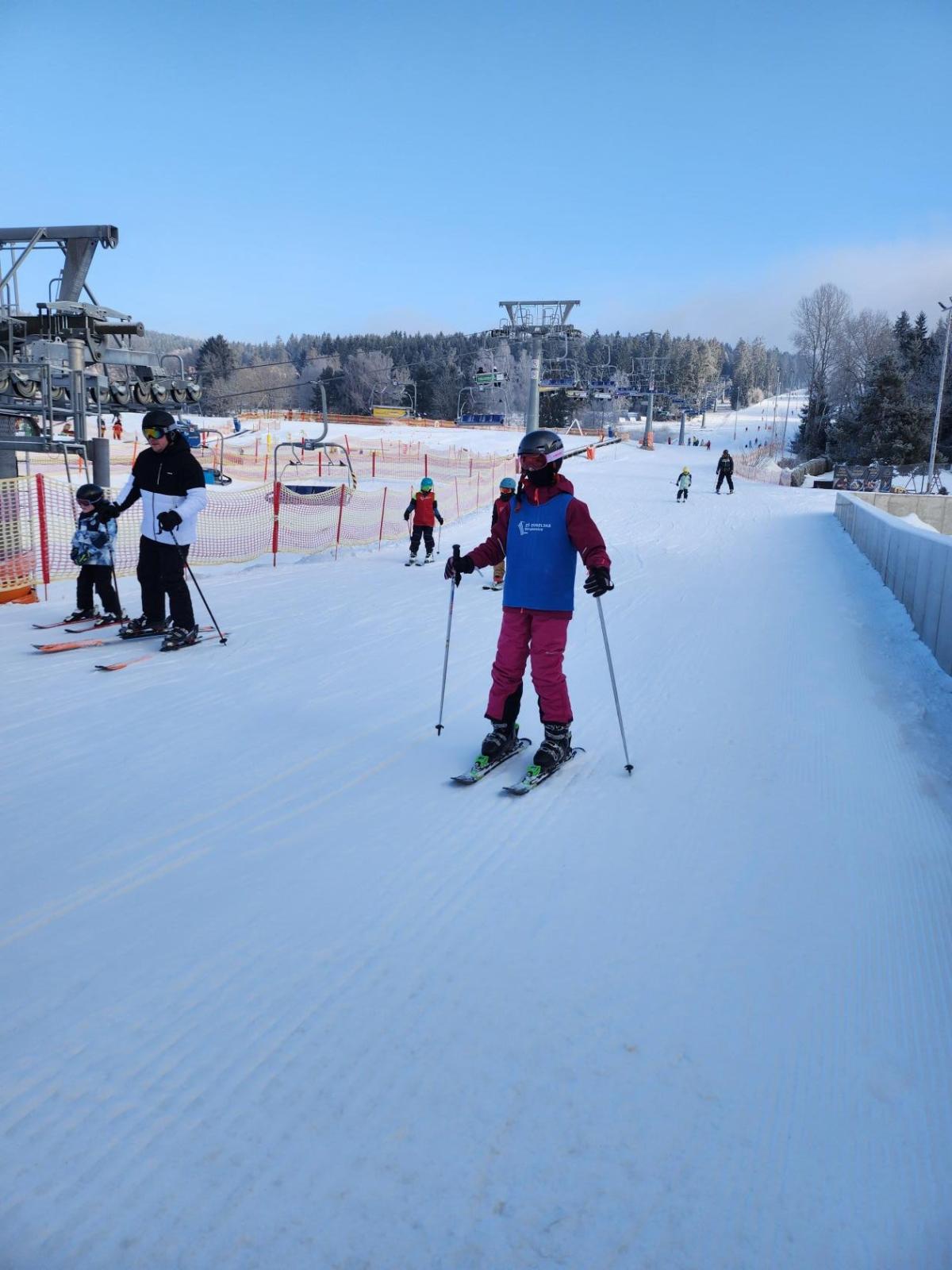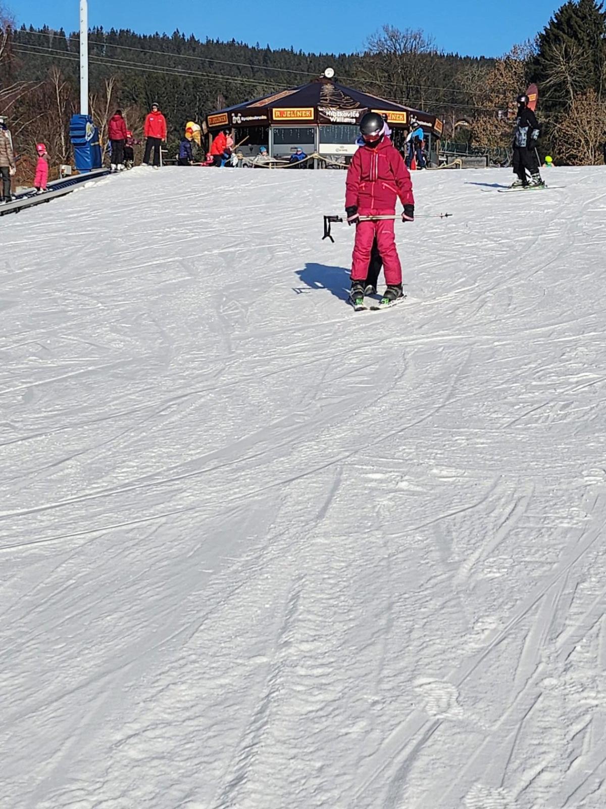 Po ubytování a vydatném obědě jsme se vydali na sjezdovku. Zkušení lyžaři se po seznámení s terénem vydali rovnou na lanovku. Méně zkušení se přesunuli na cvičnou sjezdovku, kde trénovali základy lyžování.