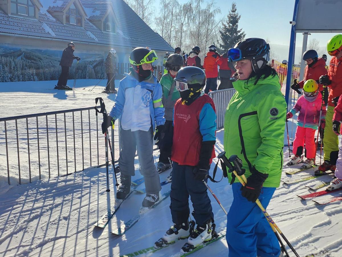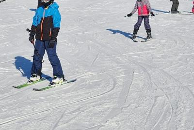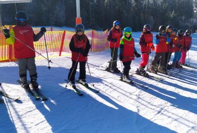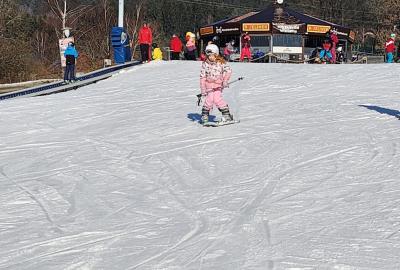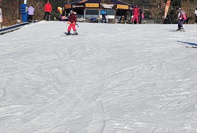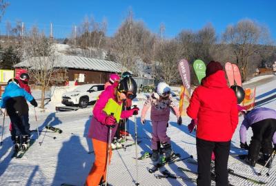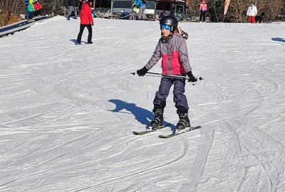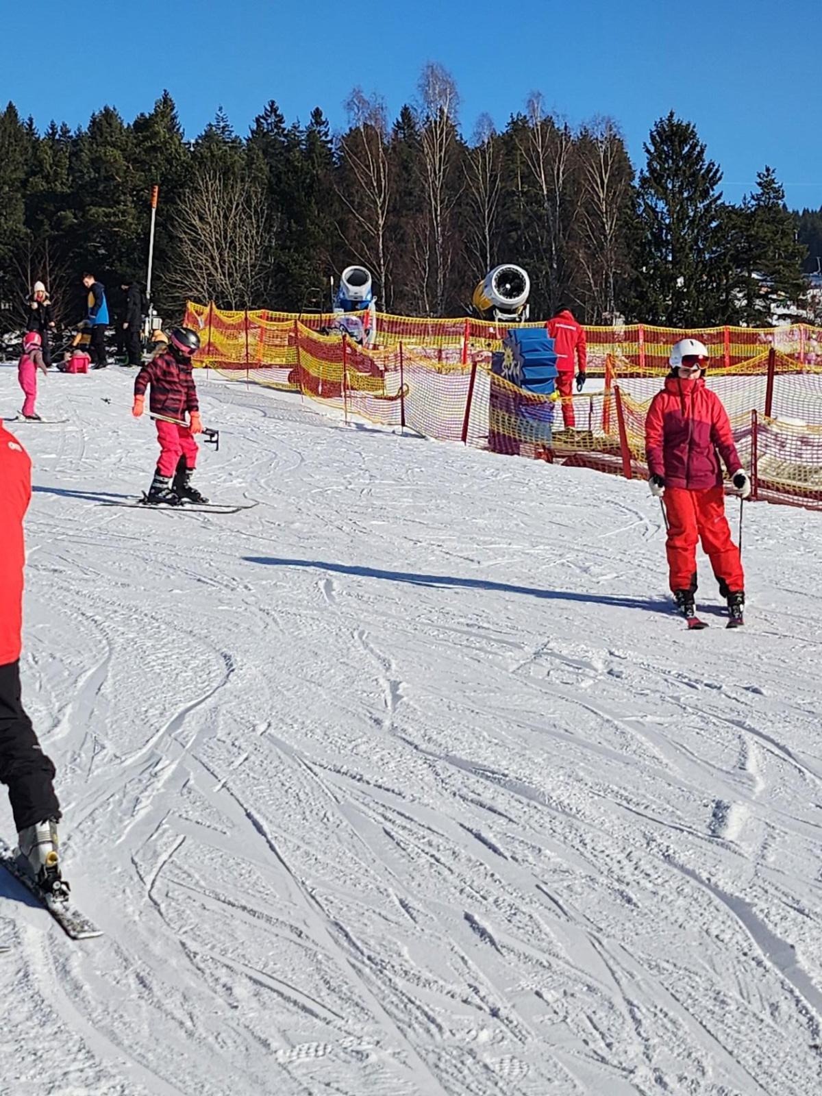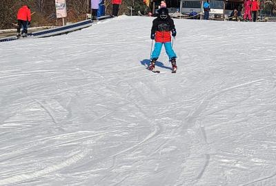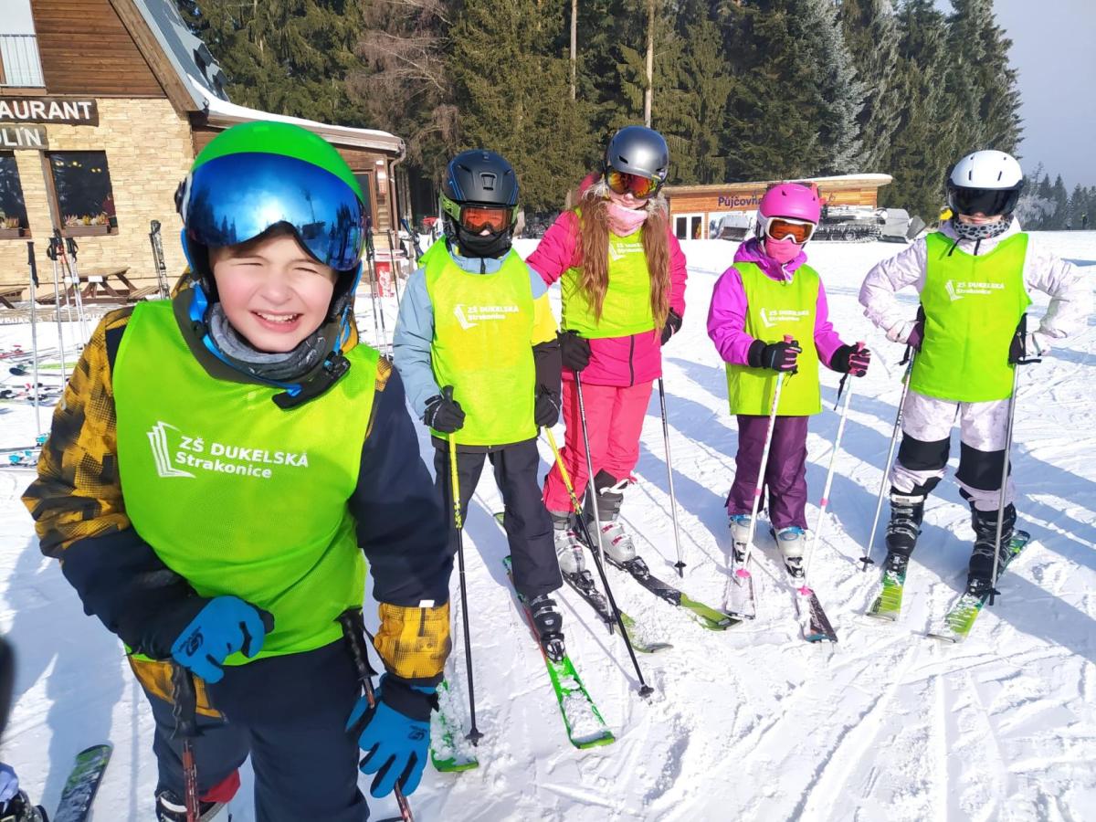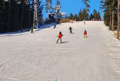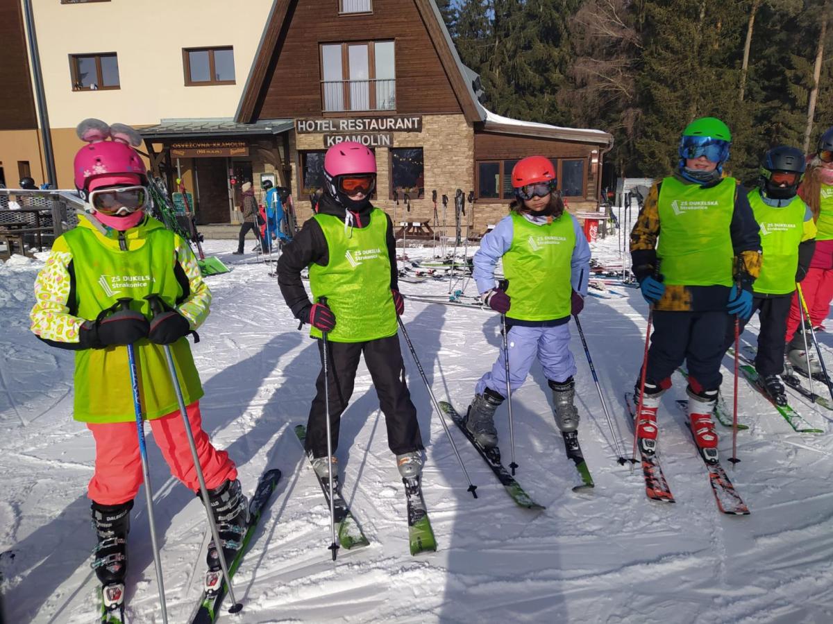 Po ubytování a vydatném obědě jsme se vydali na sjezdovku. Zkušení lyžaři se po seznámení s terénem vydali rovnou na lanovku. Méně zkušení se přesunuli na cvičnou sjezdovku, kde trénovali základy lyžování.