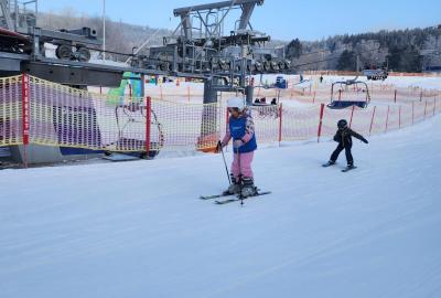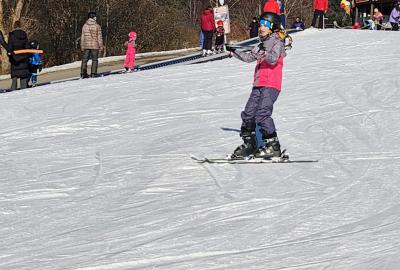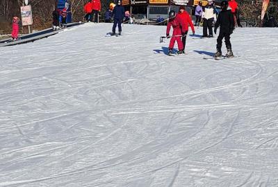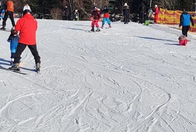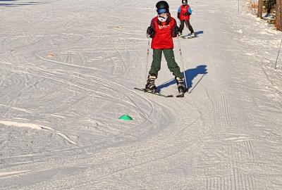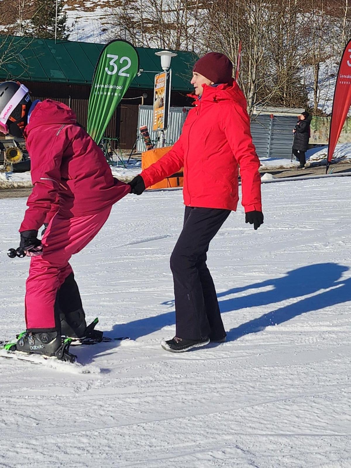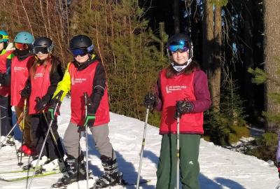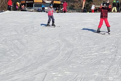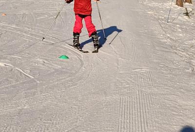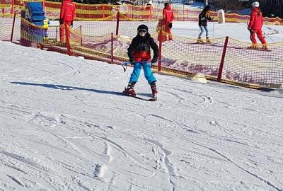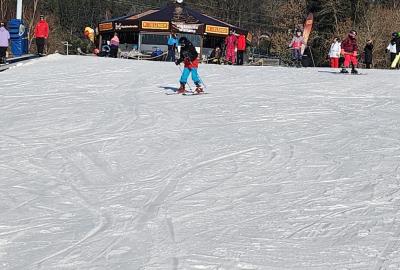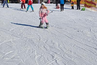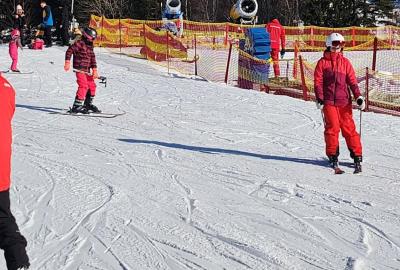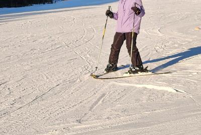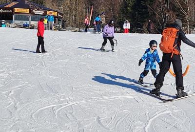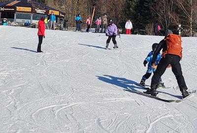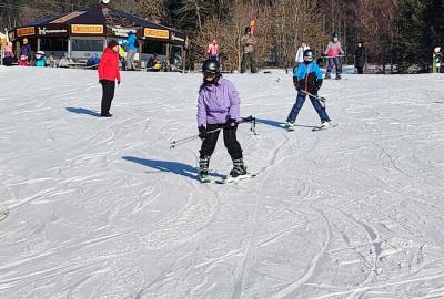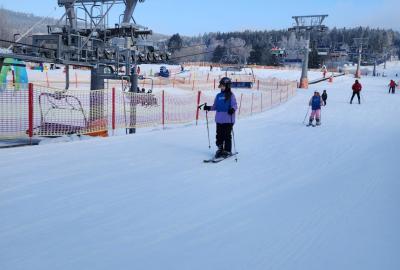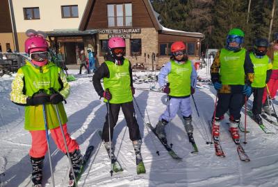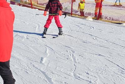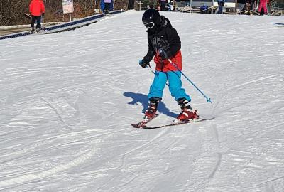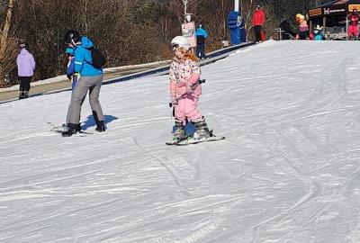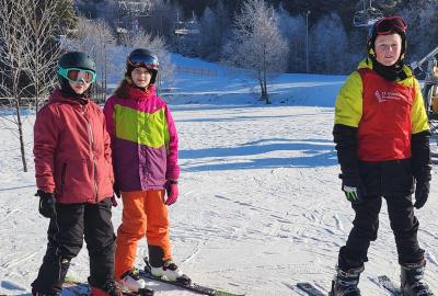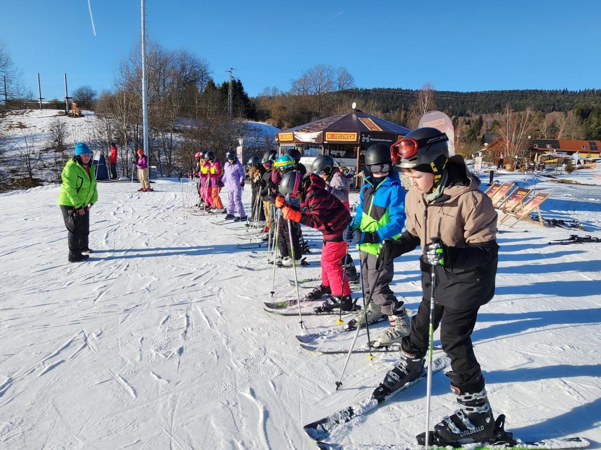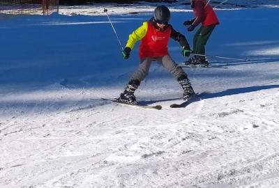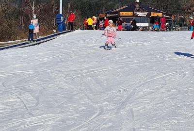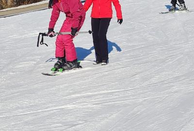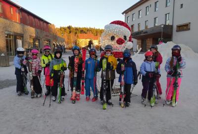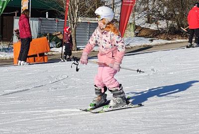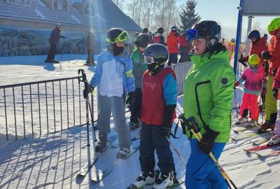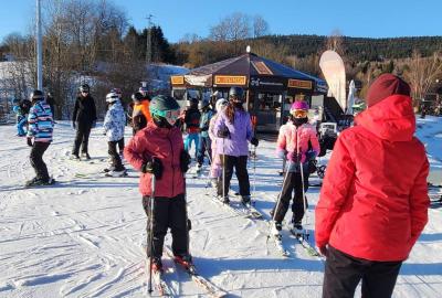 Po ubytování a vydatném obědě jsme se vydali na sjezdovku. Zkušení lyžaři se po seznámení s terénem vydali rovnou na lanovku. Méně zkušení se přesunuli na cvičnou sjezdovku, kde trénovali základy lyžování.