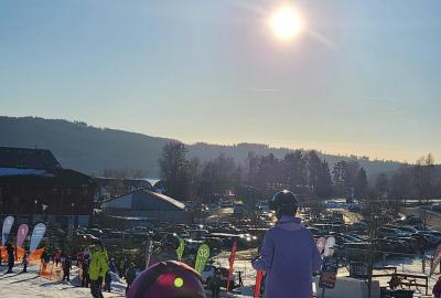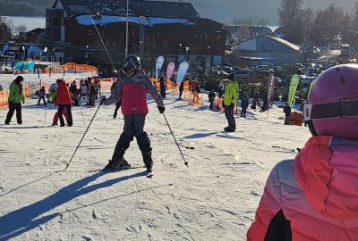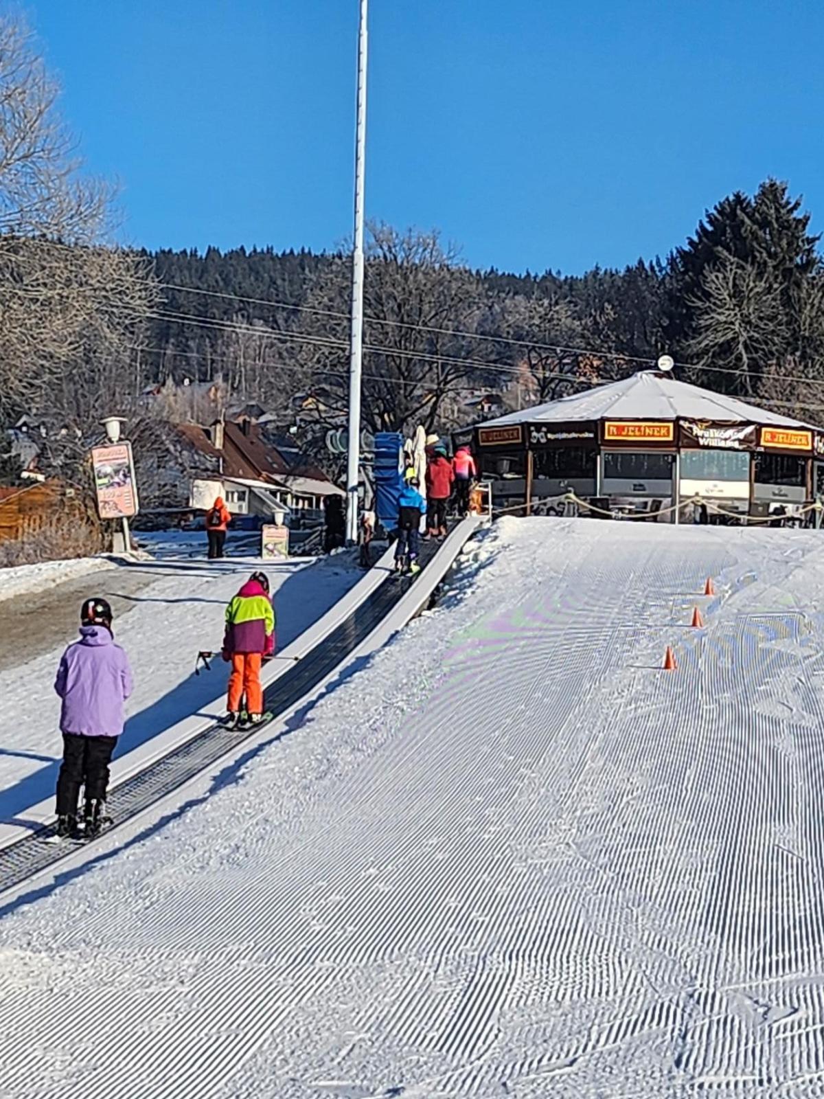 Na Lipně nás uvítalo slunečné počasí, které slibovalo, že si první lyžování opravdu užijeme.