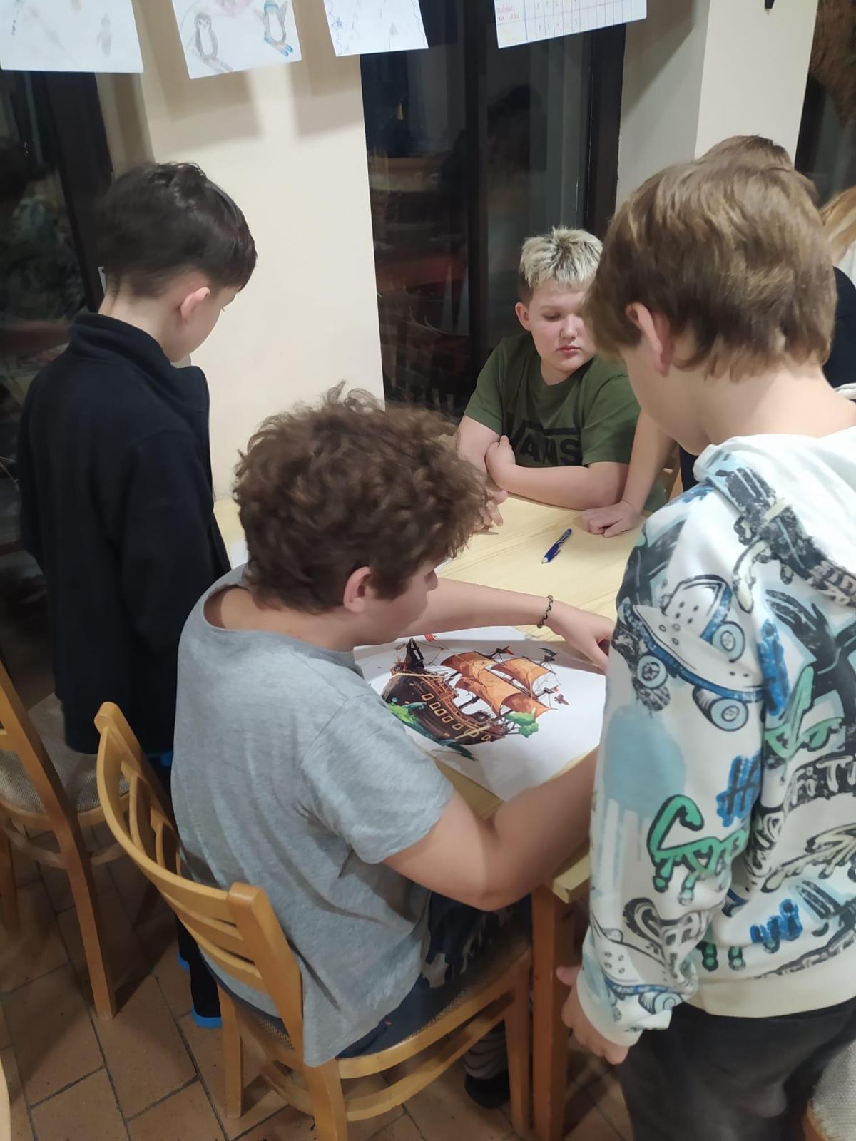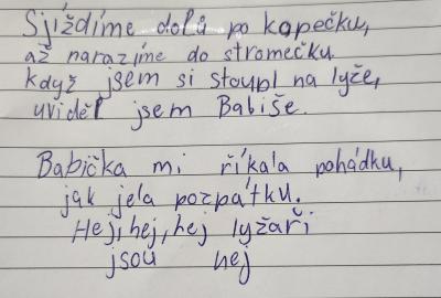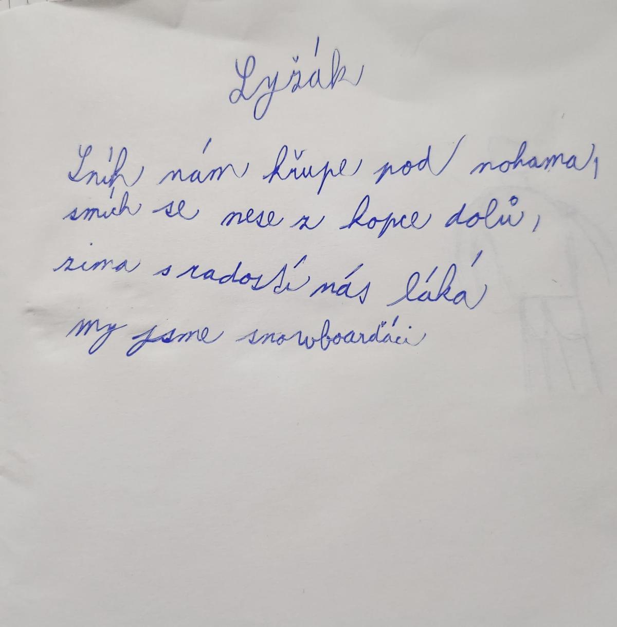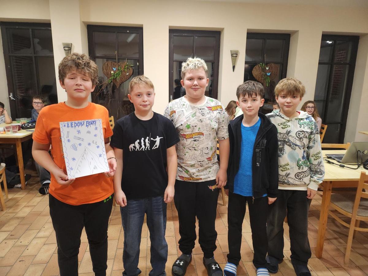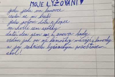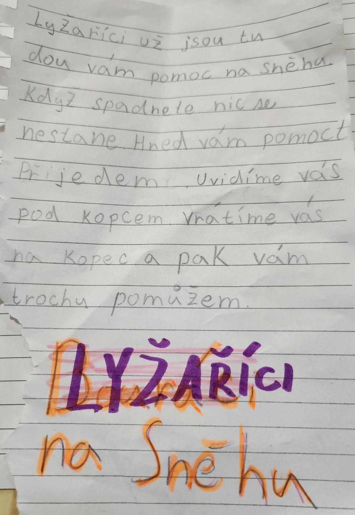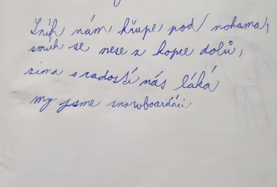 Po večeři jsme si zahráli ještě pár her, abychom mohli uzavřít celotýdenní bodování. Jednou z aktivit bylo vymyslet básničku na téma lyžování a svůj týmový pokřik. Naše výtvory naleznete v přiložených fotografiích.