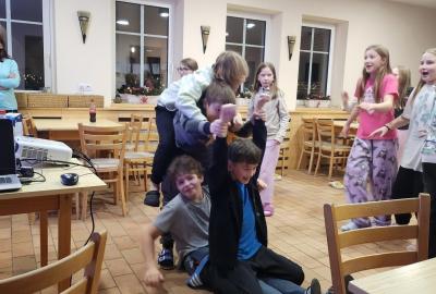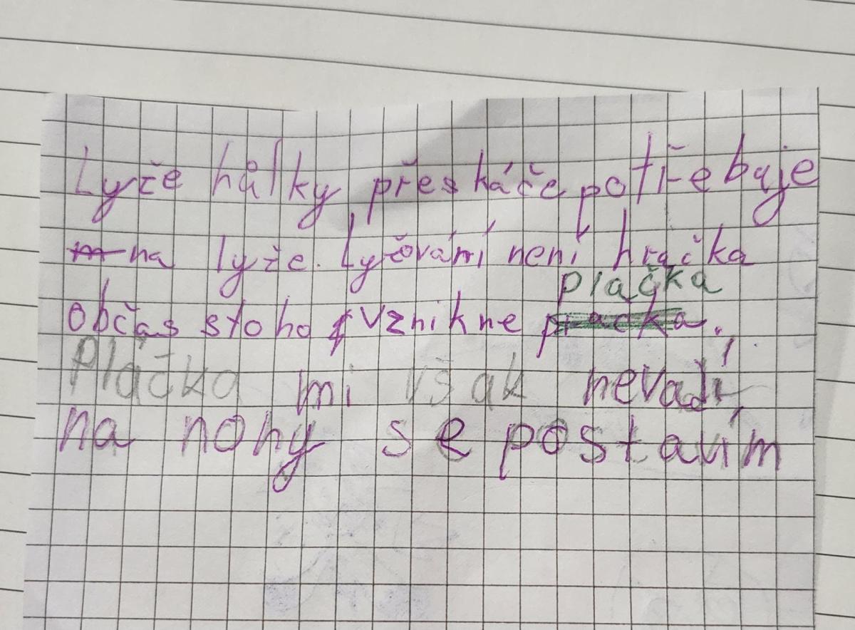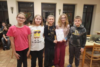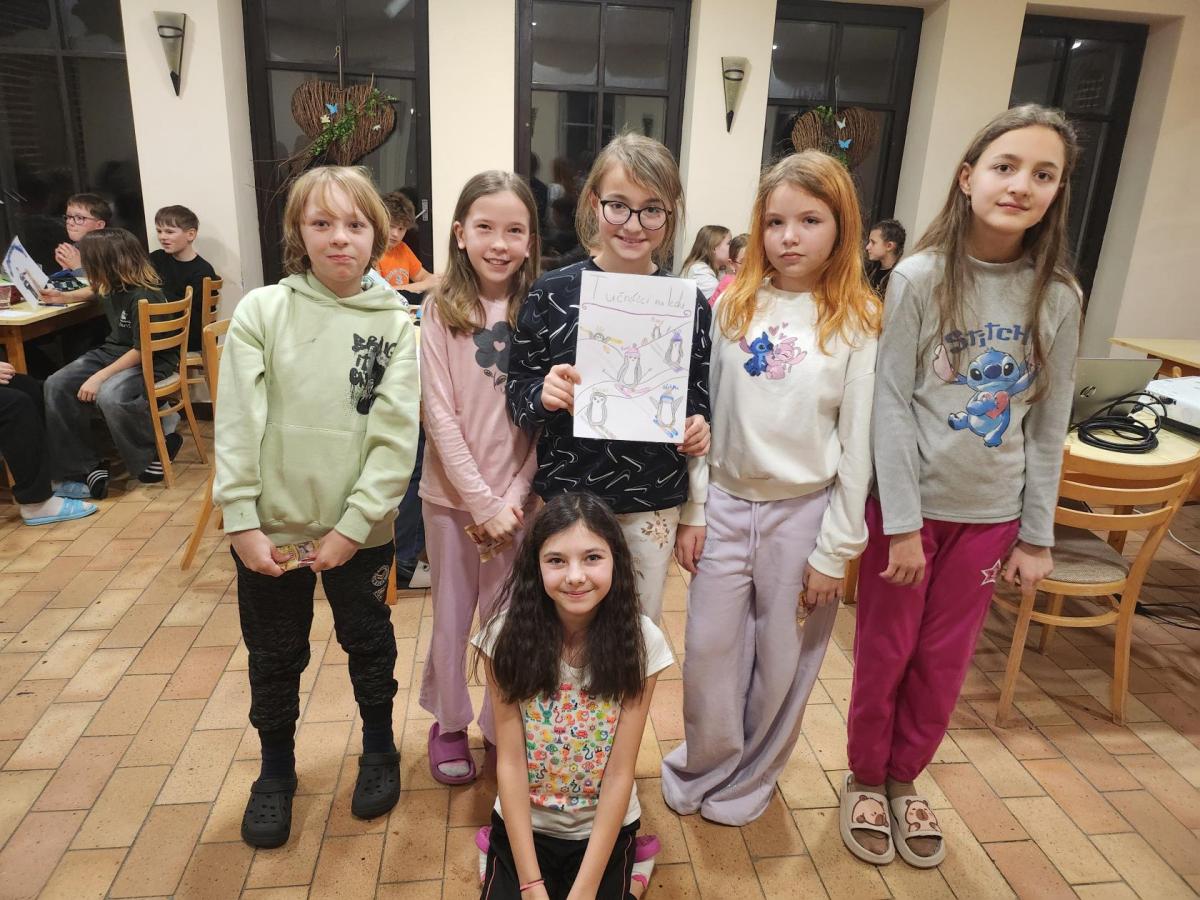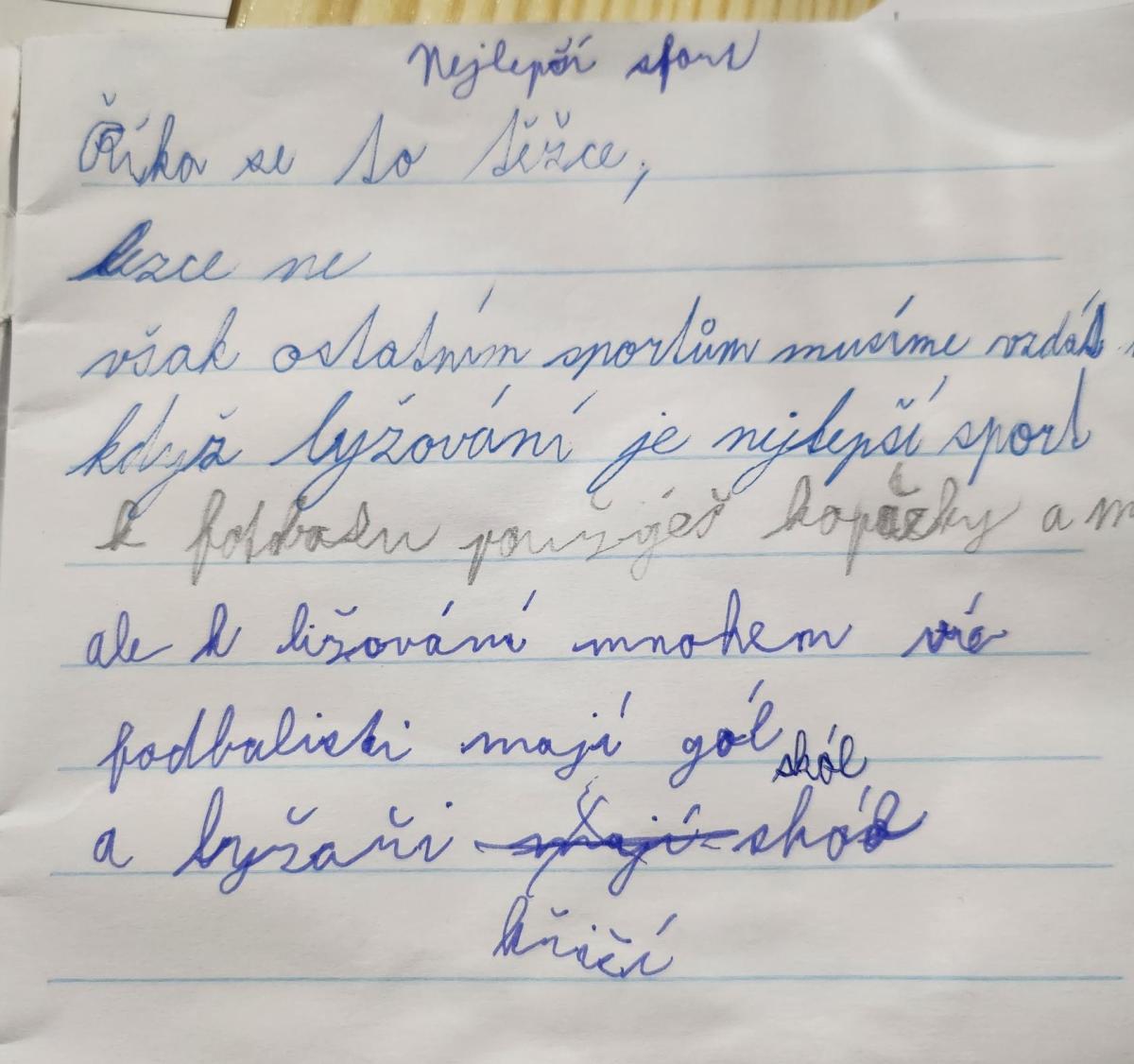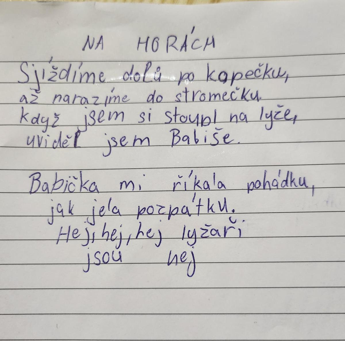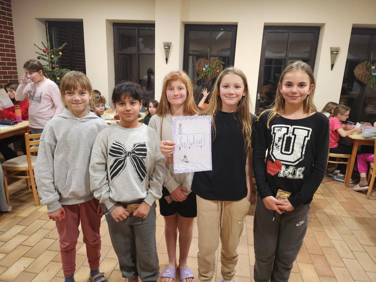 Po večeři jsme si zahráli ještě pár her, abychom mohli uzavřít celotýdenní bodování. Jednou z aktivit bylo vymyslet básničku na téma lyžování a svůj týmový pokřik. Naše výtvory naleznete v přiložených fotografiích.