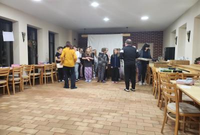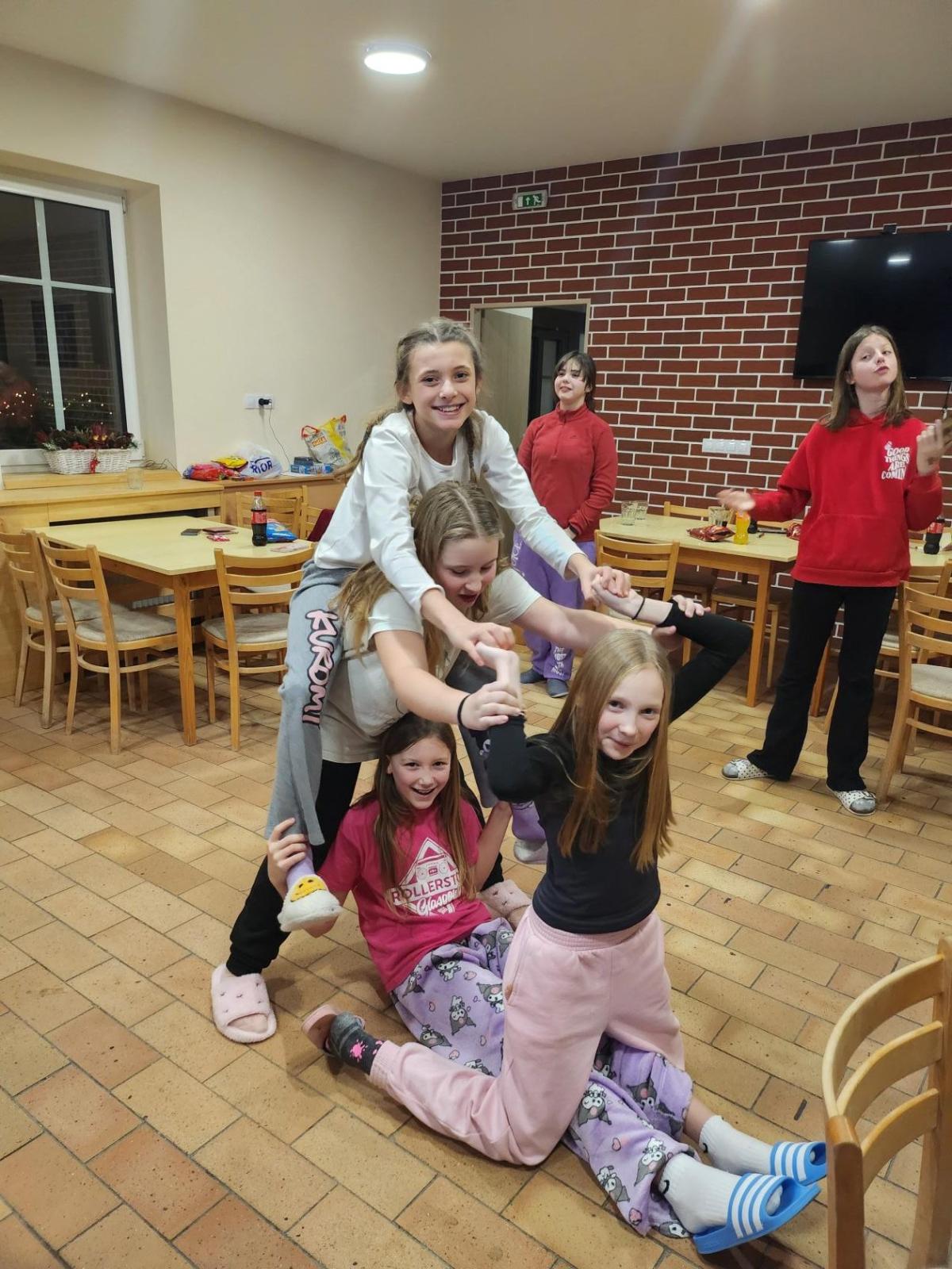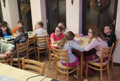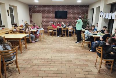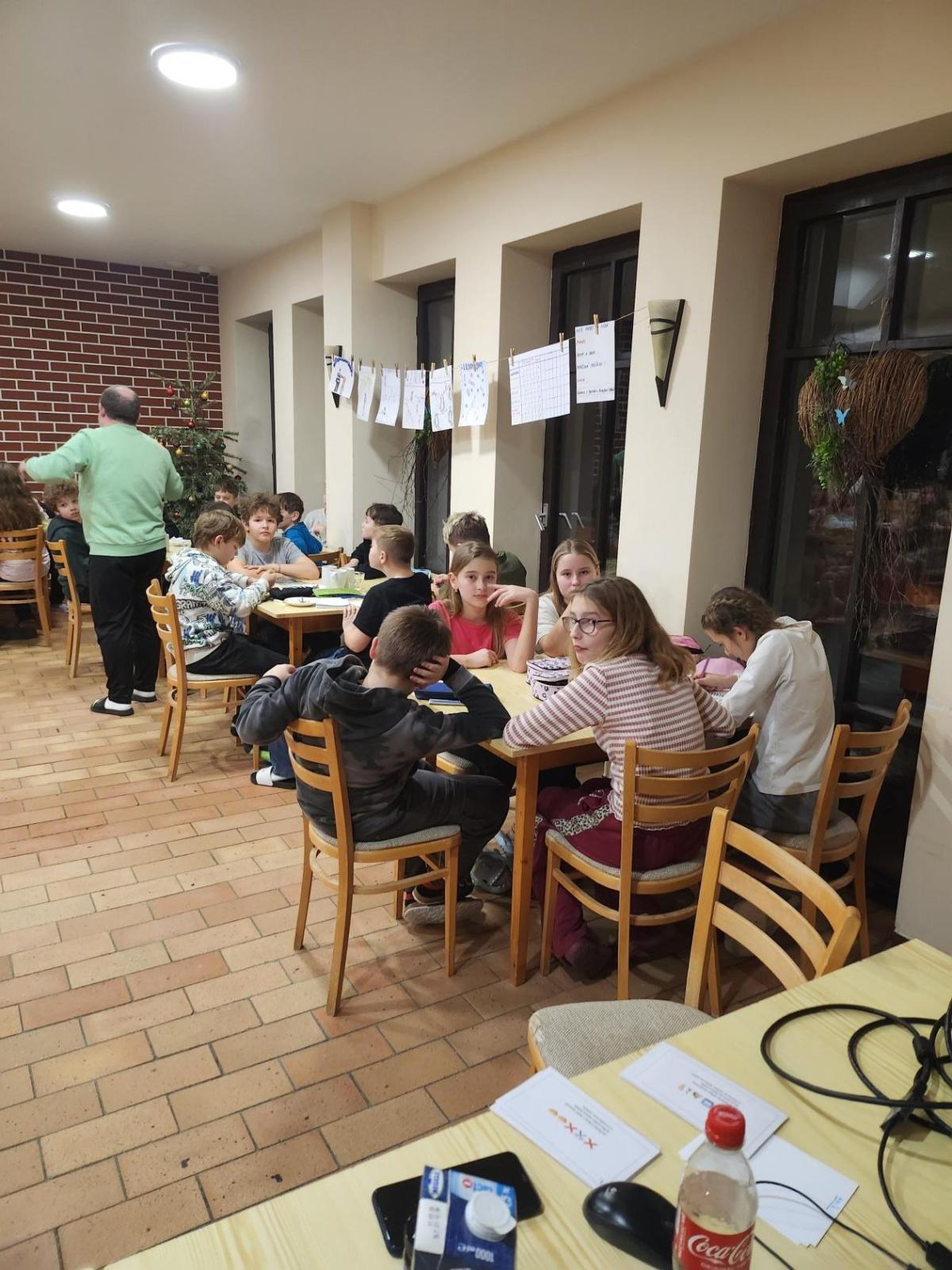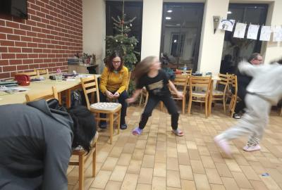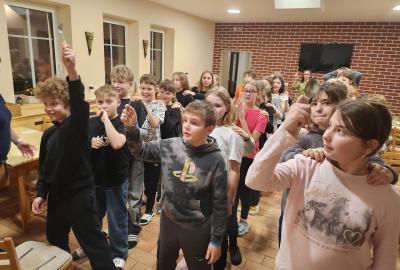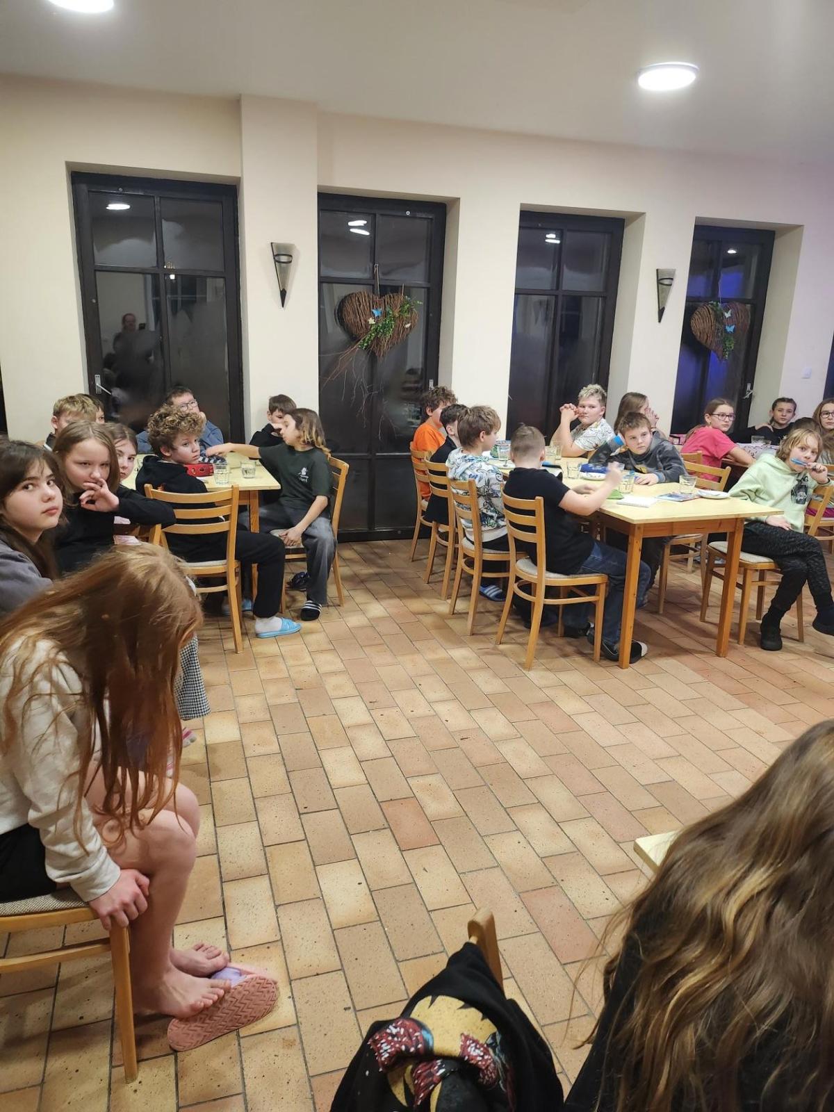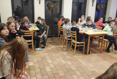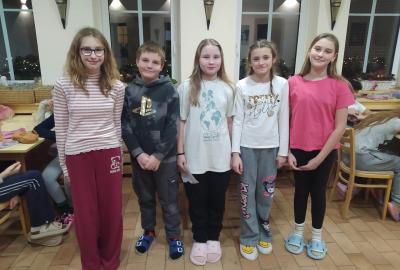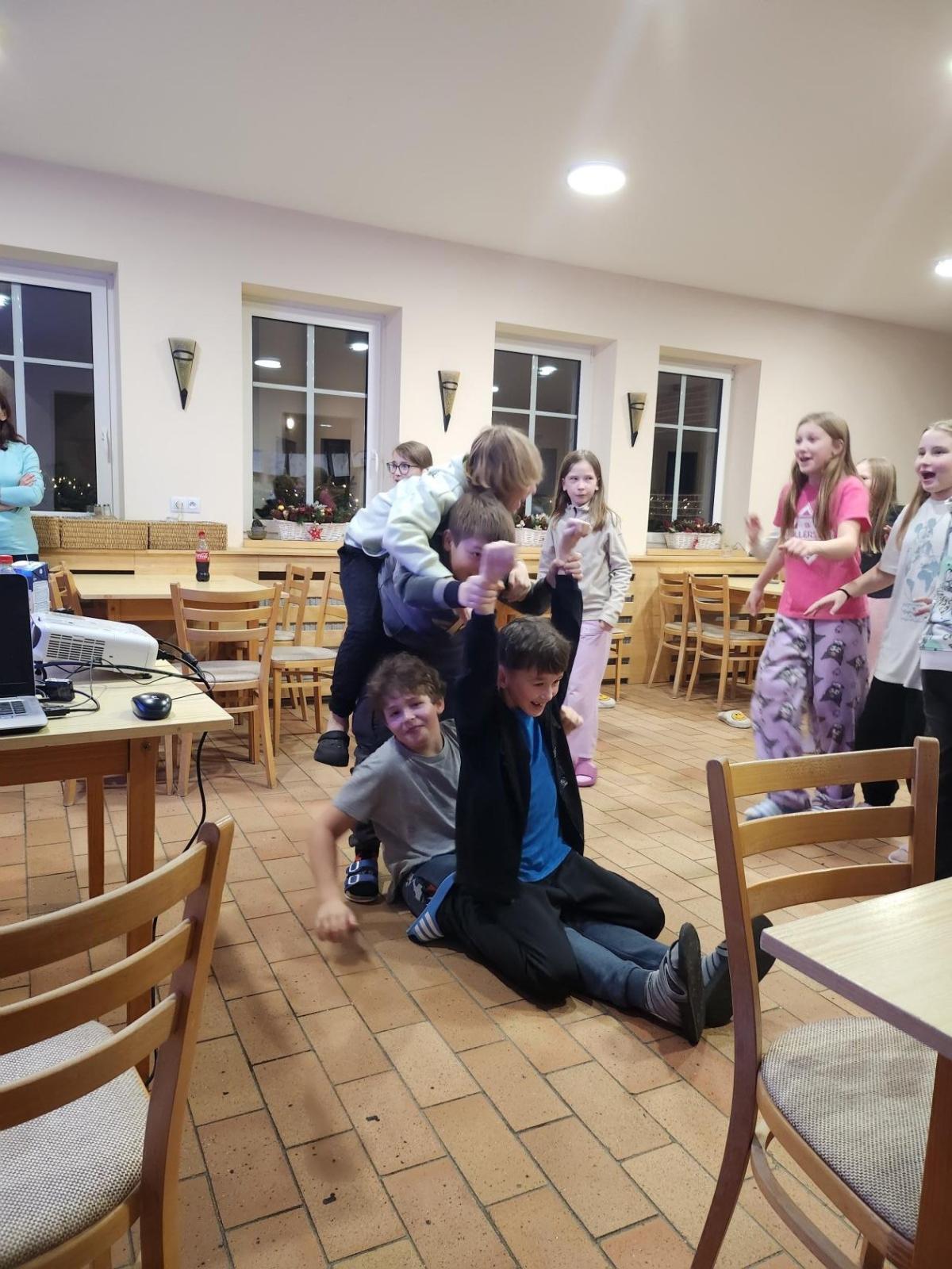 Po večeři jsme si zahráli ještě pár her, abychom mohli uzavřít celotýdenní bodování. Jednou z aktivit bylo vymyslet básničku na téma lyžování a svůj týmový pokřik. Naše výtvory naleznete v přiložených fotografiích.