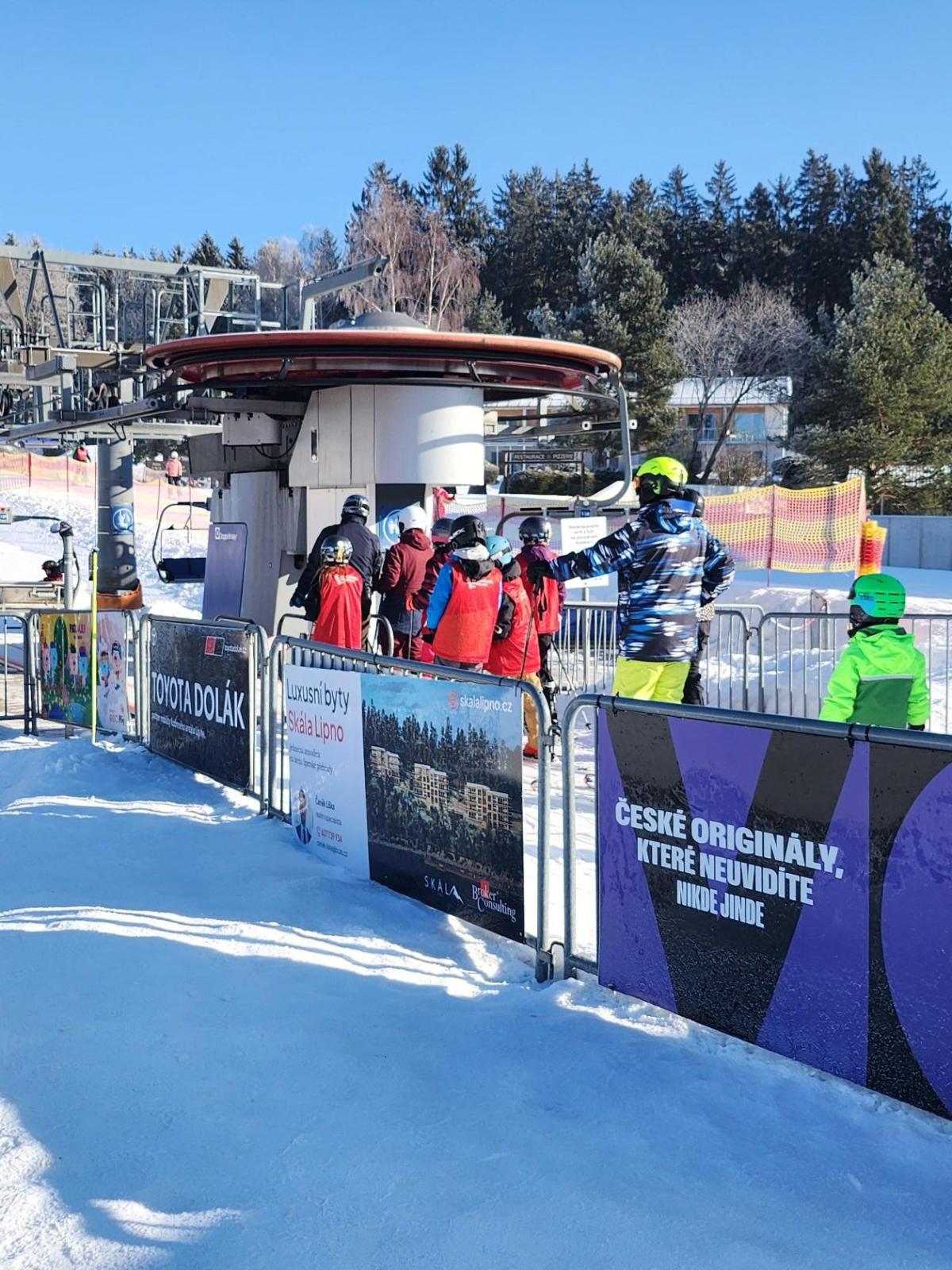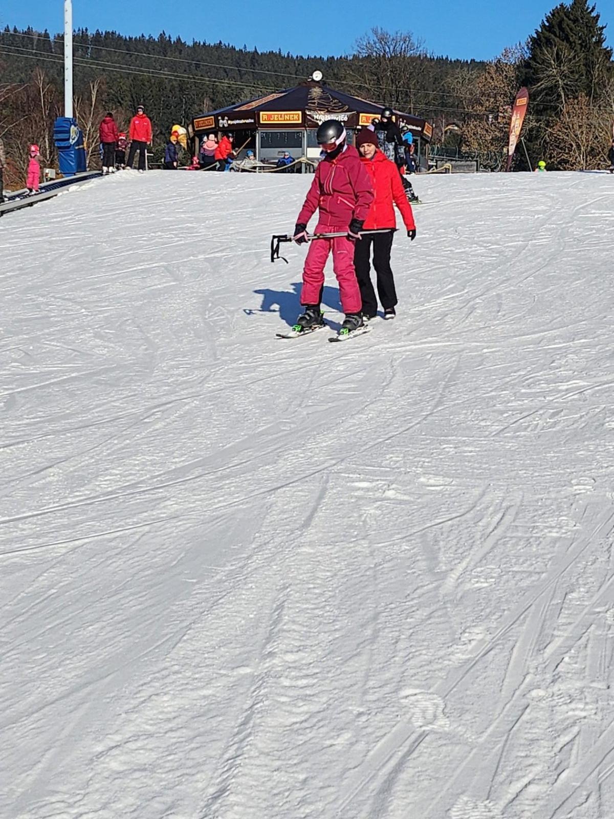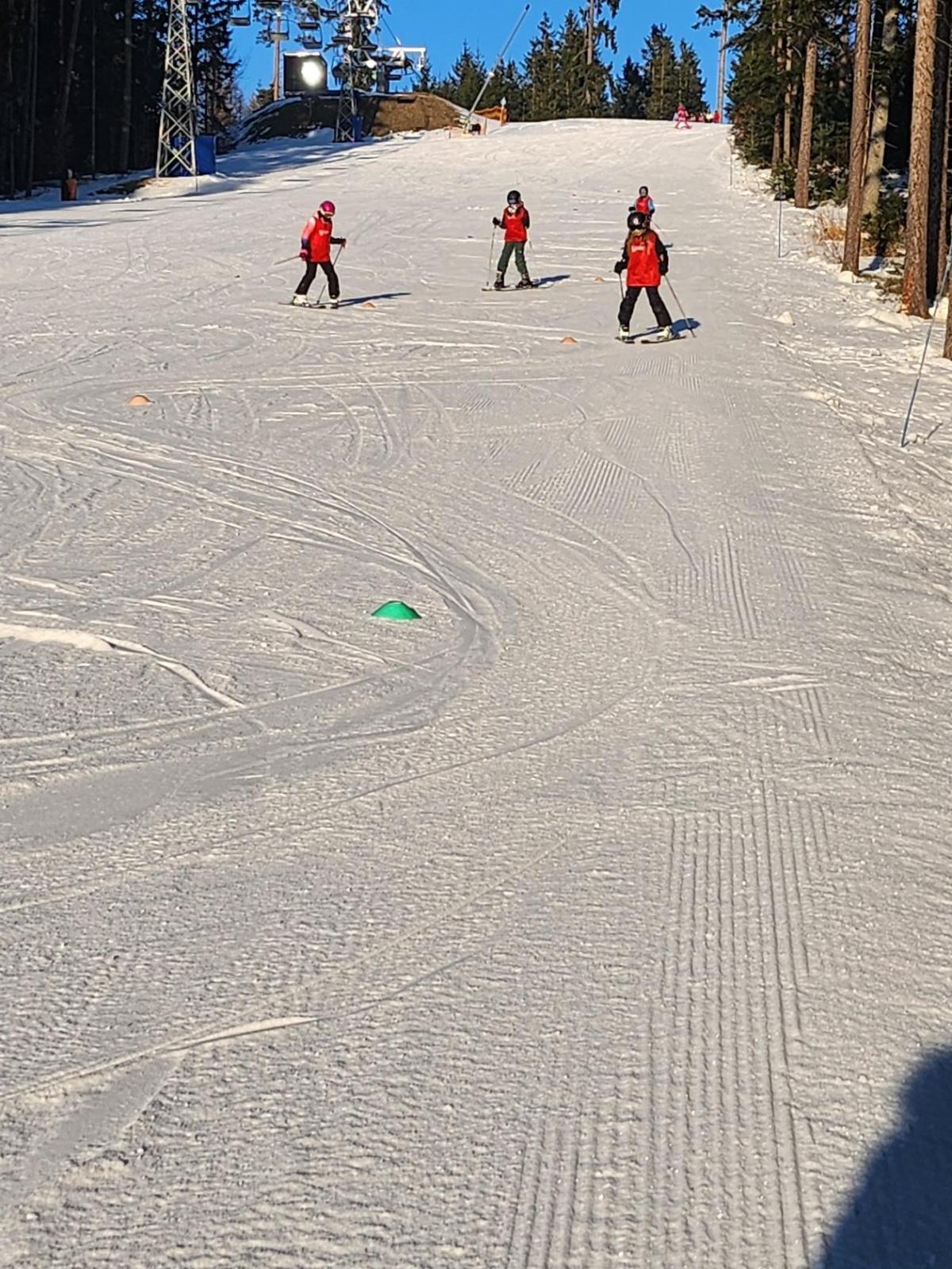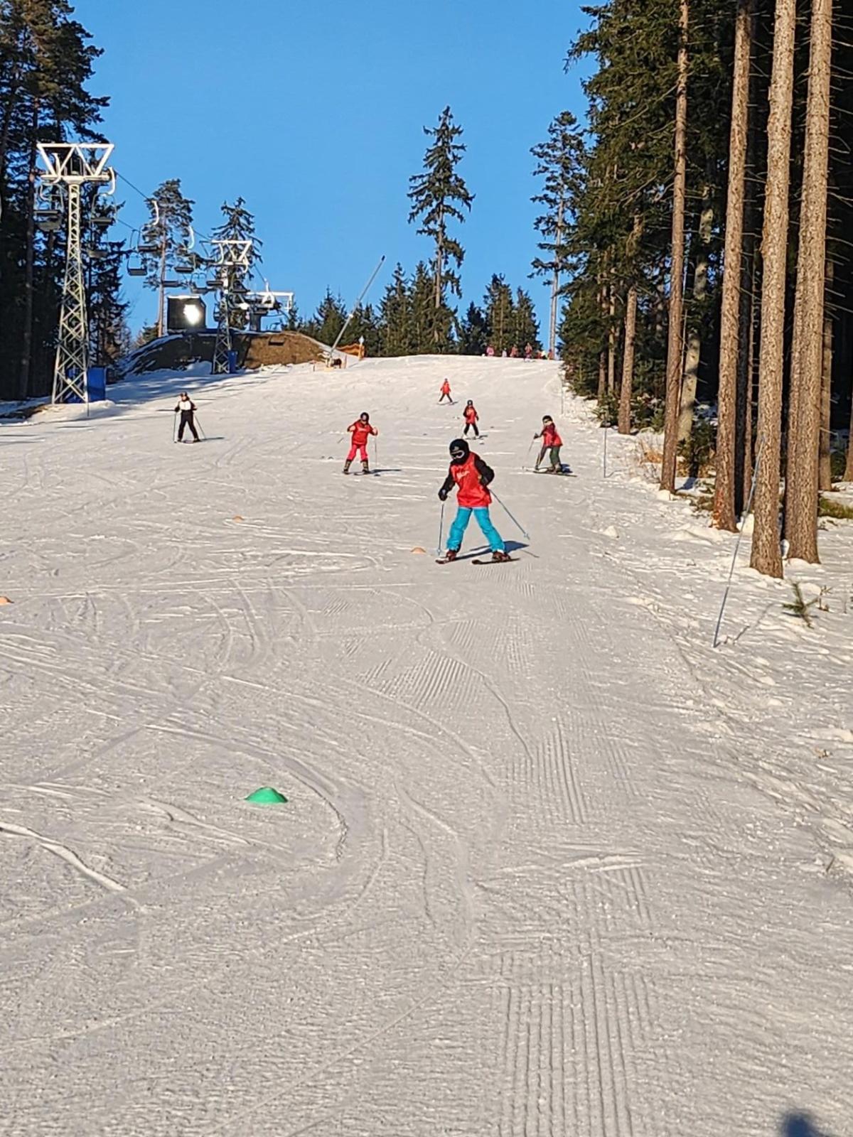 Odpolední lyžovačka se nesla v duchu velkého pokroku. Druhé družstvo se vydalo ve stopách prvního týmu a vyrazilo již na velkou sjezdovku s lanovkou. I třetí družstvo se báječně rozpohybovalo, všichni zvládli sjet malou sjezdovku bez dopomoci.