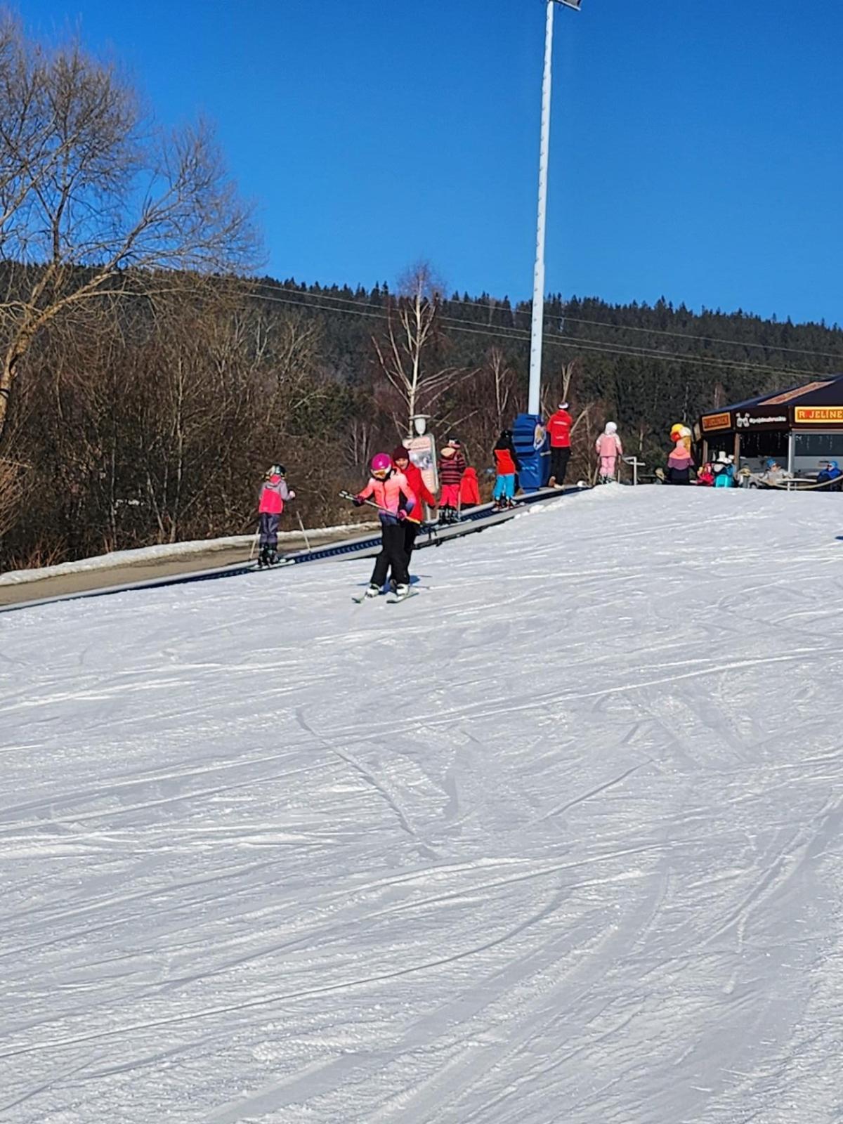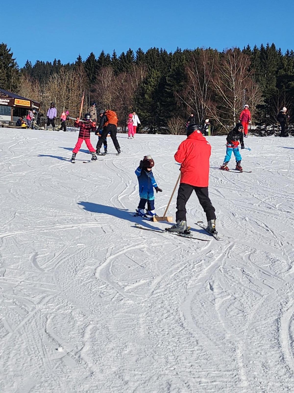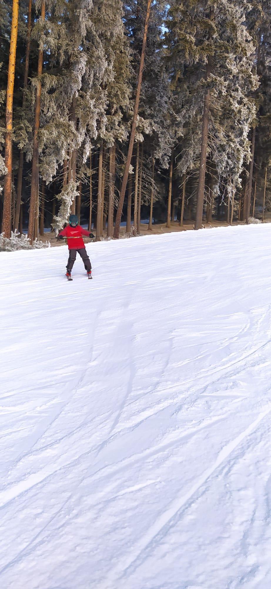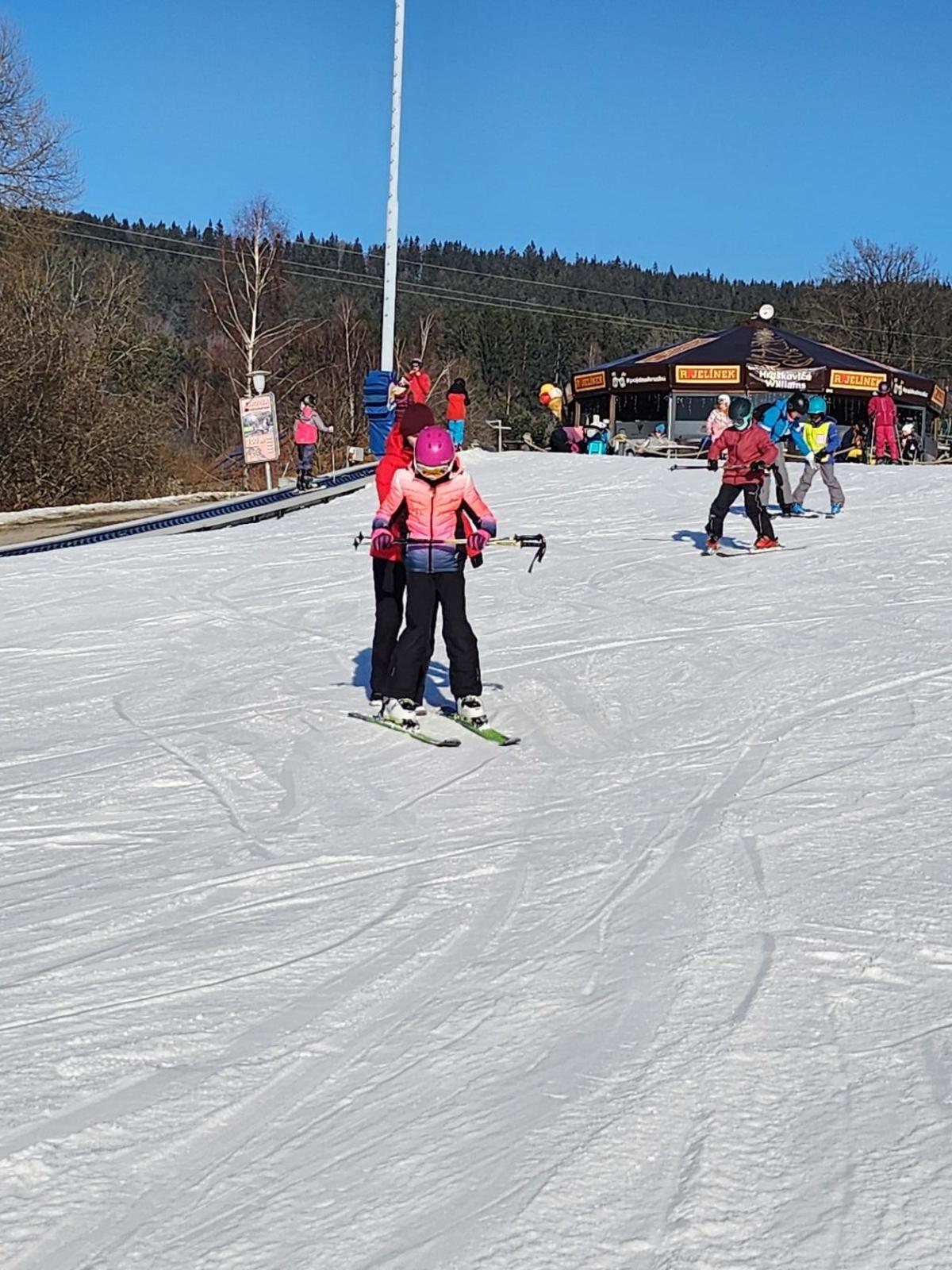 Odpolední lyžovačka se nesla v duchu velkého pokroku. Druhé družstvo se vydalo ve stopách prvního týmu a vyrazilo již na velkou sjezdovku s lanovkou. I třetí družstvo se báječně rozpohybovalo, všichni zvládli sjet malou sjezdovku bez dopomoci.