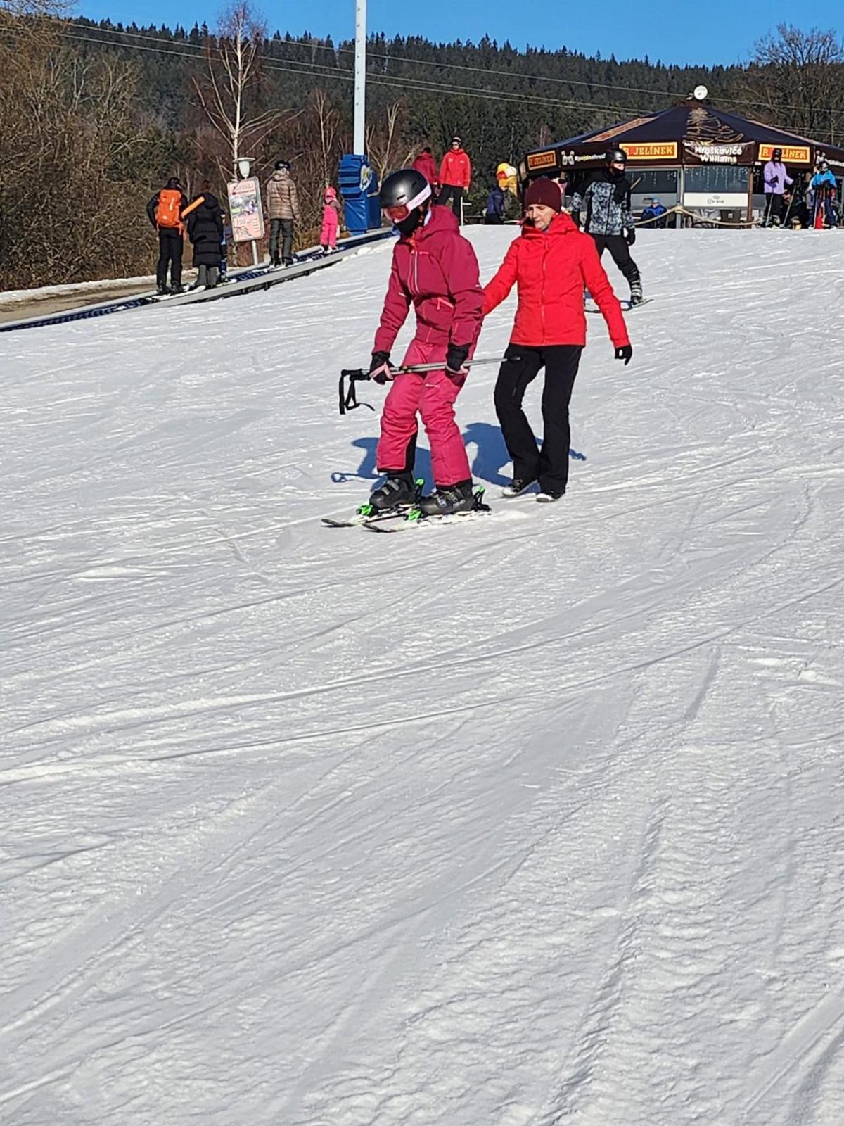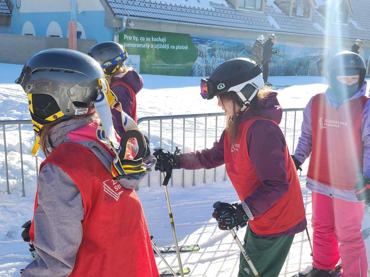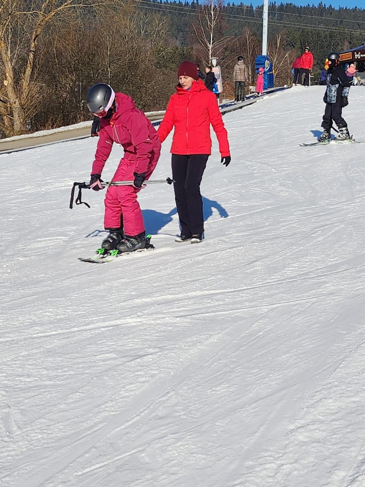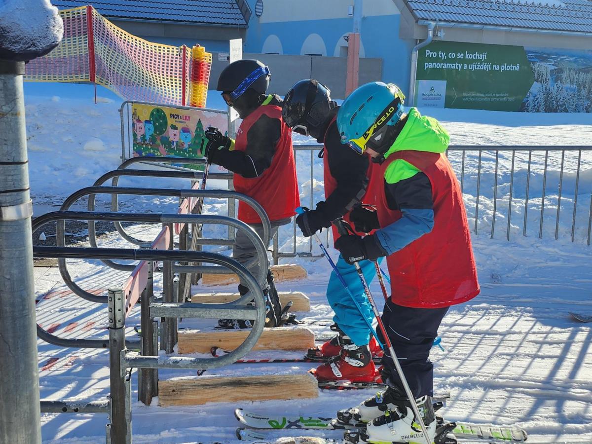 Odpolední lyžovačka se nesla v duchu velkého pokroku. Druhé družstvo se vydalo ve stopách prvního týmu a vyrazilo již na velkou sjezdovku s lanovkou. I třetí družstvo se báječně rozpohybovalo, všichni zvládli sjet malou sjezdovku bez dopomoci.