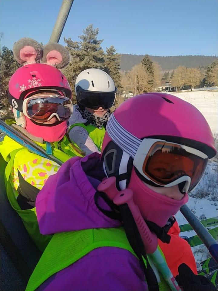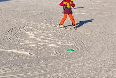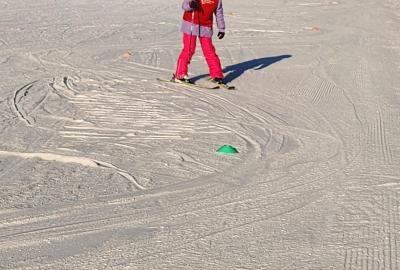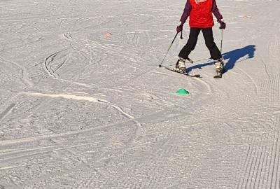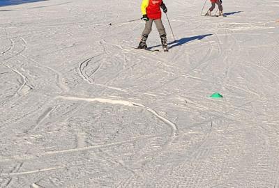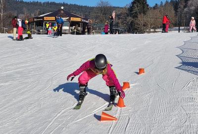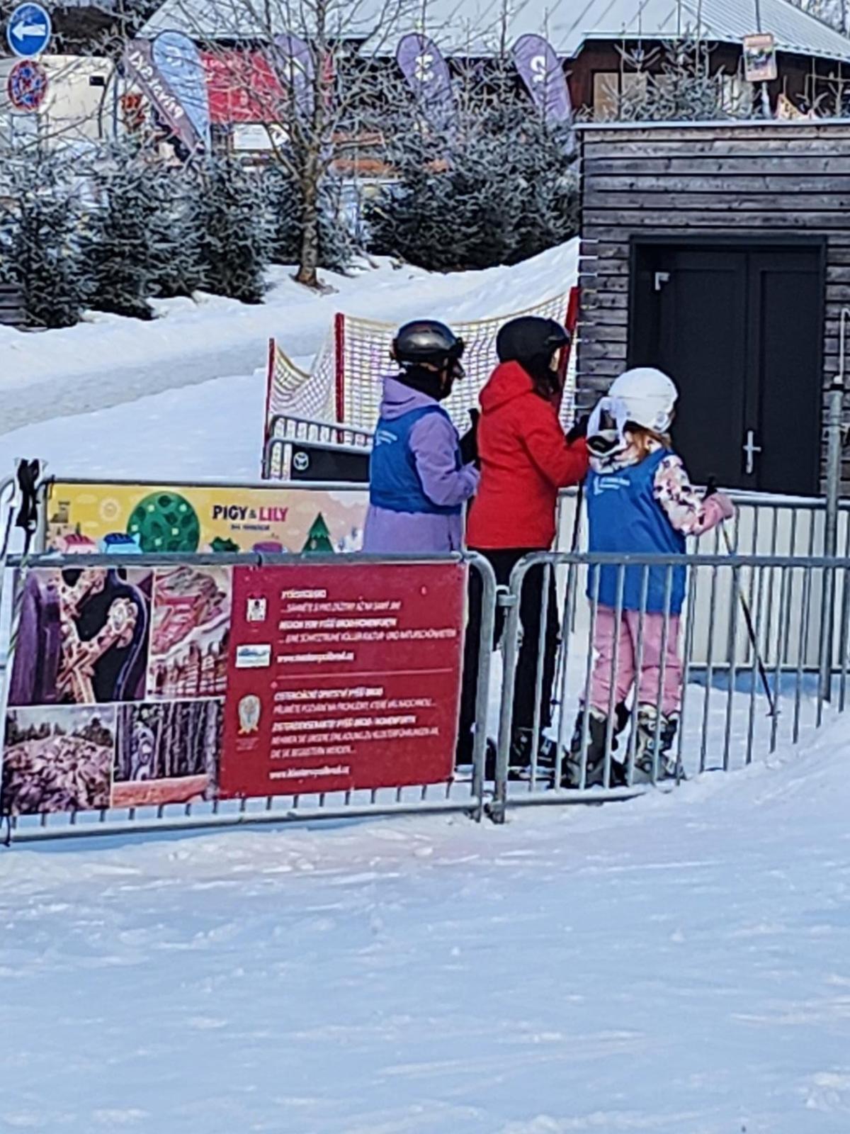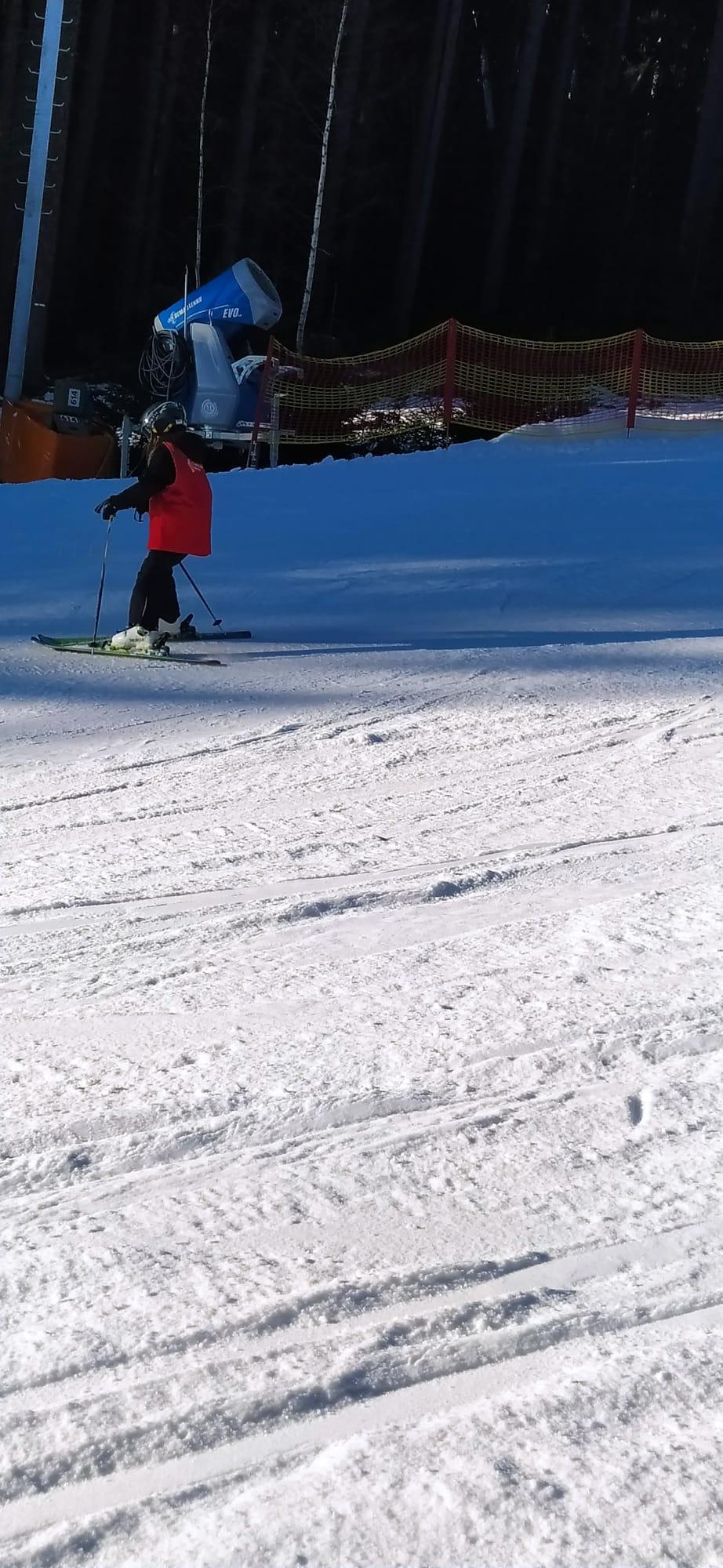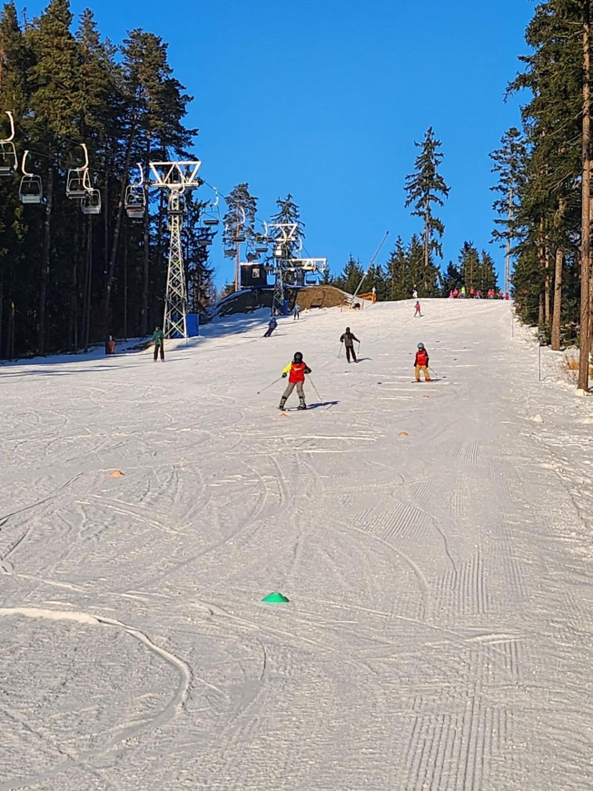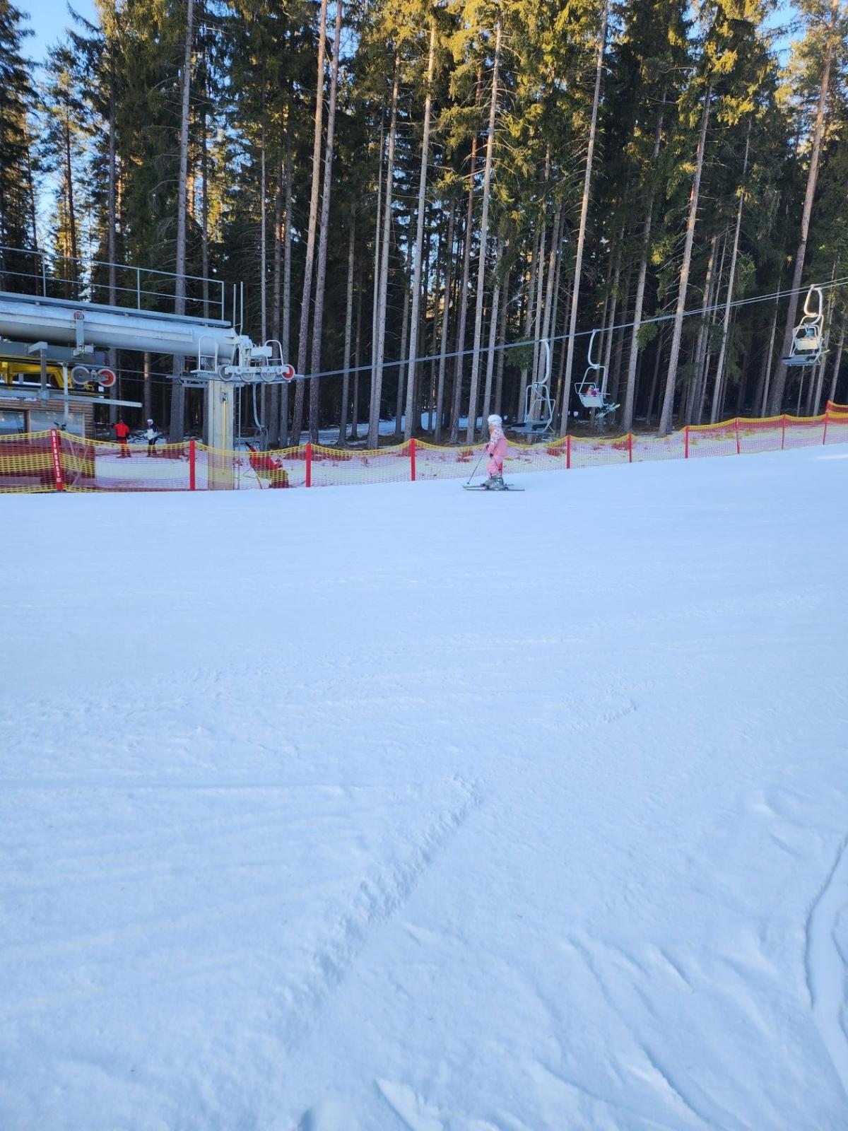Odpoledne jsme se na chvilku všichni spojili, protože jsme jeli vyzkoušet novou sjezdovku s dvousedačkovou lanovkou. Na této sjezdovce jsme si projeli i slalom.