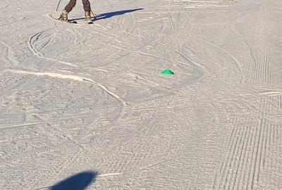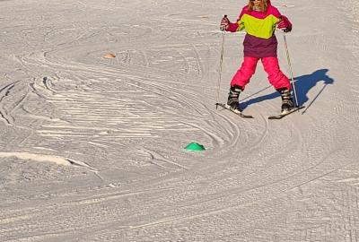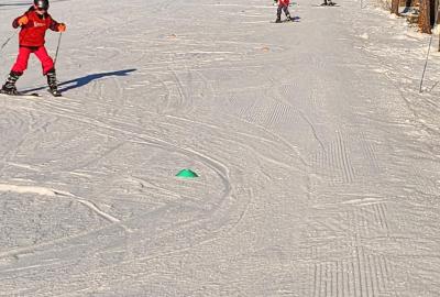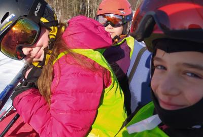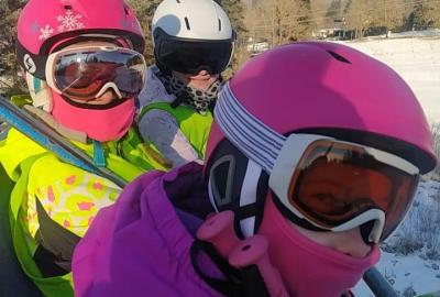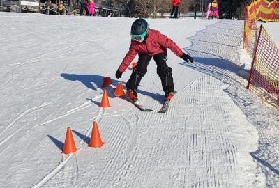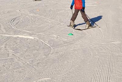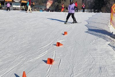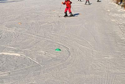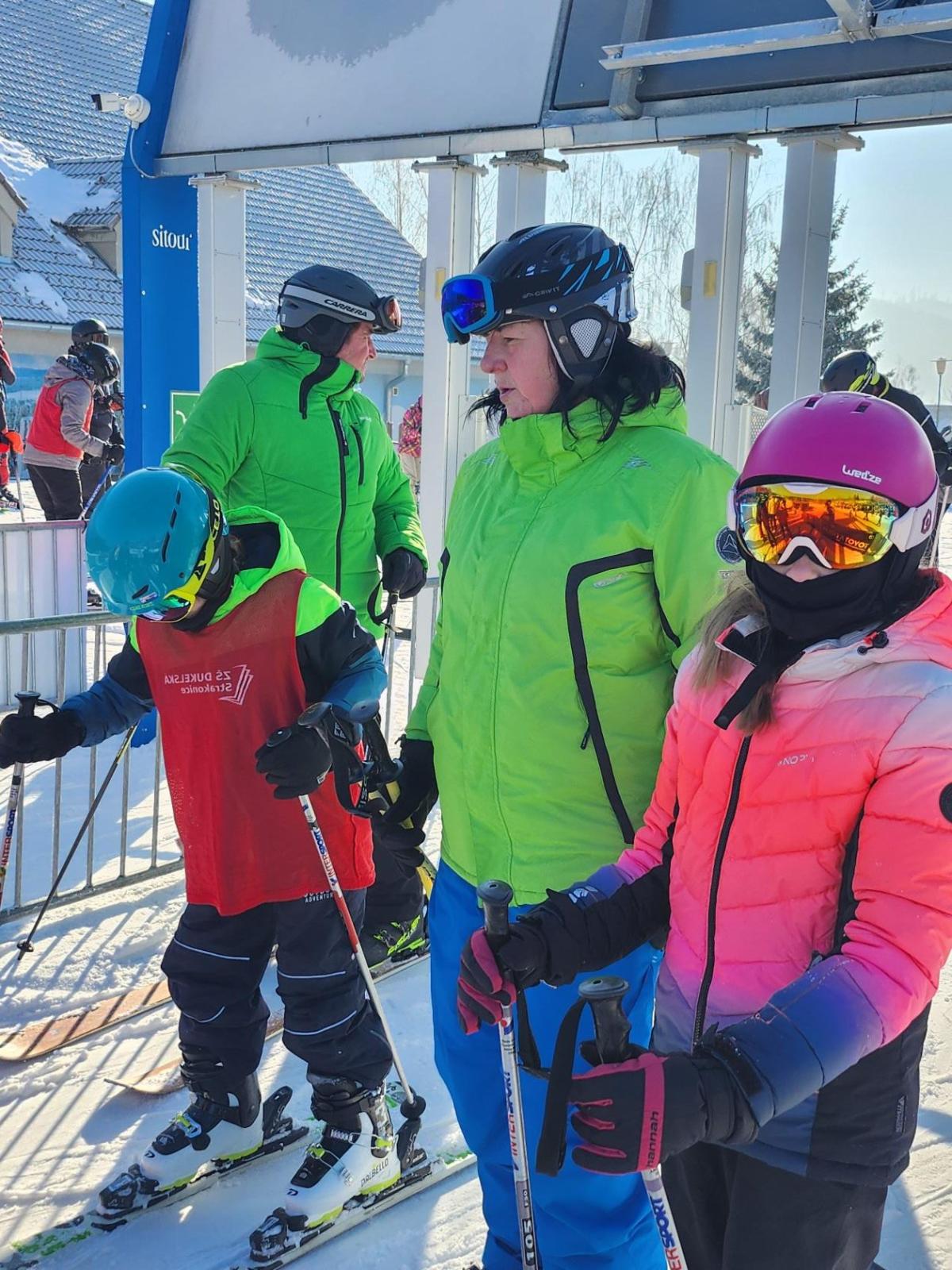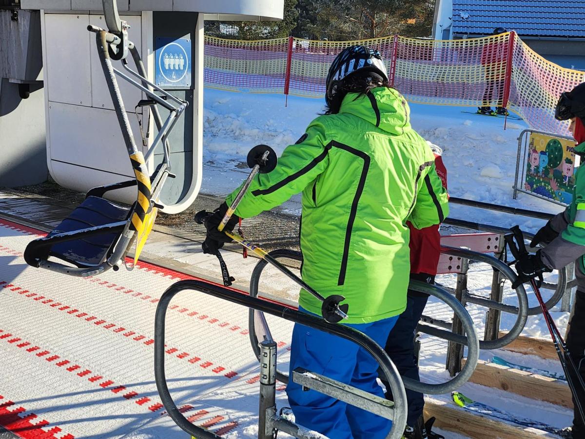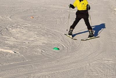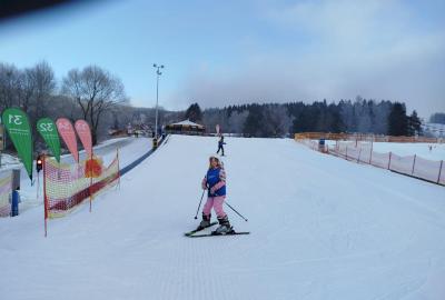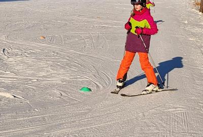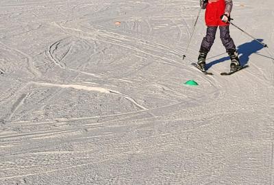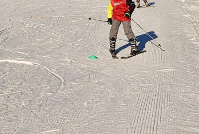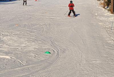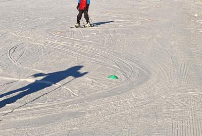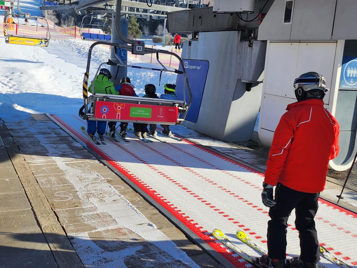 Odpoledne jsme se na chvilku všichni spojili, protože jsme jeli vyzkoušet novou sjezdovku s dvousedačkovou lanovkou. Na této sjezdovce jsme si projeli i slalom.