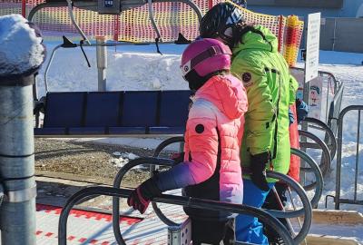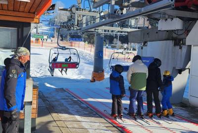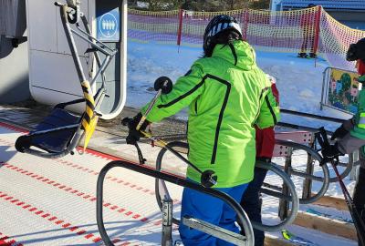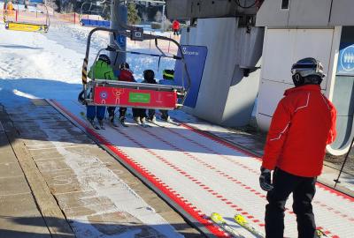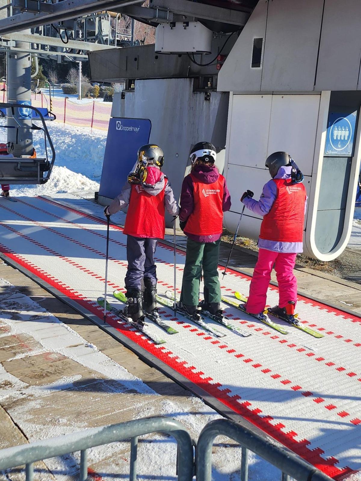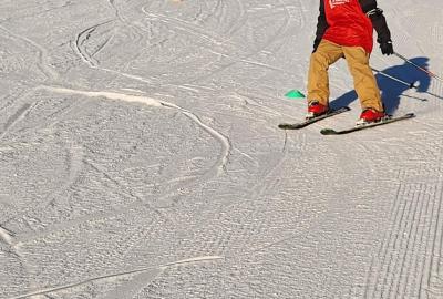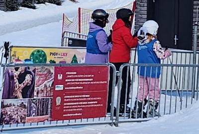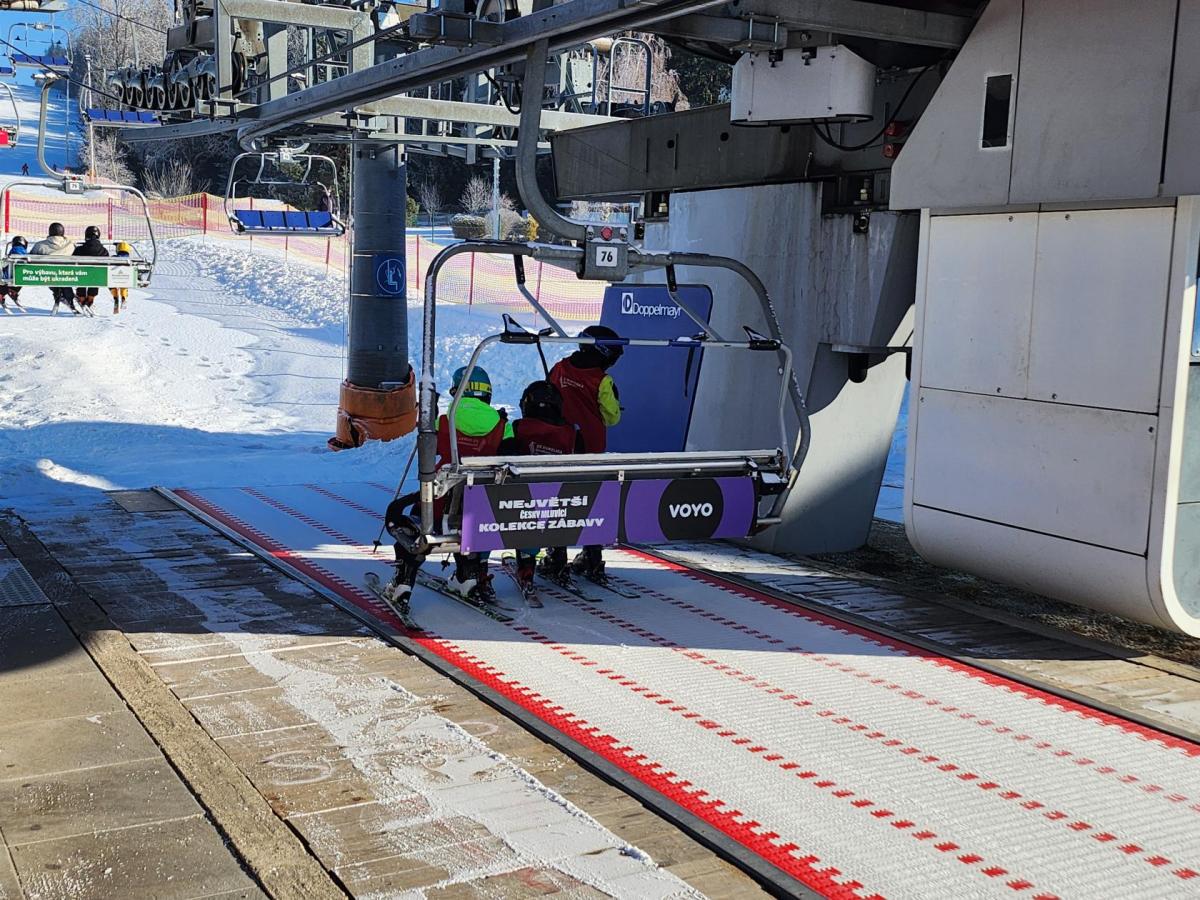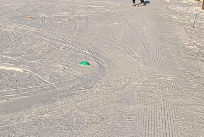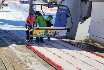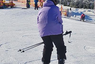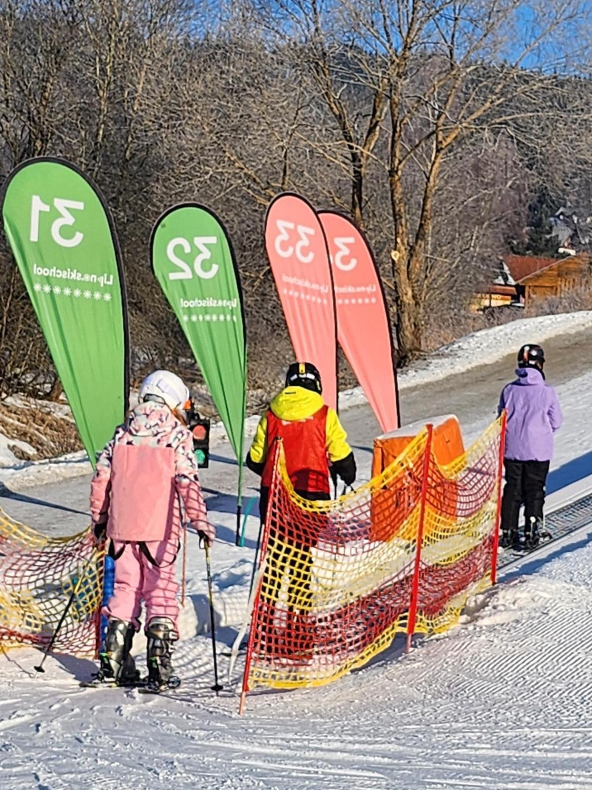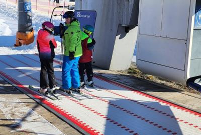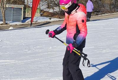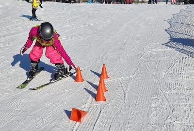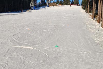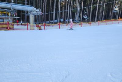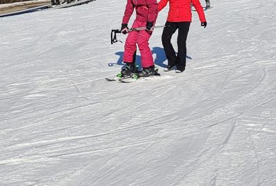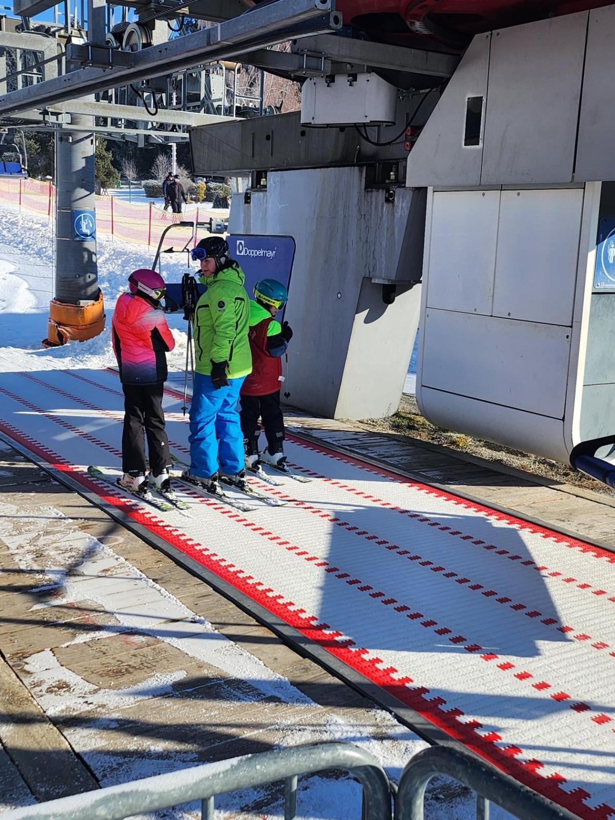 Odpoledne jsme se na chvilku všichni spojili, protože jsme jeli vyzkoušet novou sjezdovku s dvousedačkovou lanovkou. Na této sjezdovce jsme si projeli i slalom.