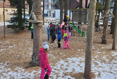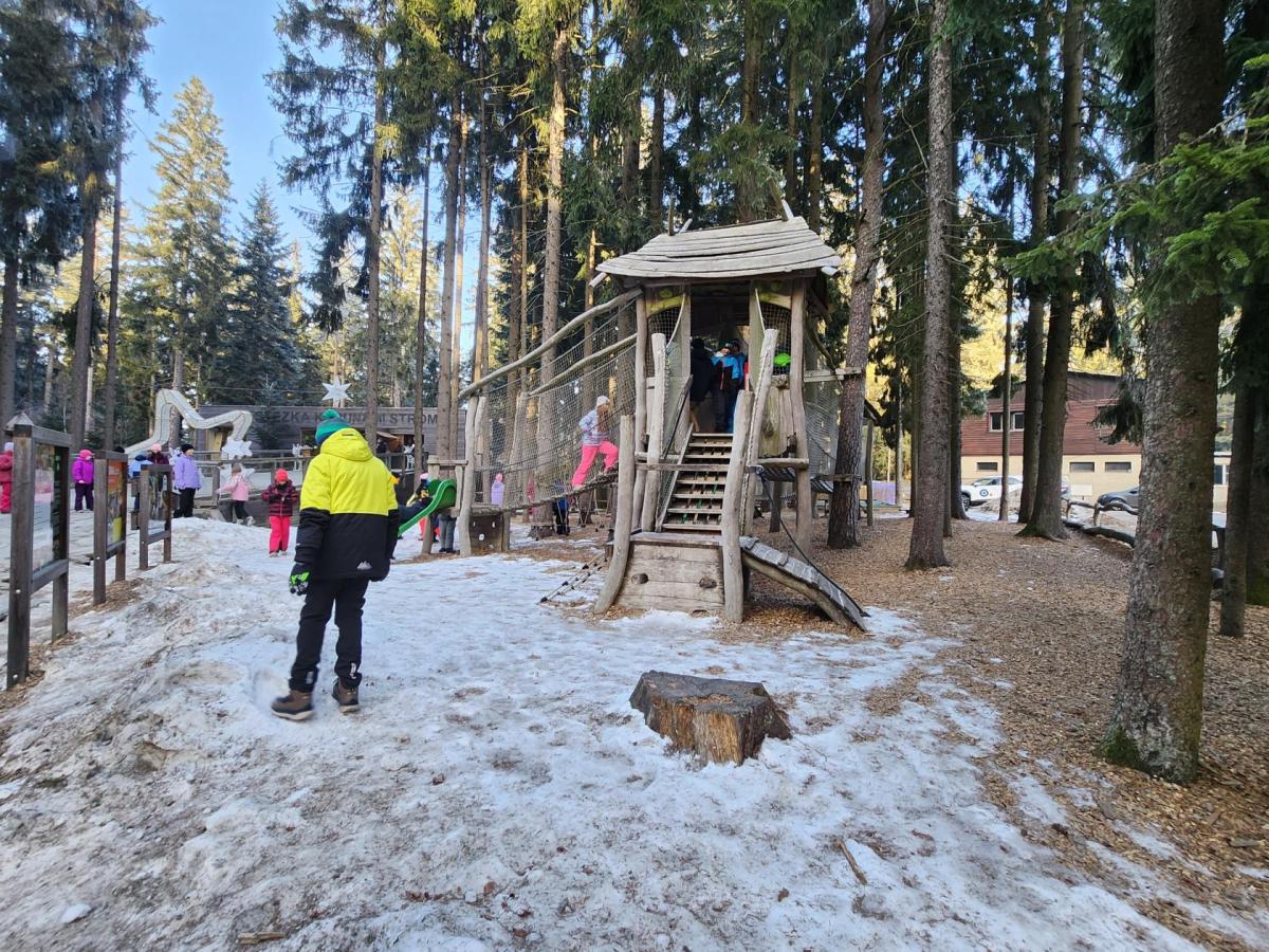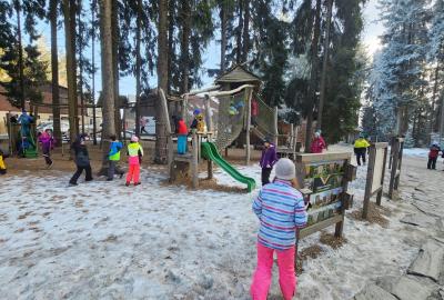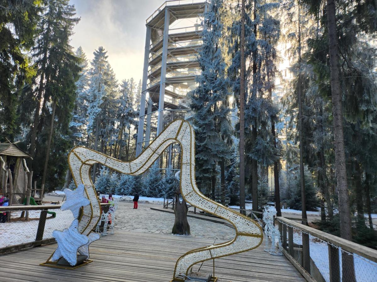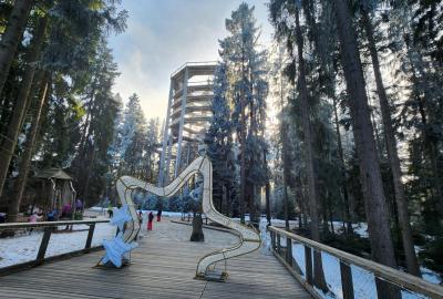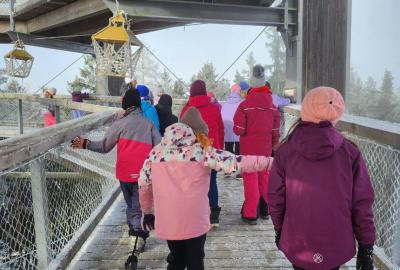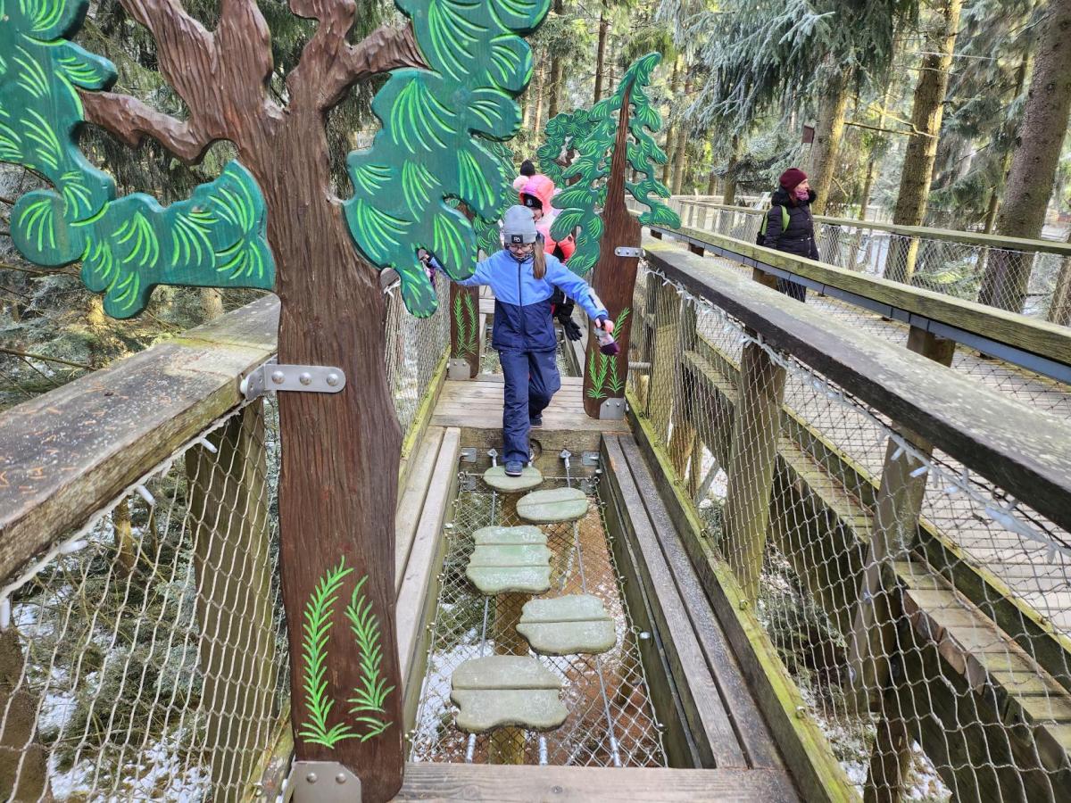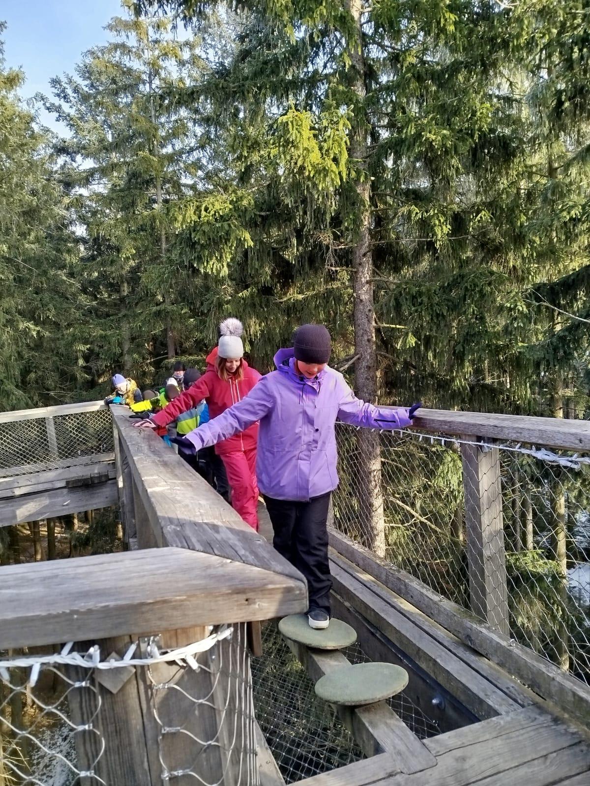 Ráno jsme sice vyrazili na sjezdovku, abychom odstranili poslední nedokonalosti v našem lyžařském umu, ale trošku jsme si to zkrátili. Nebylo to kvůli tomu, že bychom snad neměli energii (té máme na rozdávání), ale jednak na nás čekala paní kuchařka s lívanci se šlehačkou a pak jsme také museli stihnout Stezkabus, který nás vyvezl na Stezku v korunách stromů.