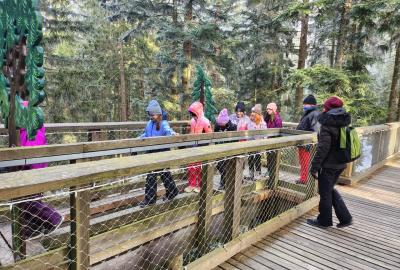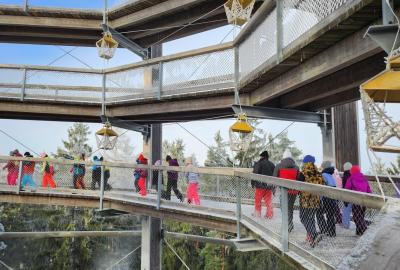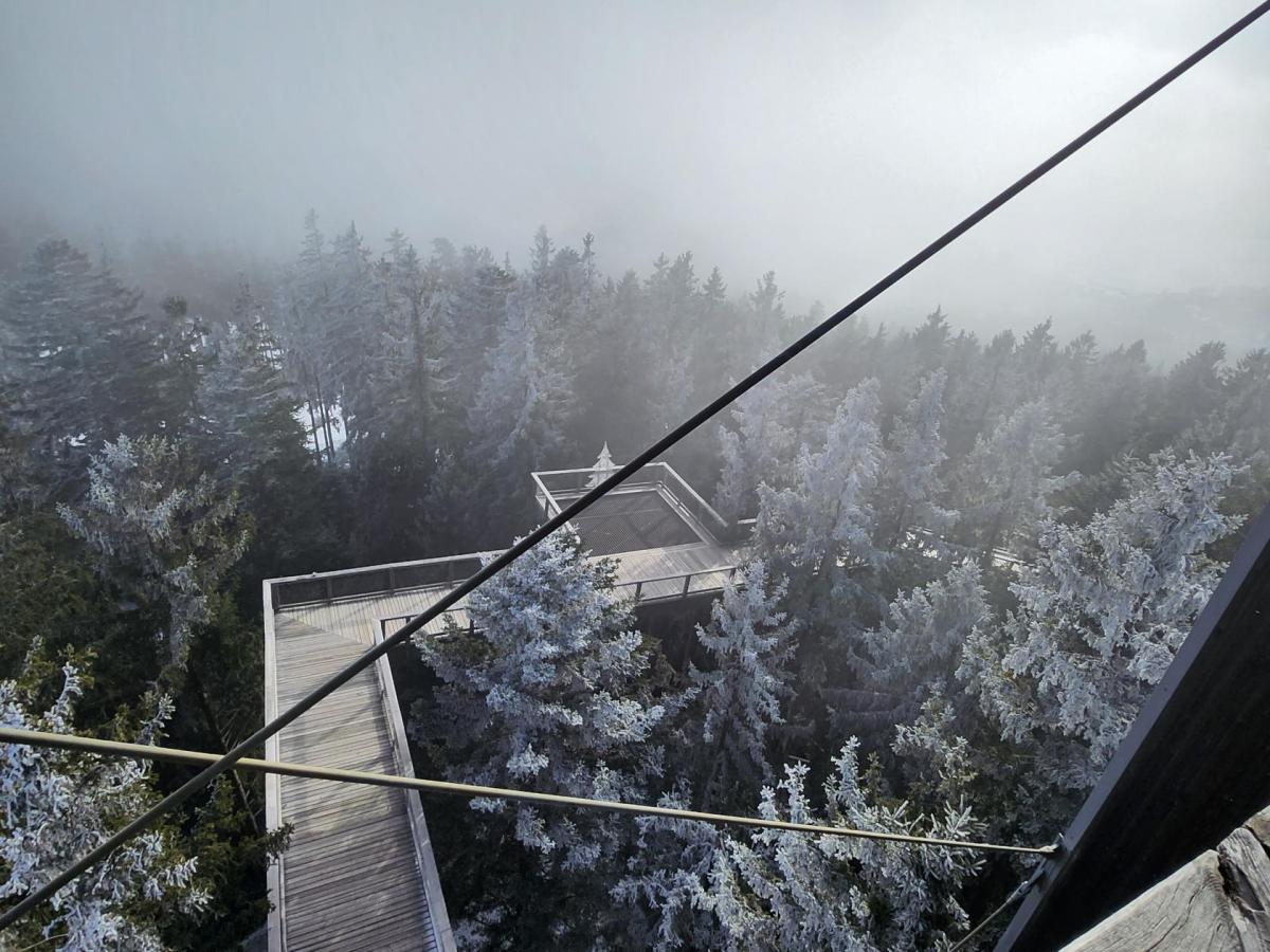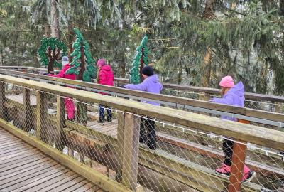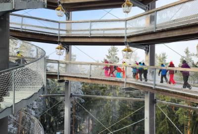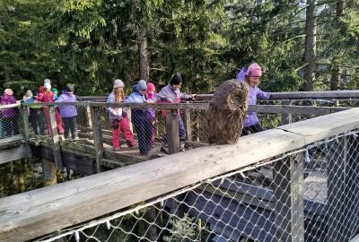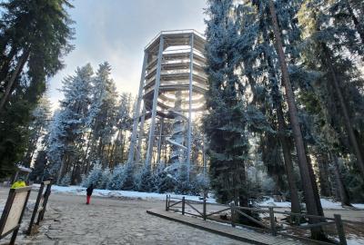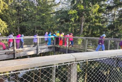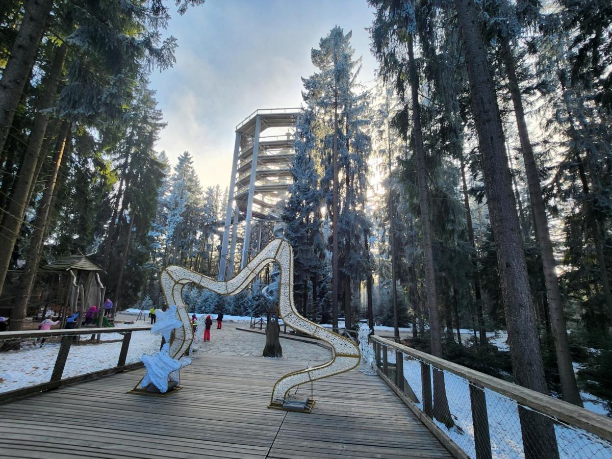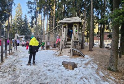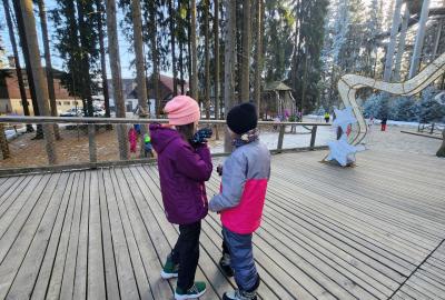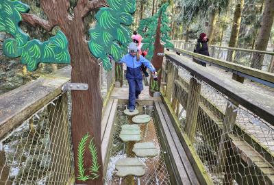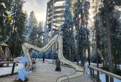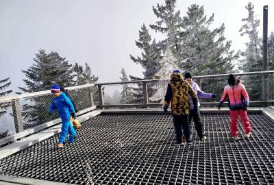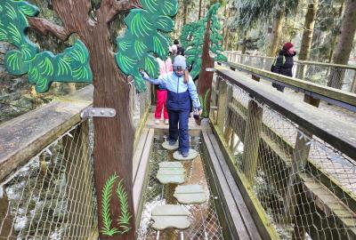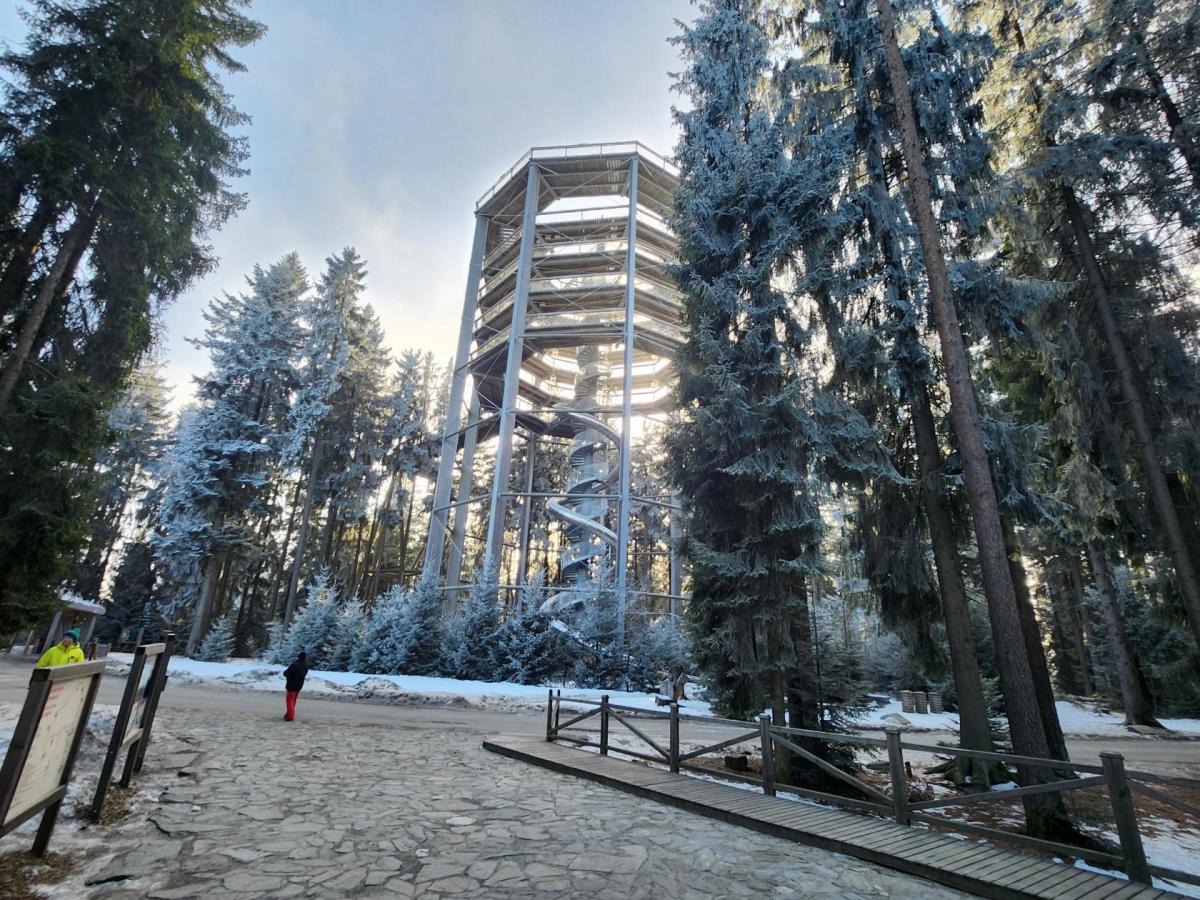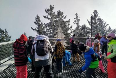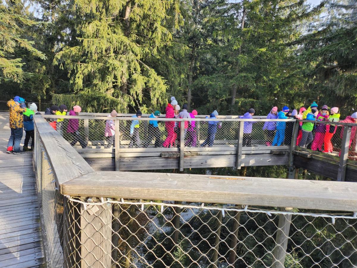 Ráno jsme sice vyrazili na sjezdovku, abychom odstranili poslední nedokonalosti v našem lyžařském umu, ale trošku jsme si to zkrátili. Nebylo to kvůli tomu, že bychom snad neměli energii (té máme na rozdávání), ale jednak na nás čekala paní kuchařka s lívanci se šlehačkou a pak jsme také museli stihnout Stezkabus, který nás vyvezl na Stezku v korunách stromů.