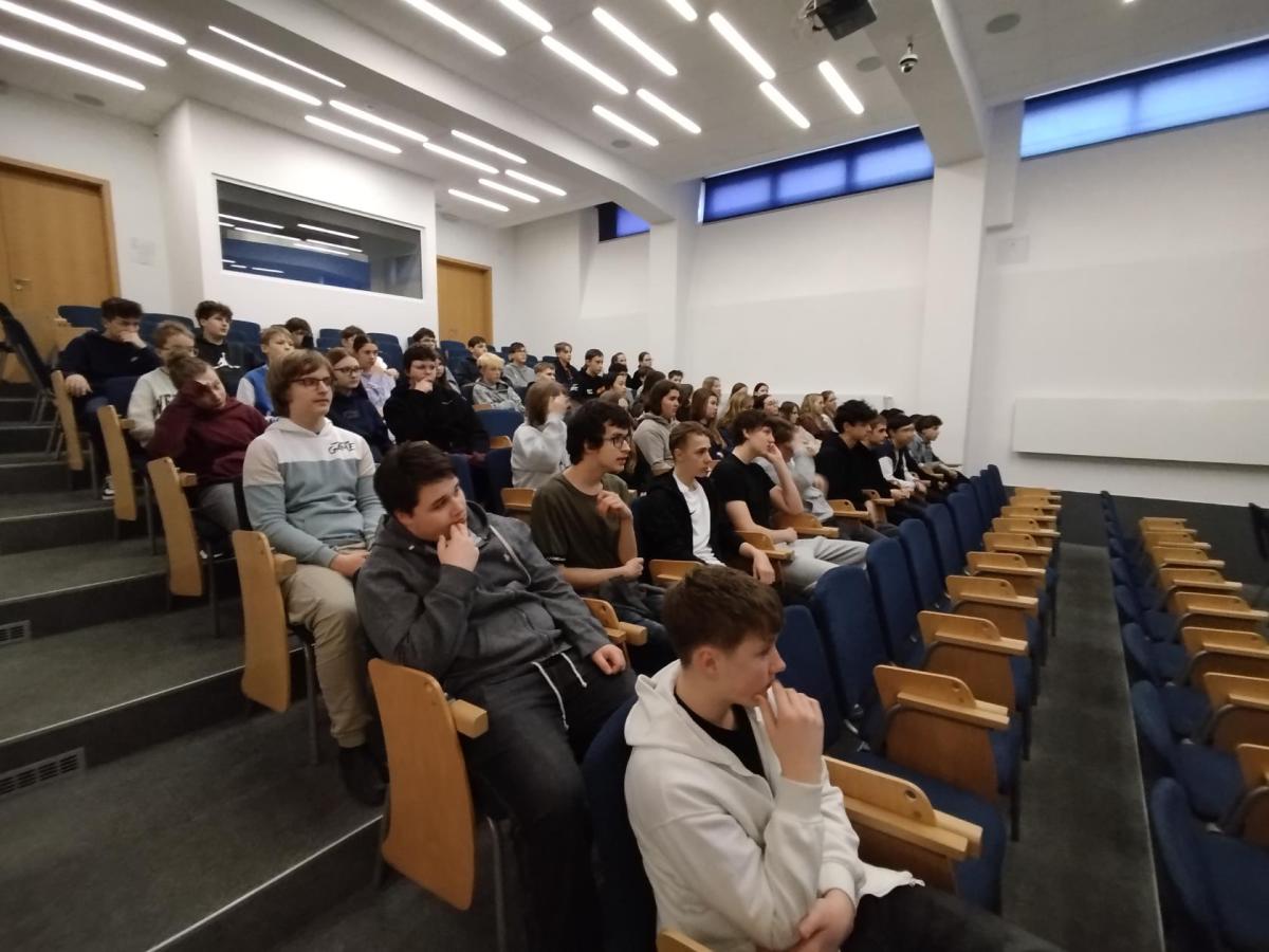 V úterý 3. 3. se žáci 8. C, 8.D a 8. M pod dohledem svých třídních učitelek vypravili na návštěvu SPŠ ve Volyni. Nejprve jsme navštívili jejich krásnou aulu, kde jsme vyslechli přednášku o obnovitelných zdrojích. Škola se tímto tématem zabývá.