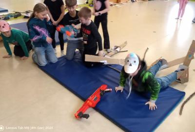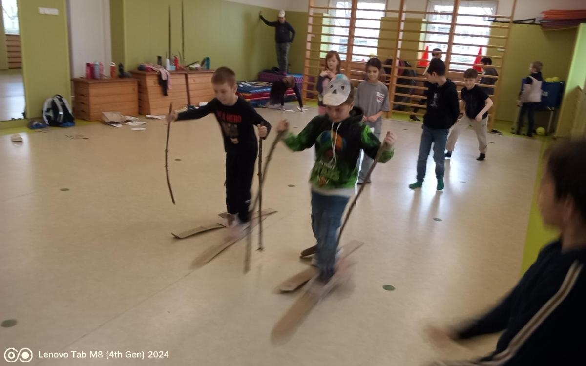 V letošním roce jsme se rozhodli změnit karneval za vystoupení sportovních postav místo masek. Místo tance děti soutěžily ve sportovních disciplínách, které jsou na olympiádě např. biatlon, skeleton, curling, rychlobrusleni a další. Děti si vytvořily masky sportovců a vyzkoušely některé disciplíny. Znalosti o zimních sportech si ověřily v křižovce a nakonec zachytily některé sporty ve výtvarných pracích.
