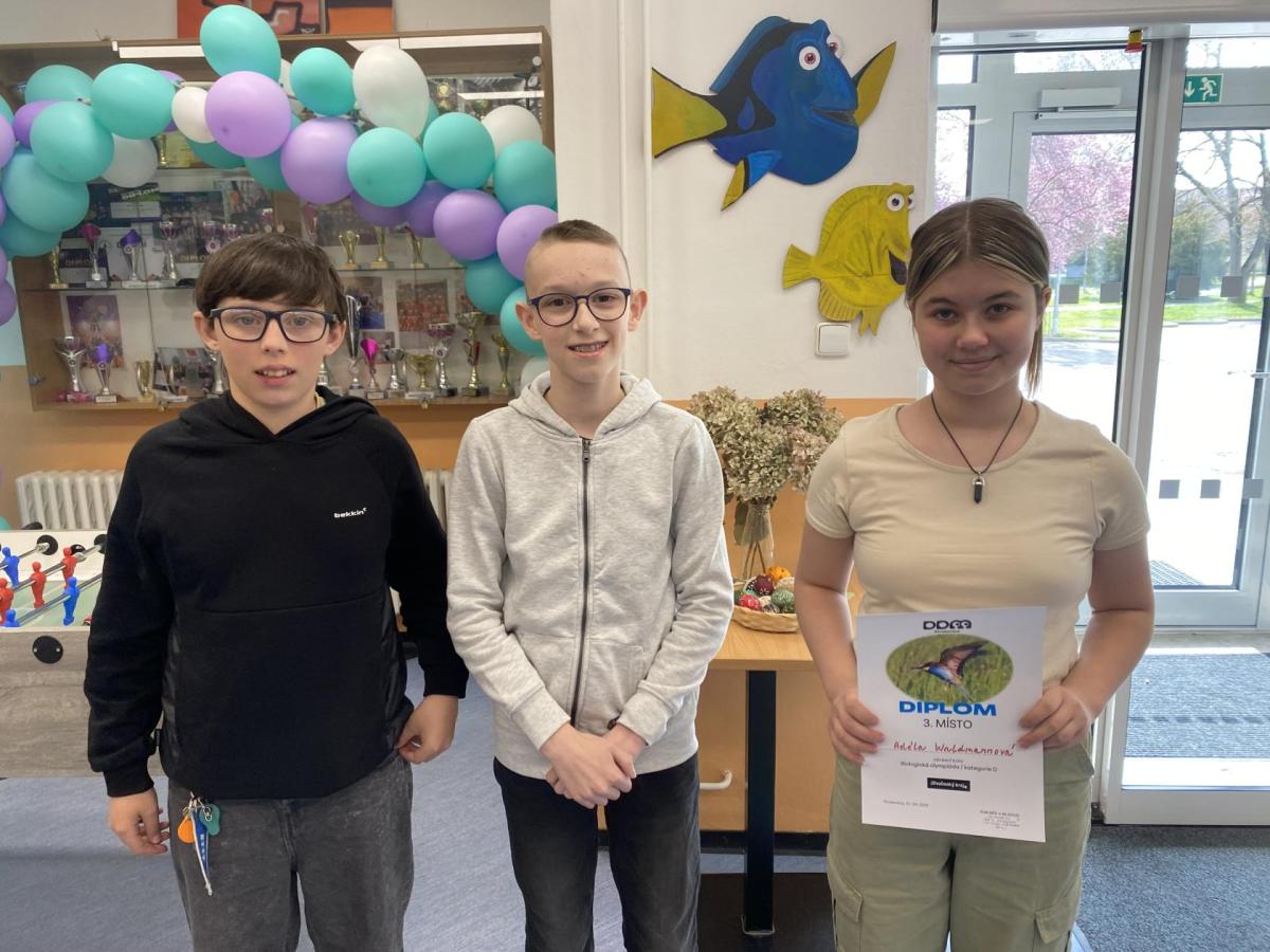 V letošním školním roce se tři naši žáci zúčastnili okresního kola Biologické olympiády (kategorie „D"), které se konalo 10.4.2025 v DDM Strakonice. V konkurenci mnoha nadaných žáků z celého okresu si vedli výborně a vzorně reprezentovali naši školu.