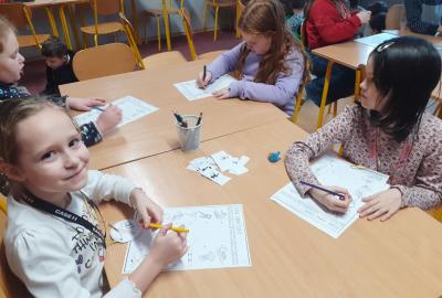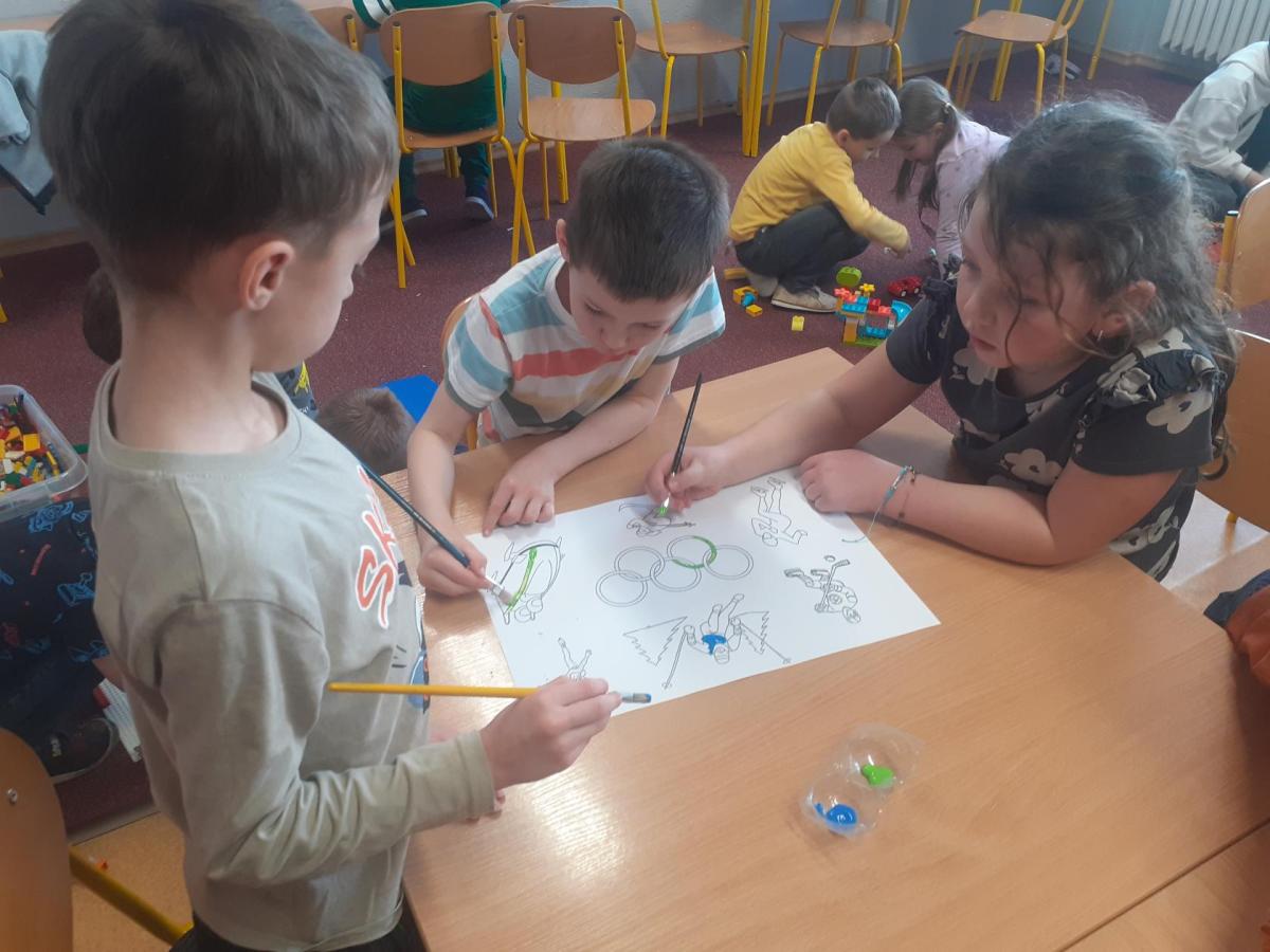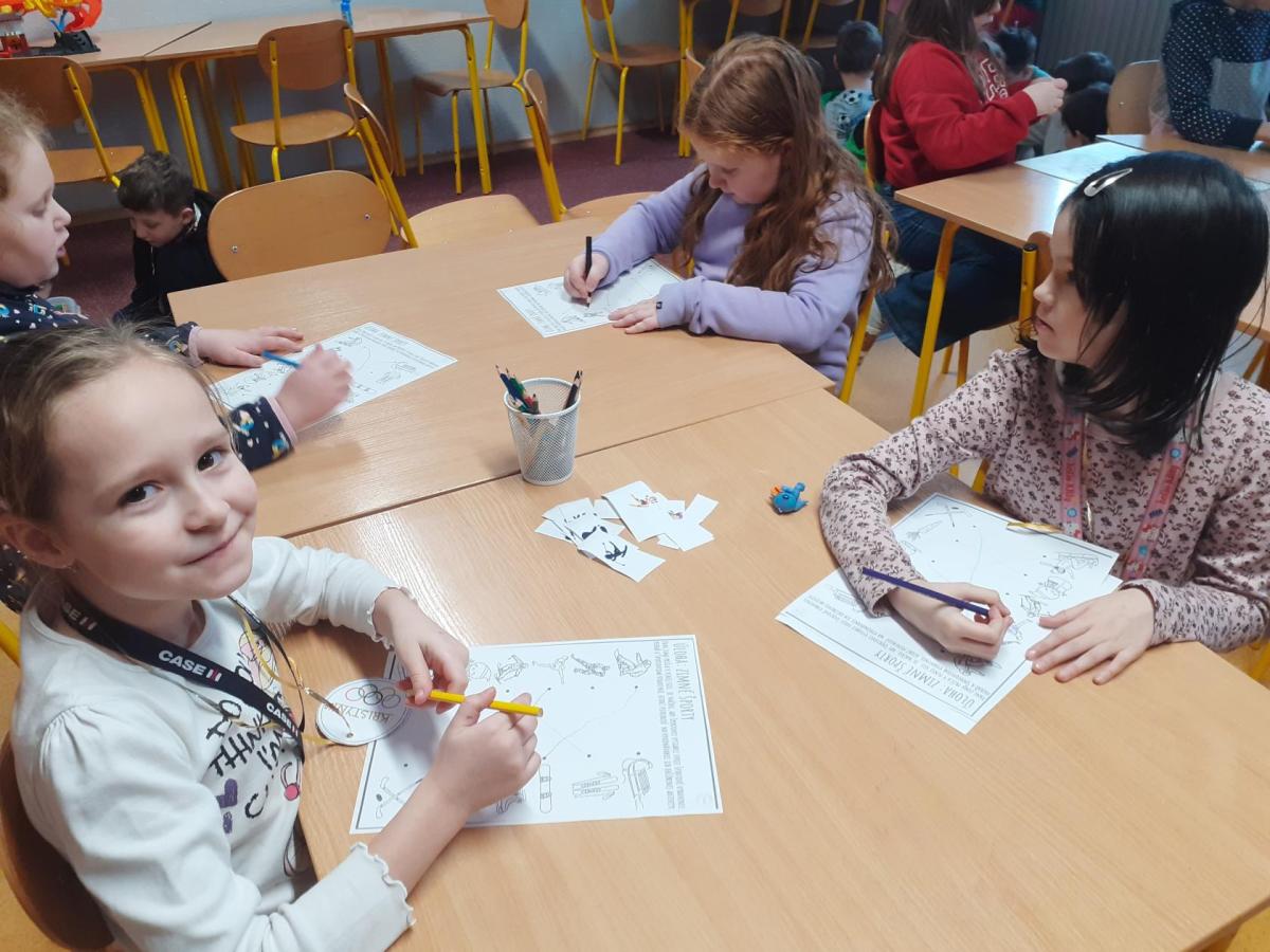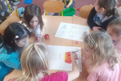 Tentokrát děti pracovaly ve skupinách. Měly za úkol domluvit se a spolupracovat. Vznikaly krásné kresby a výtvory související s olympiádou. Vrcholem byly soutěže v gymnastickém sále, inspirované zimními disciplínami. Nechyběl hokej, střelba na cíl a nebo domácí varianta curlingu. Děti soutěžily se zápalem, navzájem si fandily a všechny obdržely olympijské medaile.