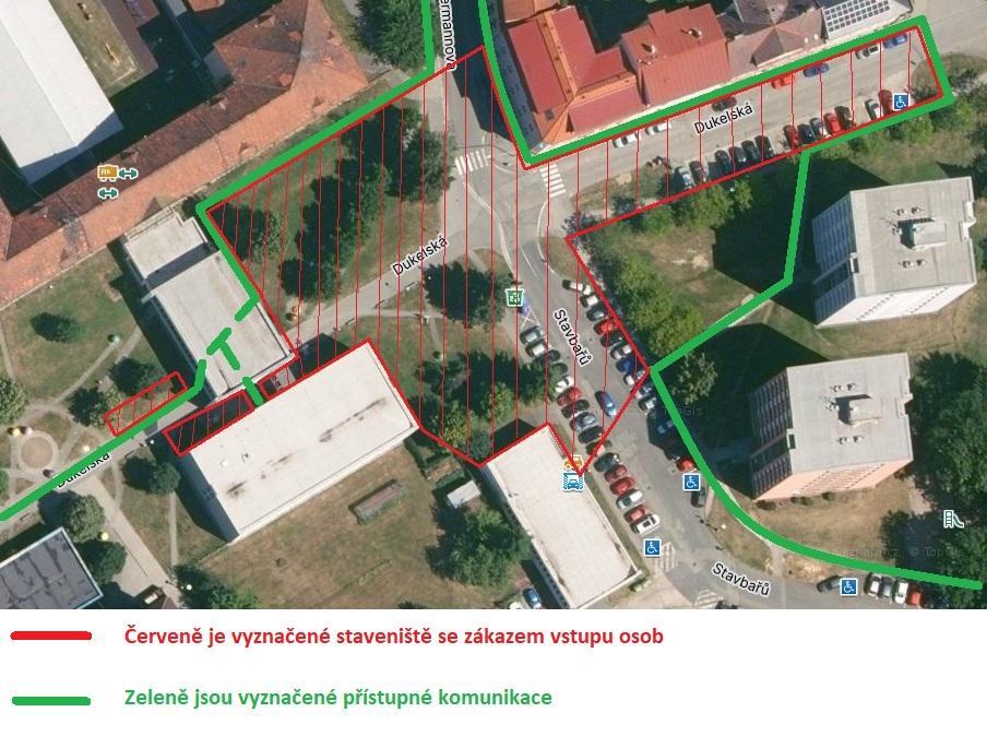 dnes došlo ke změně pěších průchodů v okolí naší školy z důvodu probíhajících úprav křižovatky ulic Klostermannova – Dukelská – Stavbařů.