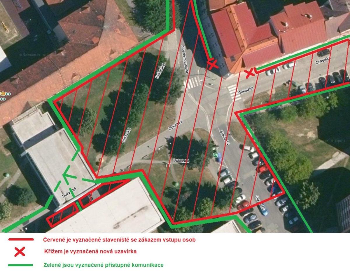 od 13. 11. 2025 dojde ke změně pěších průchodů v okolí naší školy z důvodu probíhajících úprav křižovatky ulic Klostermannova – Dukelská – Stavbařů.