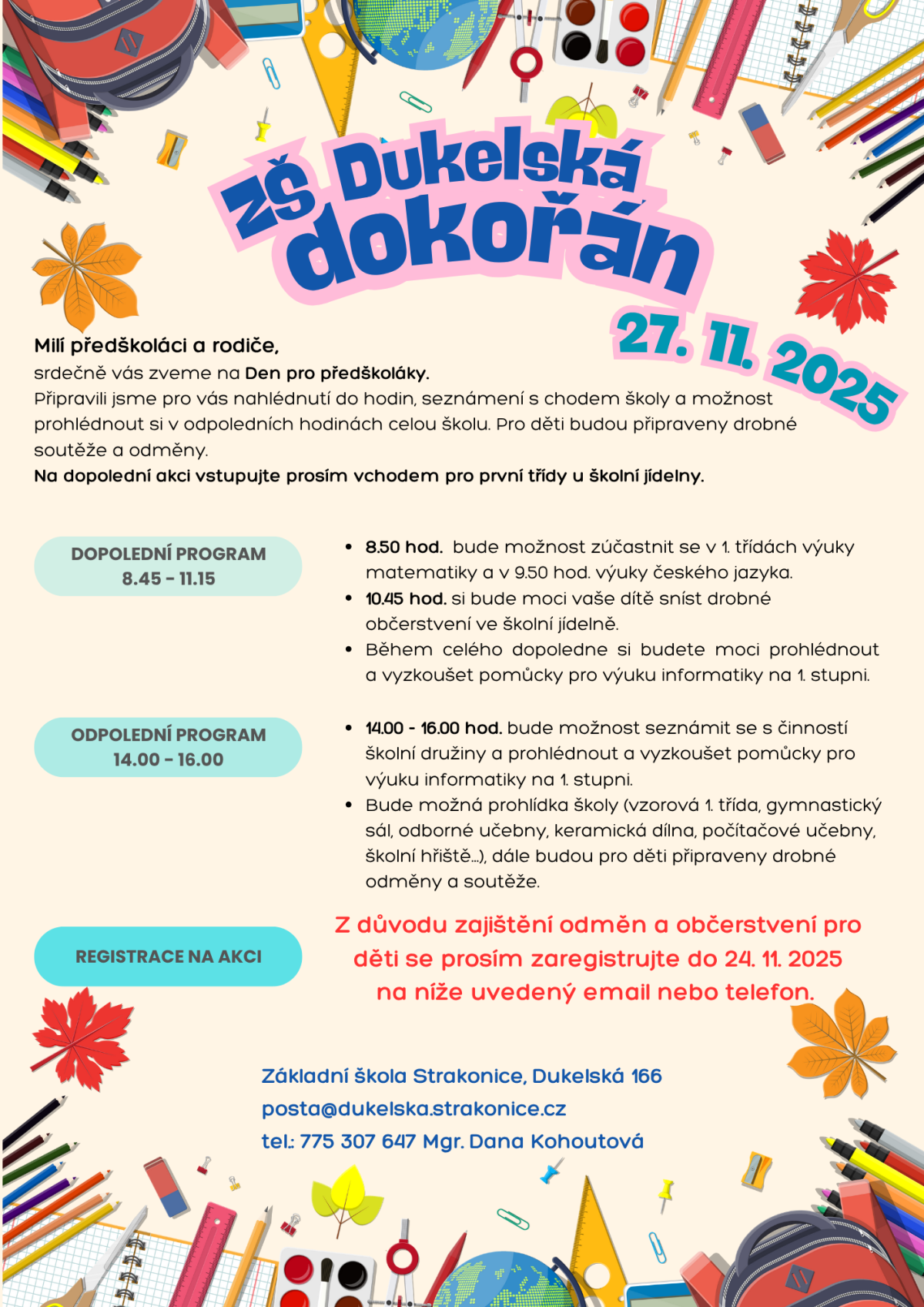 Srdečně zveme všechny předškoláčky na Den otevřených dveří.
