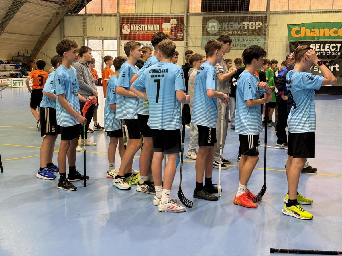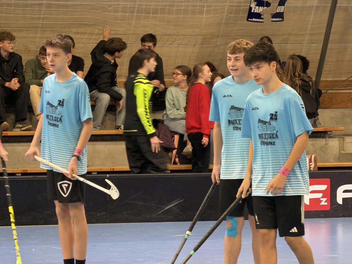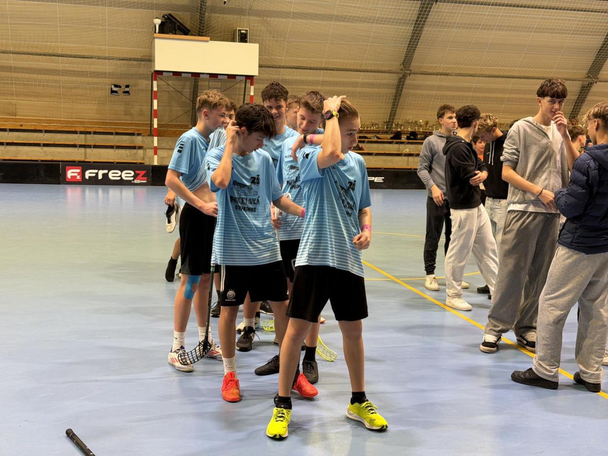 Ve čtvrtek 13. 11. 2025 se kluci z 8. a 9. tříd vypravili směrem k Máchově ulici, kde se měl uskutečnit okresní florbalový turnaj.