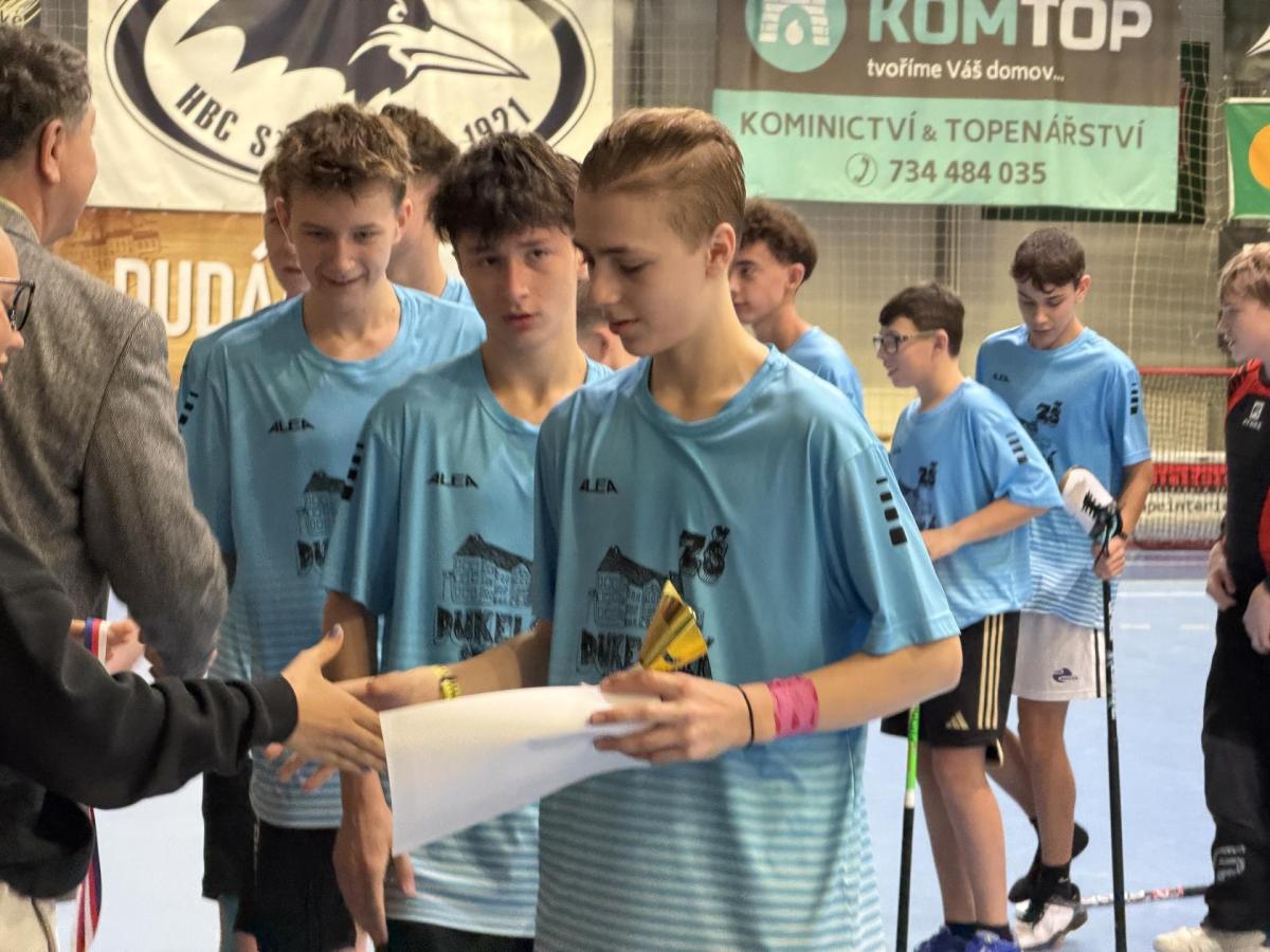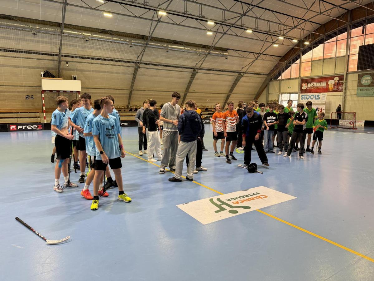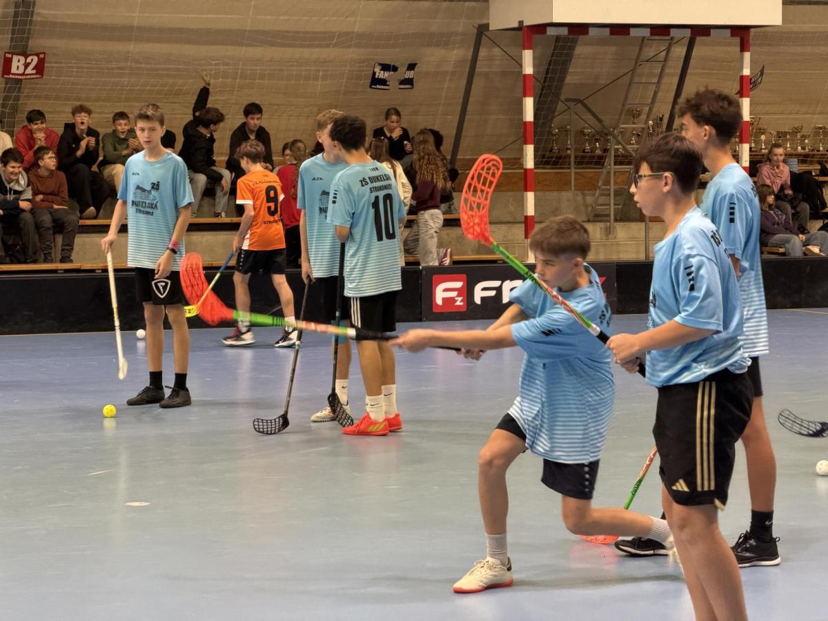 Ve čtvrtek 13. 11. 2025 se kluci z 8. a 9. tříd vypravili směrem k Máchově ulici, kde se měl uskutečnit okresní florbalový turnaj.