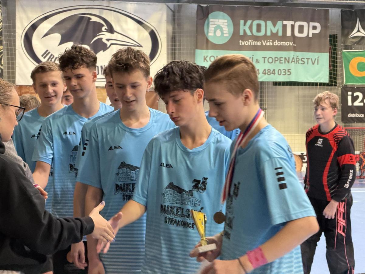 V druhém utkání jsme se postavili proti výběru Bavorova. Po většinu času se nám dařilo držet míček u našich holí, a díky tomu vítězíme 2:0. Turnaj se unáší správným směrem na vlně vítězství. Podaří se někomu zastavit ji? Třetí utkání bylo pro naši školu mírně osobní. Naše úvodní pětka stojí na svých pozicích a proti ní připravený tým TGM Blatná. Proti výběru této školy se postavil minulý týden náš hvězdný tým z 6. a 7. tříd ve finále a smolně prohrál. Naši chlapci předvedli famózní výkon a výsledkem 1:0 ochudili Blatnou o možnost soutěžit o medaile.