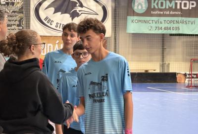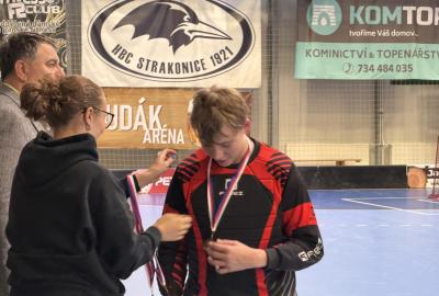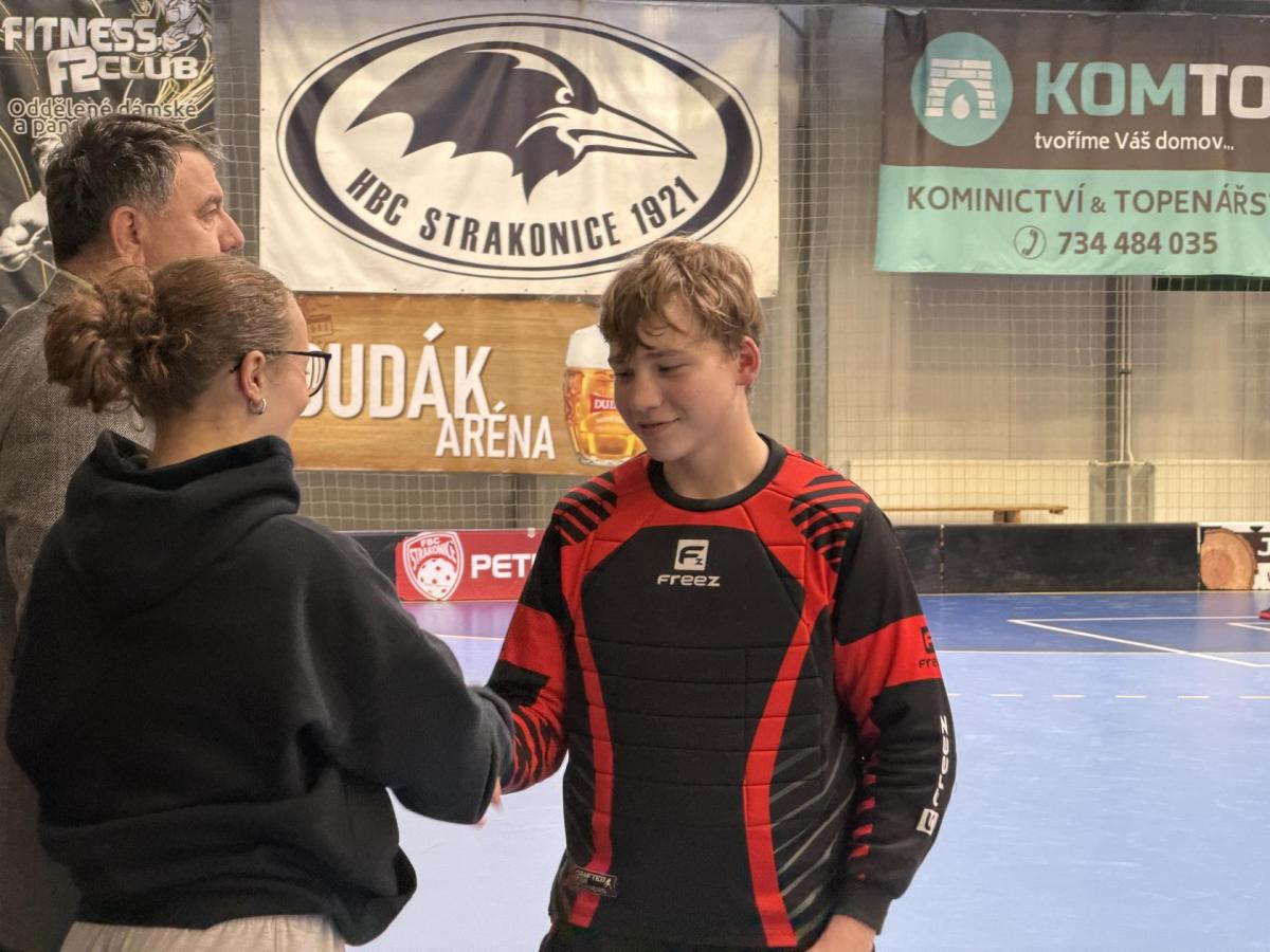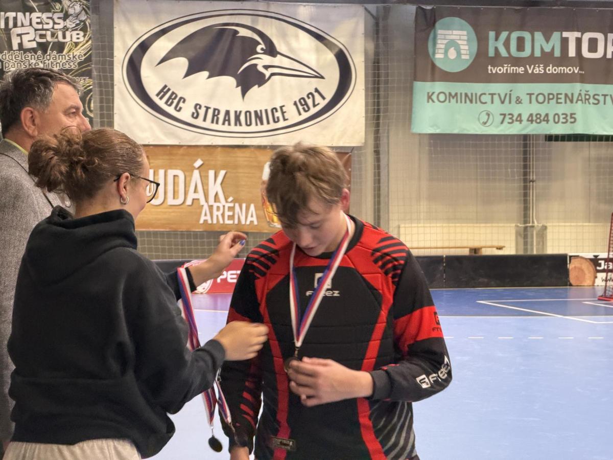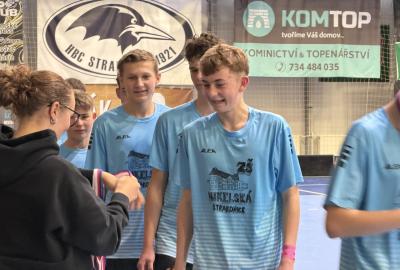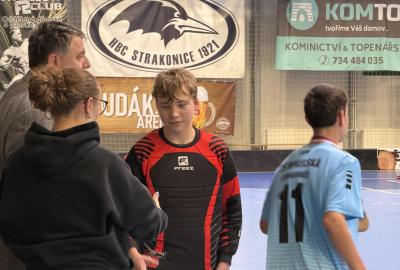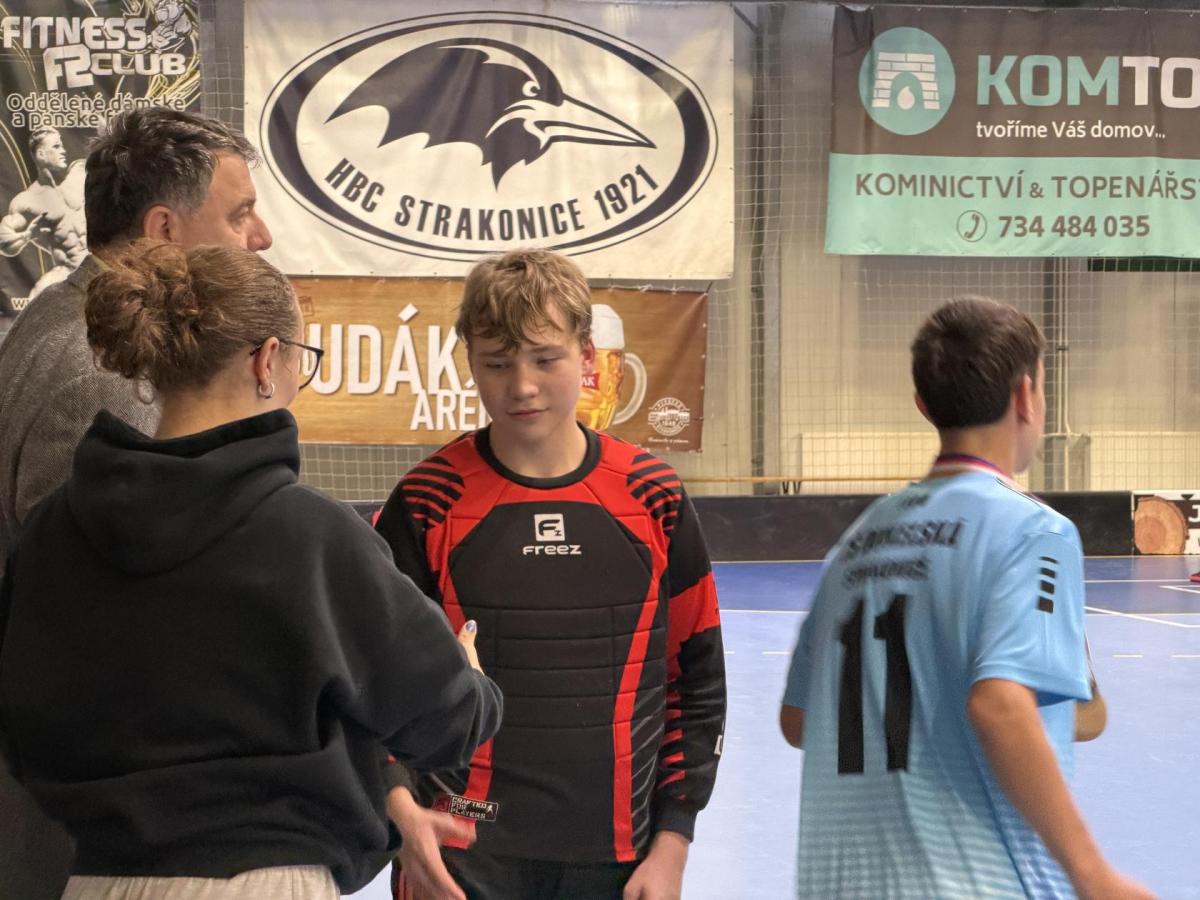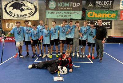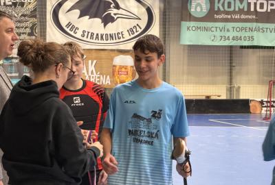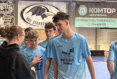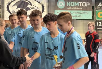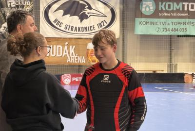Je to tu, semifinále a v něm dva skvělé výběry. Krom toho našeho tedy stojí na palubovce výběr z Vodňan. Zápas trvá nekonečných 12 minut a míček se přelévá ze strany na stranu. Tým Vodňan se rozhodl, nedat nám to zadarmo a udělat utkání zajímavějším. Po skončení časového limitu je jasné, že svou dominanci na turnaji budeme muset potvrdit v nájezdech. První, kdo se postavil na půlící čáru byl Václav Lácha. Rozbíhá se, přelévá míček ze strany na stranu a vybírá si část branky, kam bude zakončovat. Brankář se vysouvá z brány a zmenšuje tak Vaškovi úhel pro střelbu. Zakončení a Vašek míjí branku. Nevadí!!! Jedeme dál a z ničeho se nehroutíme. Soupeřův první nájezd a daří se mu překonat našeho brankáře Jirku Bártíka. Další hráč, který se rozhodl to vzít do svých rukou je Matěj Kešner. Rozebíhá se a v podstatě snadnou a nekomplikovanou střelou dává gól, výborně! Teď opět usedá do branky náš skvělý Jirka. Jeho profi pohyby by dohnali leckterého útočníka k šílenství. Soupeř střílí a Jirka chytá! Stav je tedy vyrovnaný. Poslední kolo nájezdů a v něm na sebe bere zodpovědnost náš kapitán Miloš Šmíd, ten to s hokejkou opravdu umí. Občas si říkáme, jestli ji jako malý neměl namísto dudlíku. Pozvolna se rozchází a skvělou kombinací kliček rozhýbává brankáře. Tvoří si prostor pro střelbu... GÓL!!! Teď je to na našem brankáři, napětí by se dalo krájet. Výborný Jirka chytá a posouvá tak náš tým do vysněného finále.