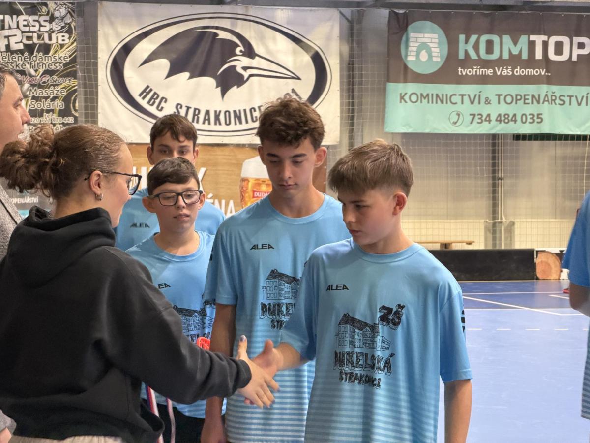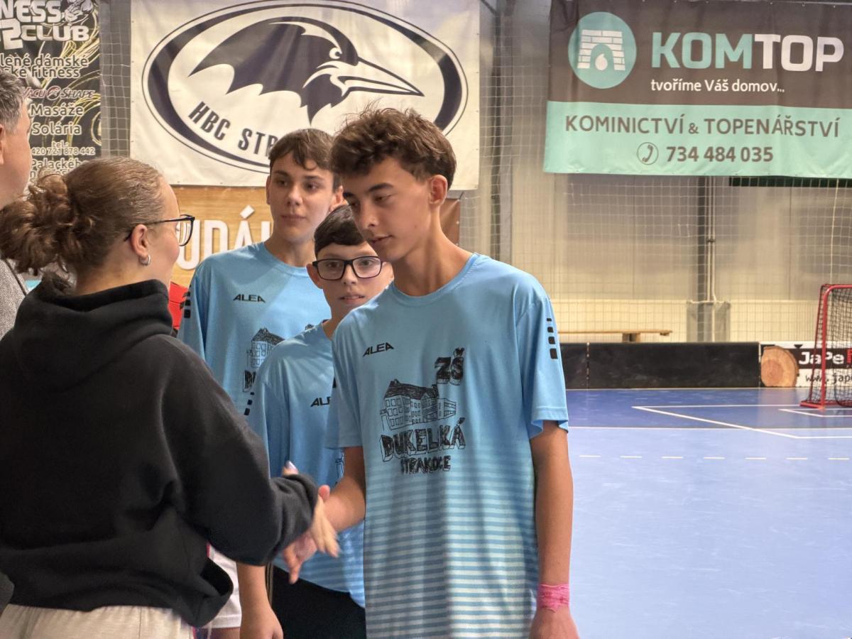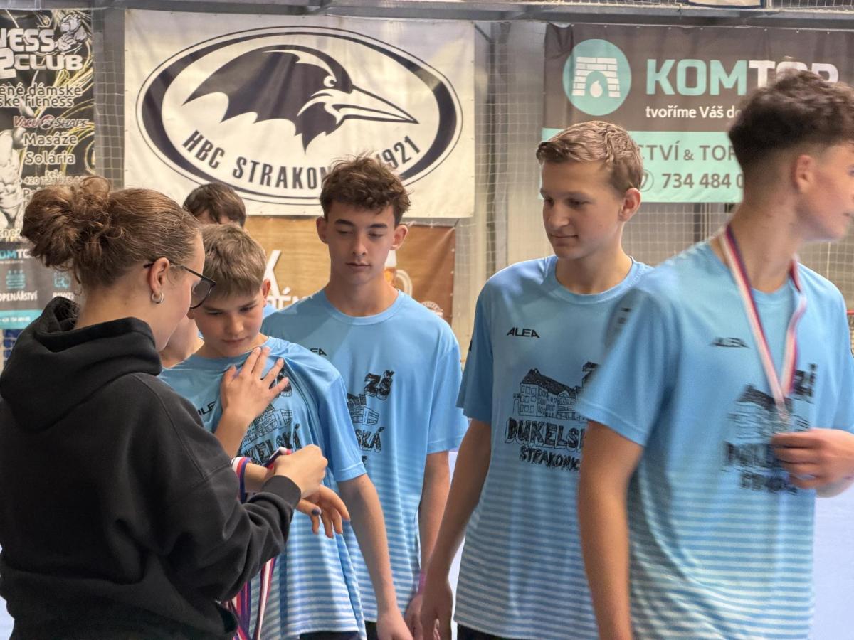 V posledním zápase turnaje se proti nám staví zatím bezkonkurenční výběr ZŠ FLČ. Úvodní hvizd, rychlý útok a gól. Trvalo nám to pouze 15 sekund. Výtečně, teď neusnout na vavřínech. Celý zápas má neuvěřitelné tempo. Nutno podotknout, že soupeřův tým má hvězdné obsazení. Naši kluci je ale převyšují svou běhavostí a tím, že nenechají žádný míček jen tak bez povšimnutí. Celý zápas byl opravdu vypjatý a emotivní. Dukla ale udržela čistou bilanci a nedostala v celém turnaji jediný gól. Ano, tušíte správně... Vyhráváme a postupujeme tak do krajského kola, které se uskuteční v Táboře. Střídačka vybíhá na hrací plochu a všichni se radujeme. Vzduchem lítá v tuto chvíli všechno možné.