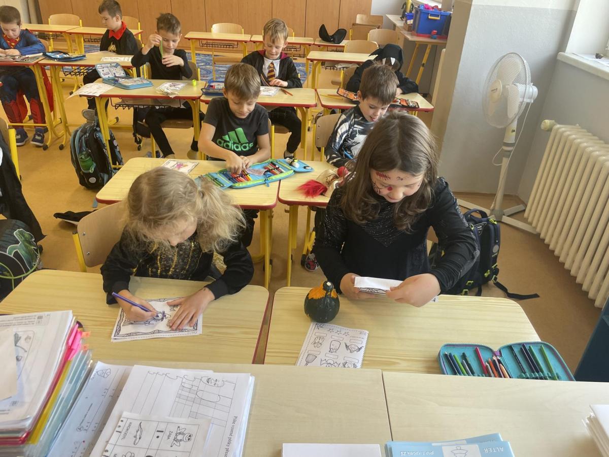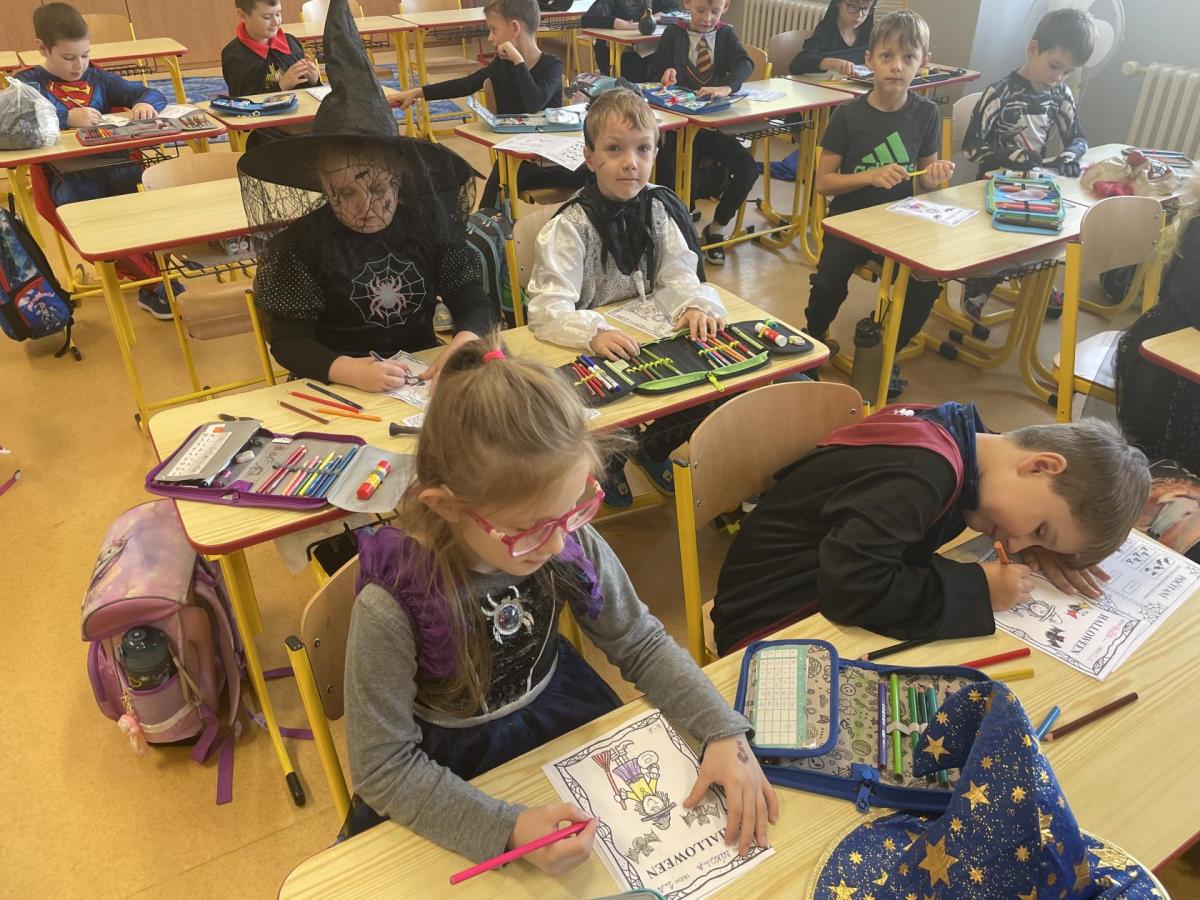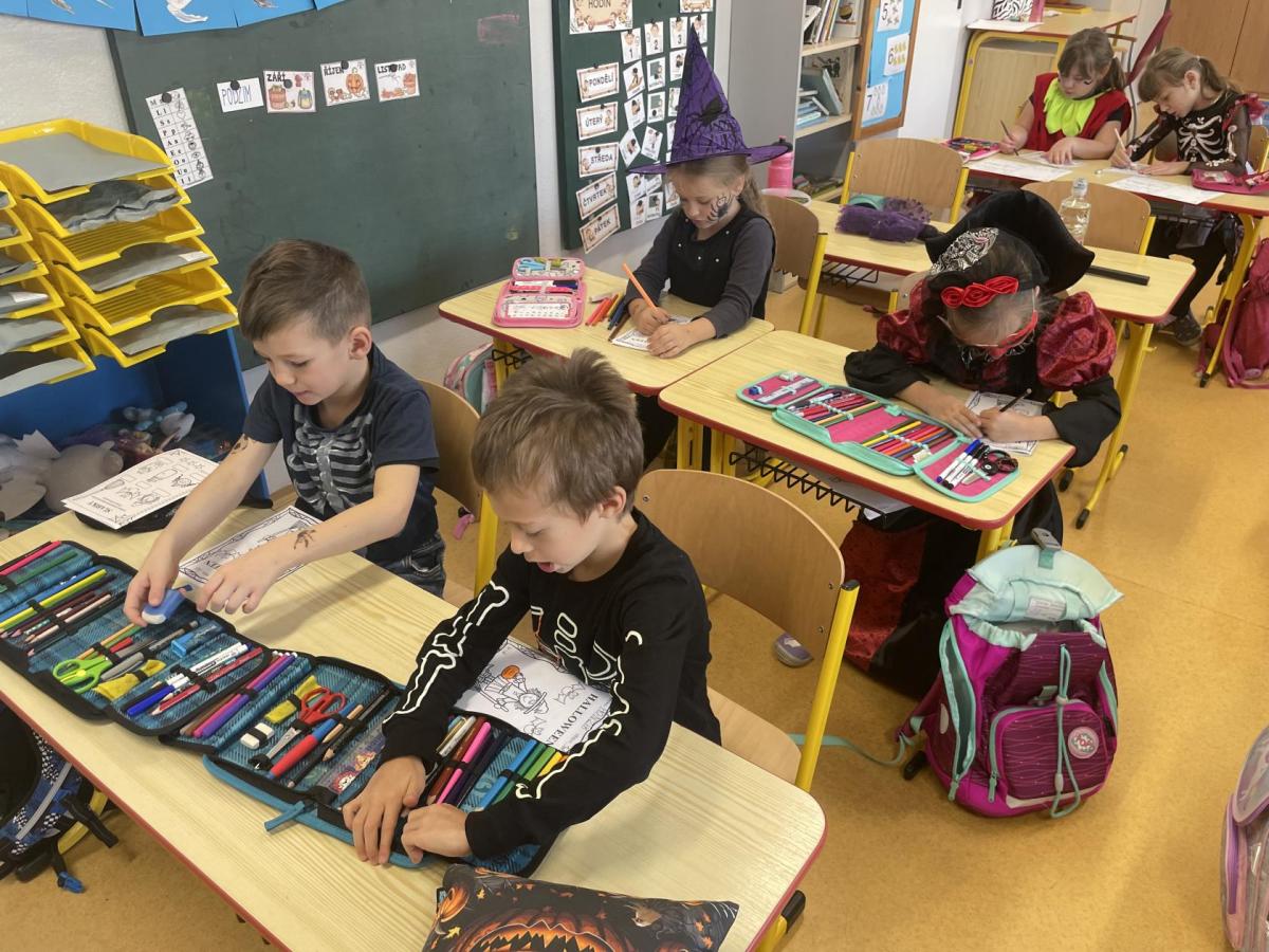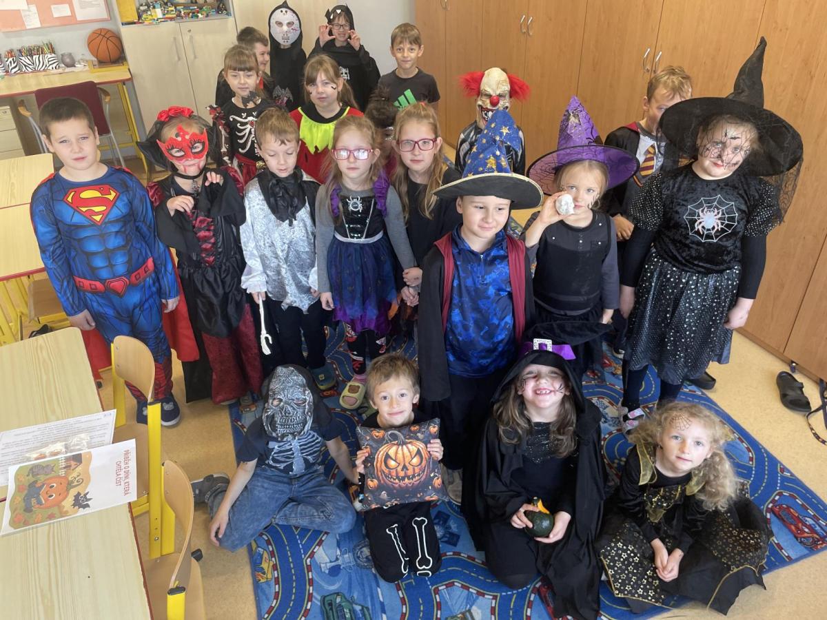 V pátek 31.10. jsme si ve třídě užili halloweenský den. Vyrobili jsme si halloweenskou knížku plnou různých úkolů, moc nás bavilo podzimní obrázkové bingo, stihli jsme i pohádku a každý si nabarvil svou dýni, kterou si na památku odnesl domů. Halloween pak pokračoval také v družině. Byl to prima den.