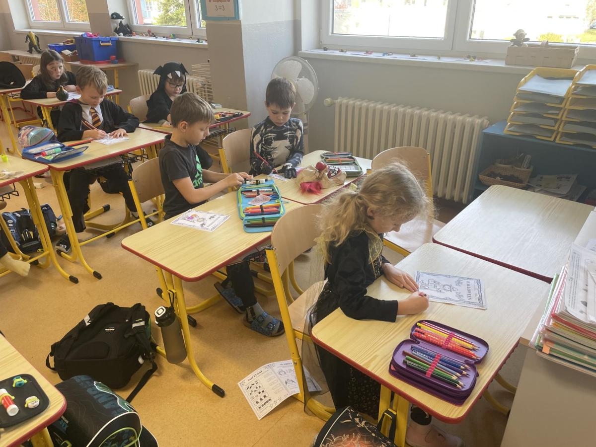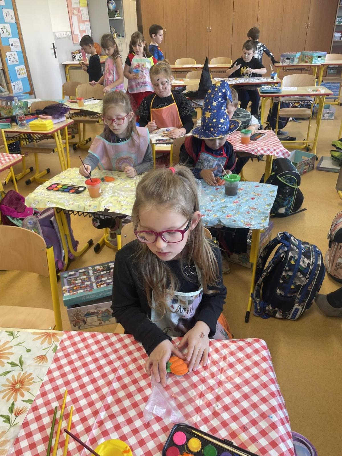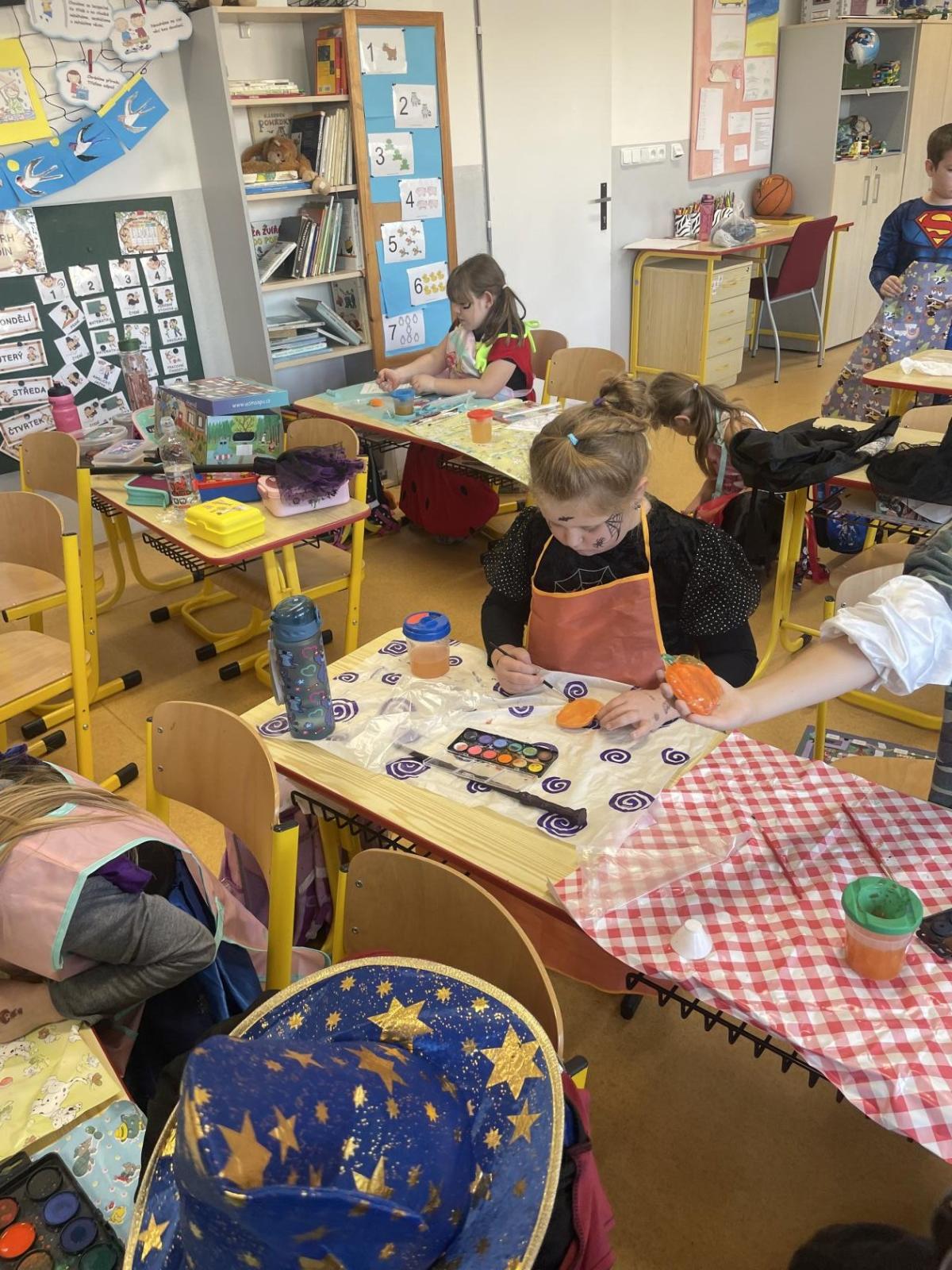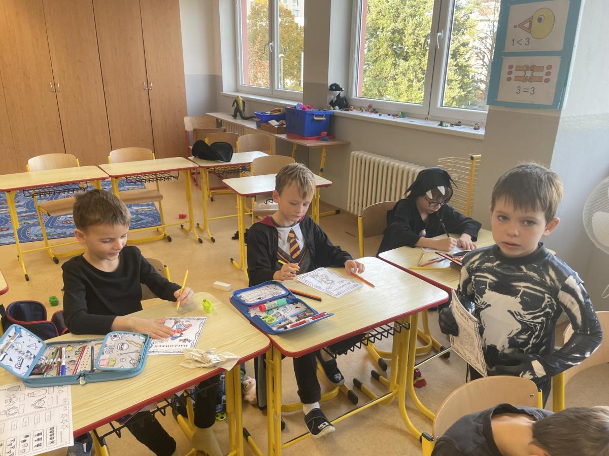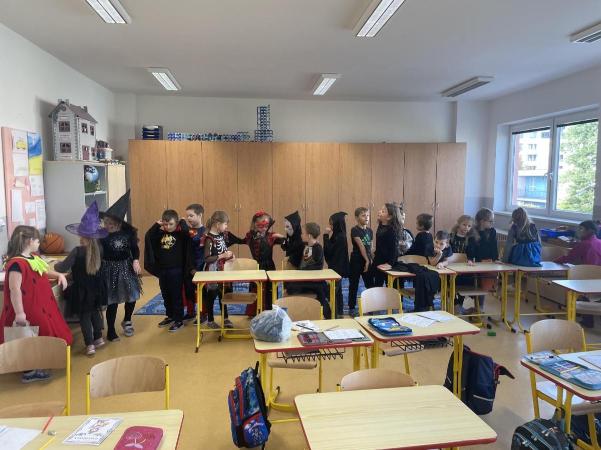 V pátek 31.10. jsme si ve třídě užili halloweenský den. Vyrobili jsme si halloweenskou knížku plnou různých úkolů, moc nás bavilo podzimní obrázkové bingo, stihli jsme i pohádku a každý si nabarvil svou dýni, kterou si na památku odnesl domů. Halloween pak pokračoval také v družině. Byl to prima den.