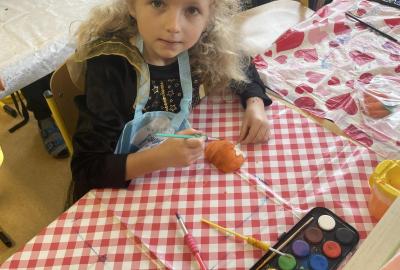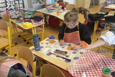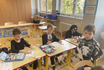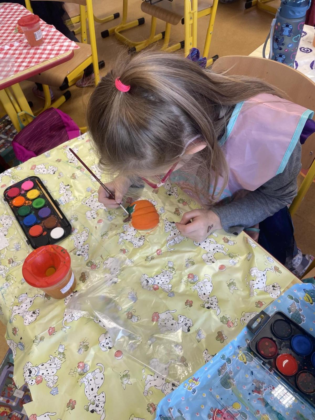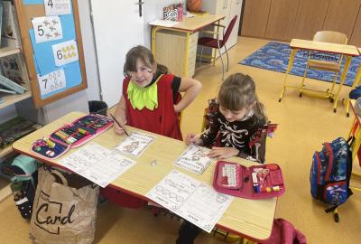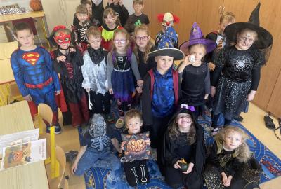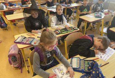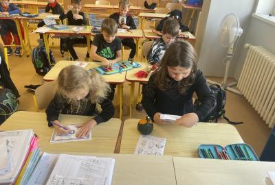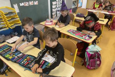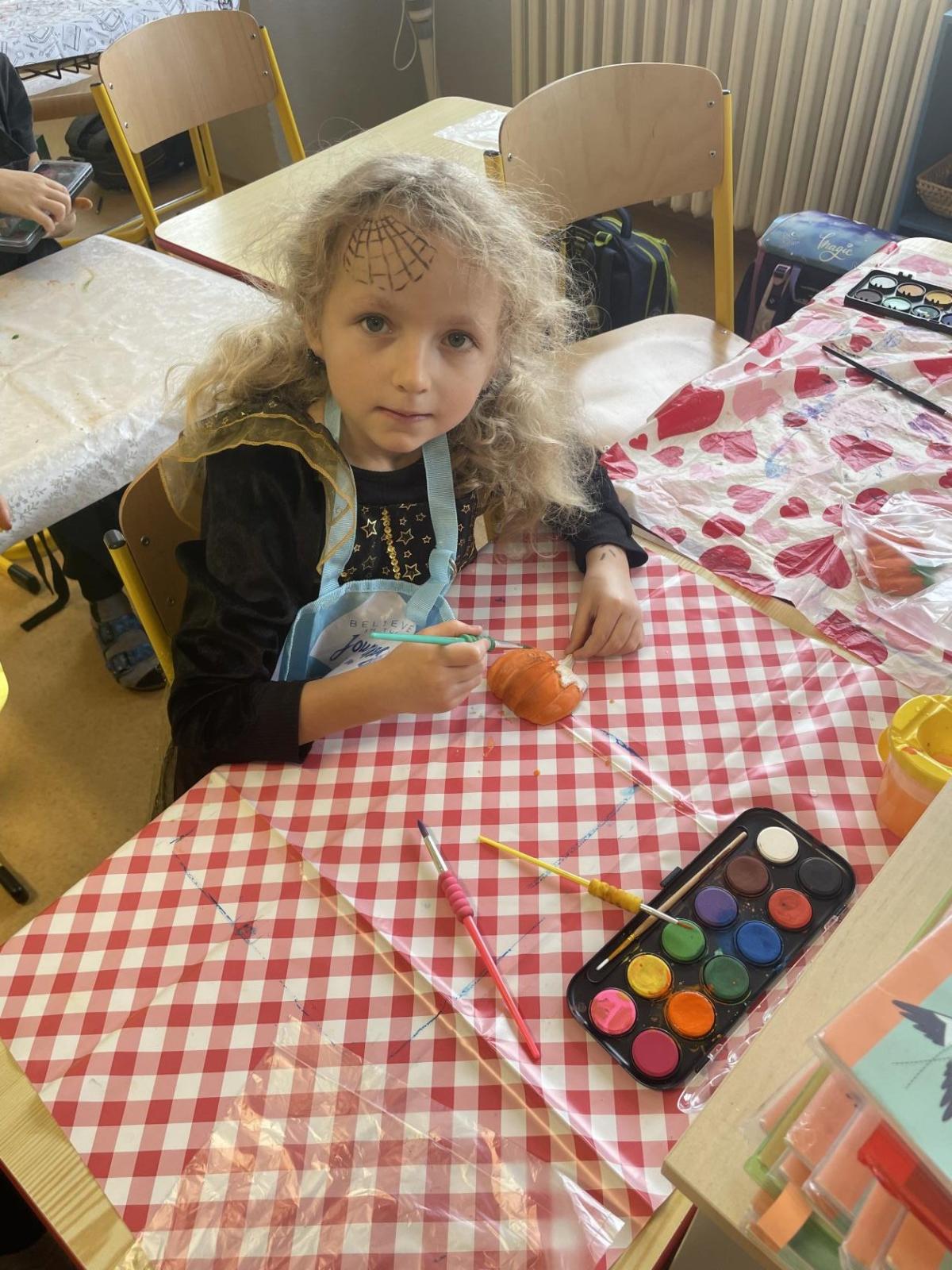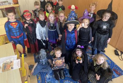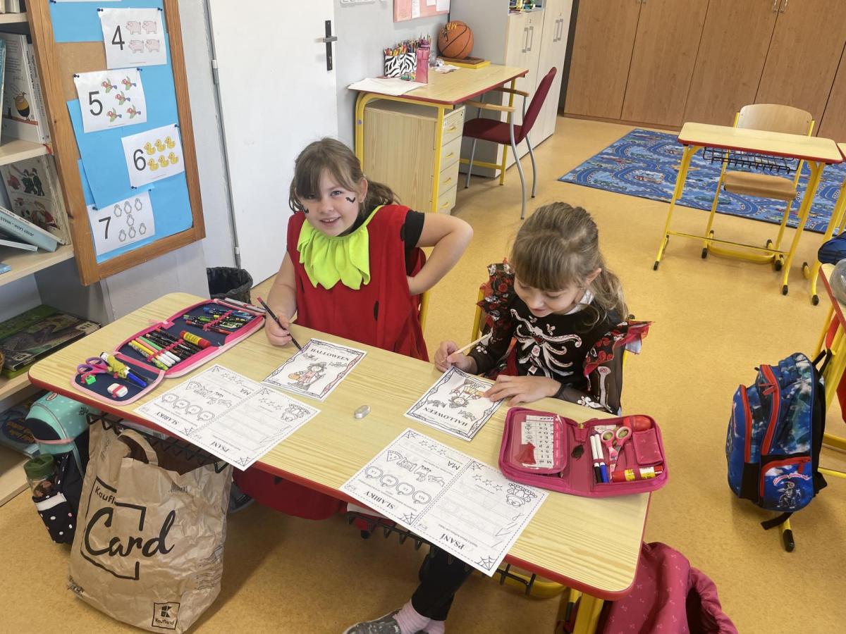 V pátek 31.10. jsme si ve třídě užili halloweenský den. Vyrobili jsme si halloweenskou knížku plnou různých úkolů, moc nás bavilo podzimní obrázkové bingo, stihli jsme i pohádku a každý si nabarvil svou dýni, kterou si na památku odnesl domů. Halloween pak pokračoval také v družině. Byl to prima den.