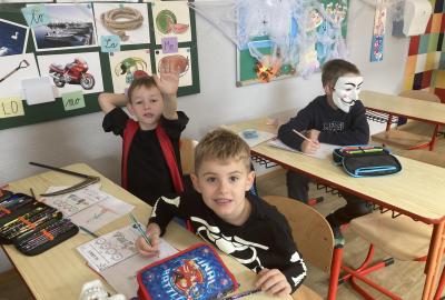 Do lavic v 1.C zasedli 31. října strašidelní žáci.