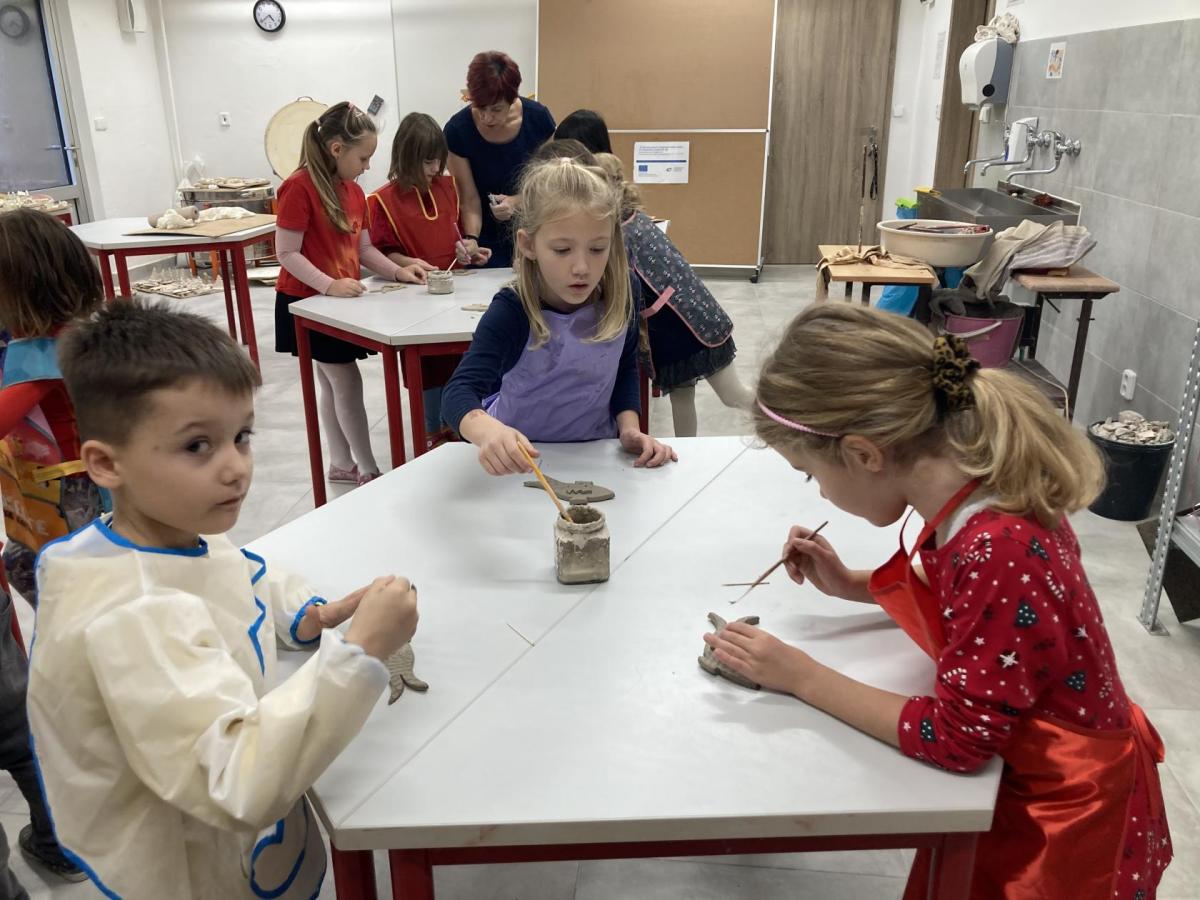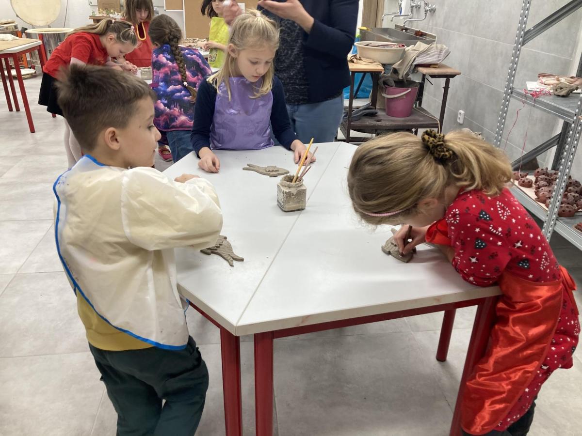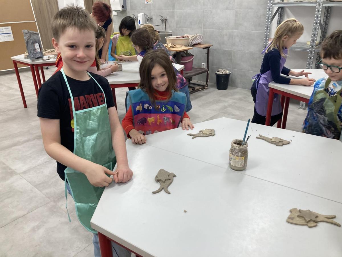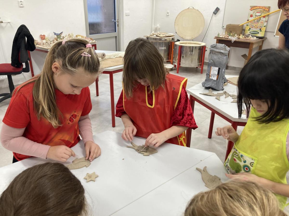 V pátek 21. 11. jsme navštívili keramickými dílnu přímo u nás ve škole. Děti si vyzkoušely práci s hlínou a pustily se do výroby originálního svícnu ve tvaru rybičky.