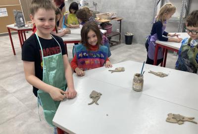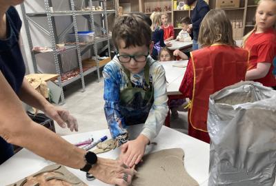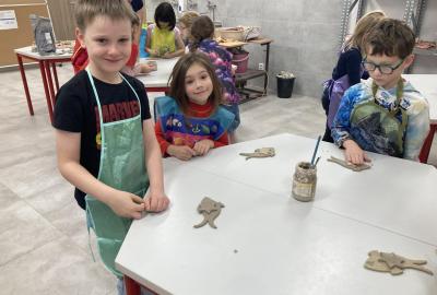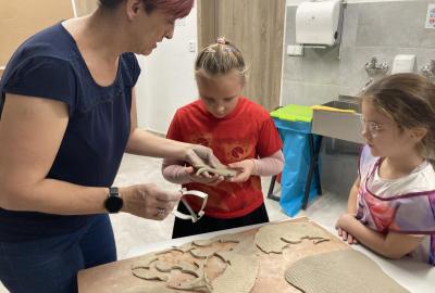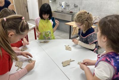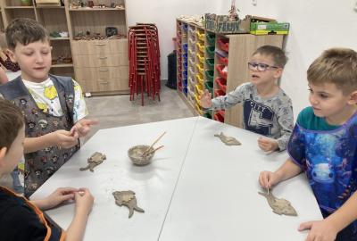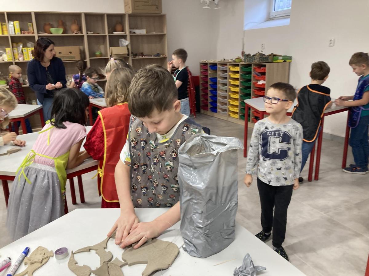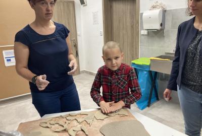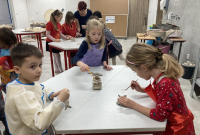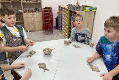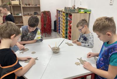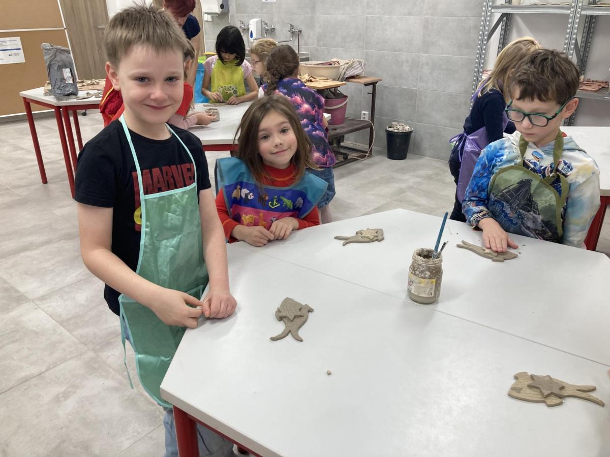 V pátek 21. 11. jsme navštívili keramickými dílnu přímo u nás ve škole. Děti si vyzkoušely práci s hlínou a pustily se do výroby originálního svícnu ve tvaru rybičky.
