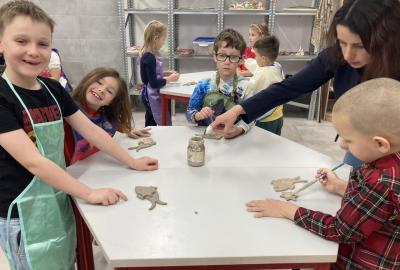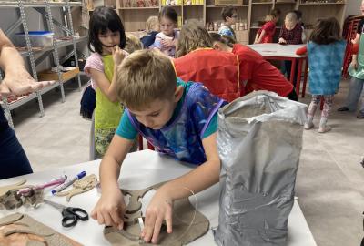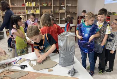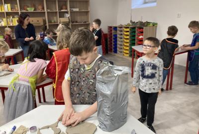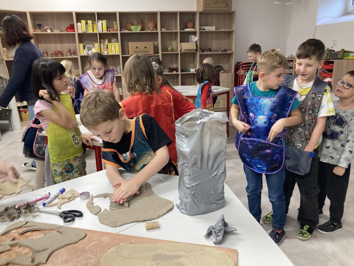 Prvňáčci si vyzkoušeli práci v keramické dílně.