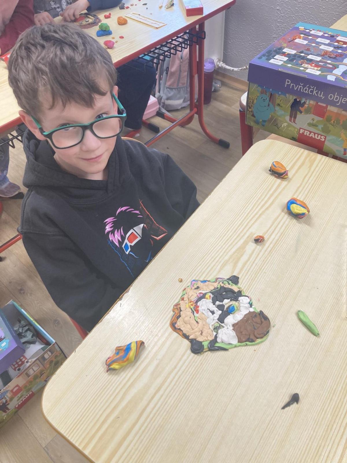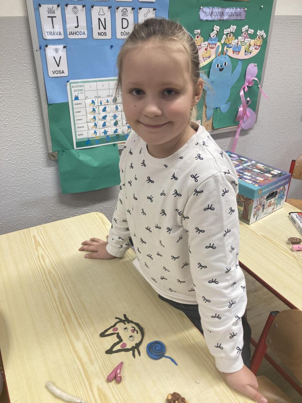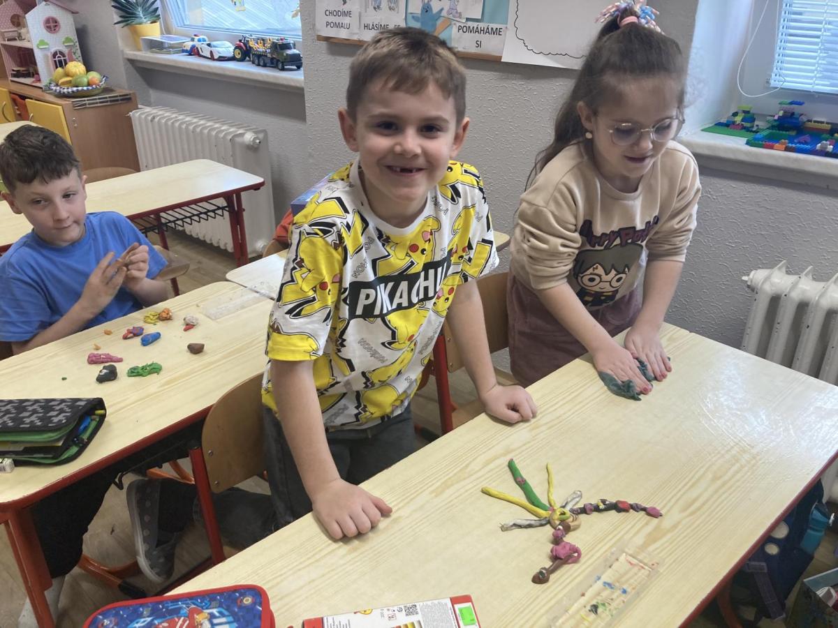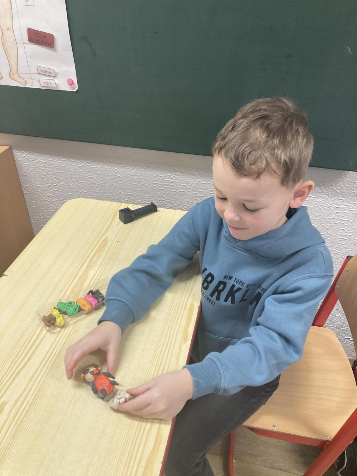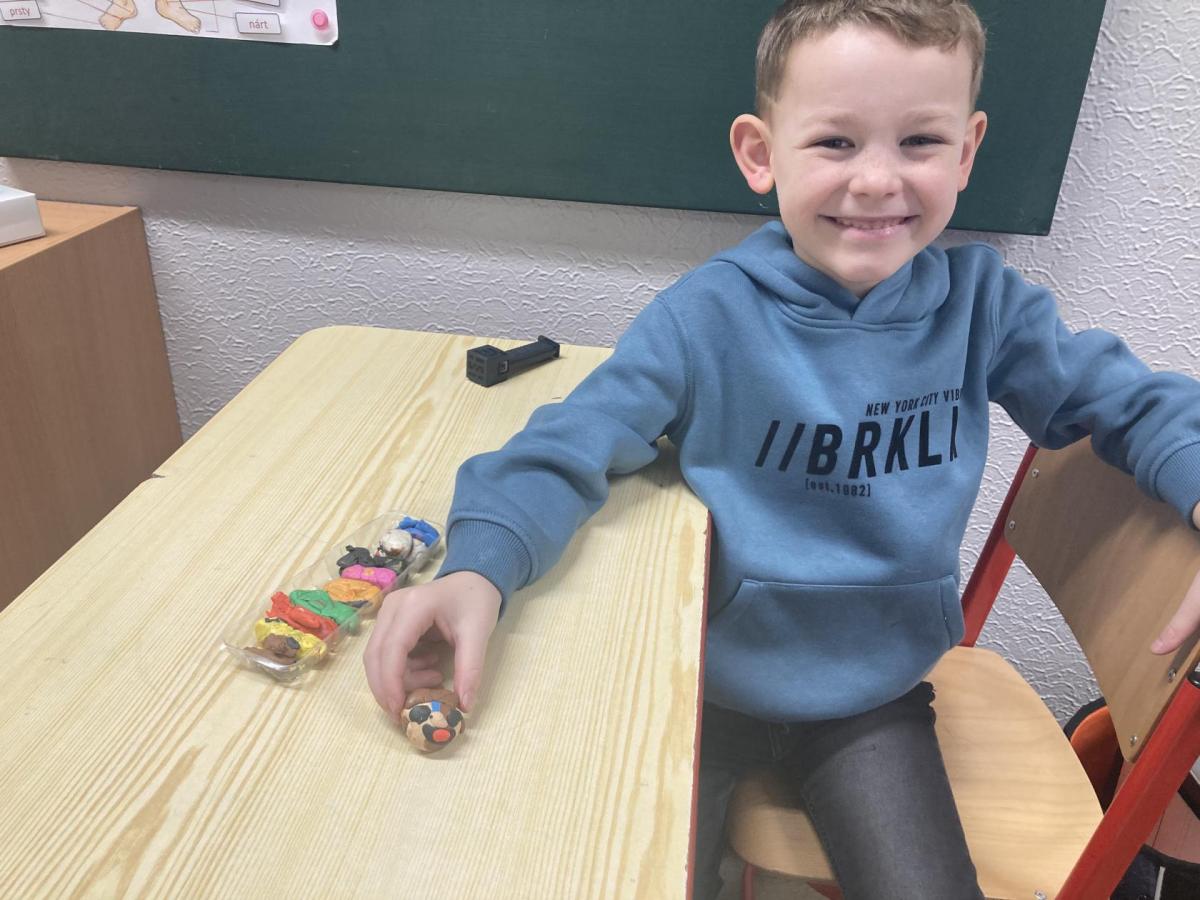 Při pracovních činnostech jsme v předprázdninovém týdnu opět vytáhli modelínu. Modelování nás moc baví! Každý měl za úkol vymodelovat svůj portrét. A jak se práce zdařila? Velmi! Novým spolužákům se ale do učení moc nechtělo, tak nakonec skončili přetvoření jako kočička, žralok a další potvůrky, které nás zrovna napadly.