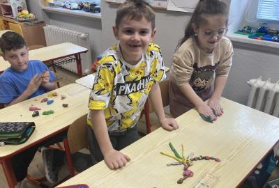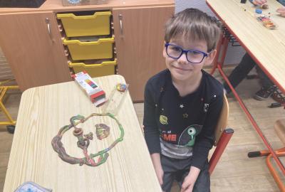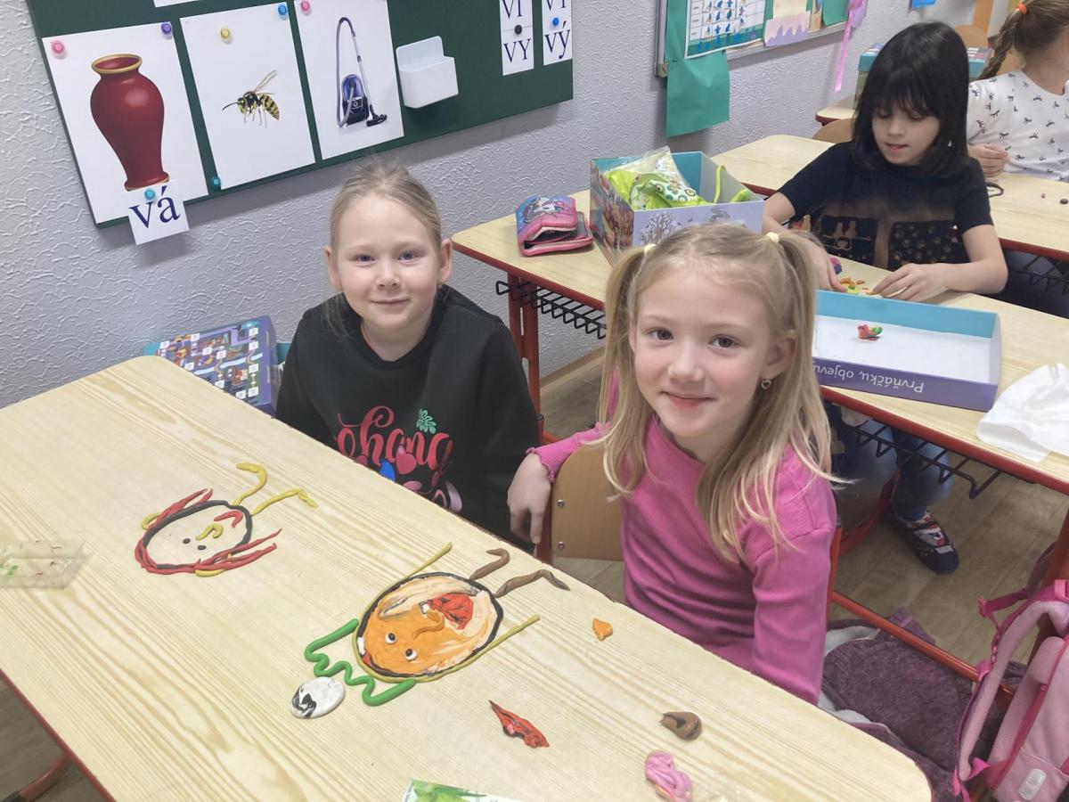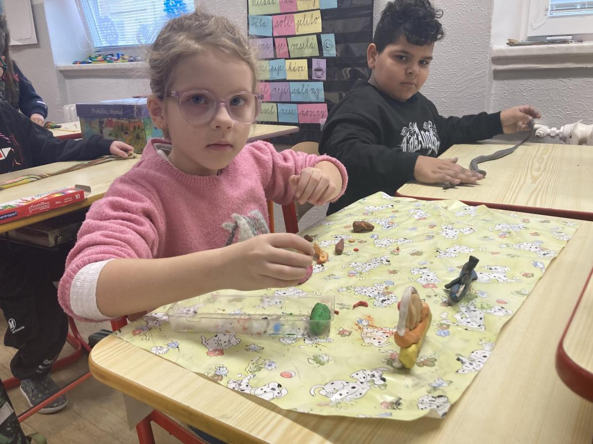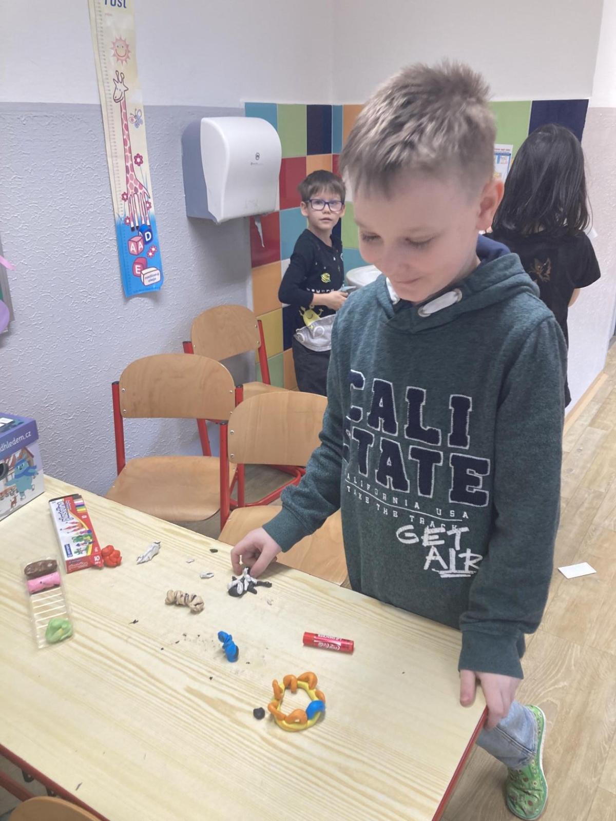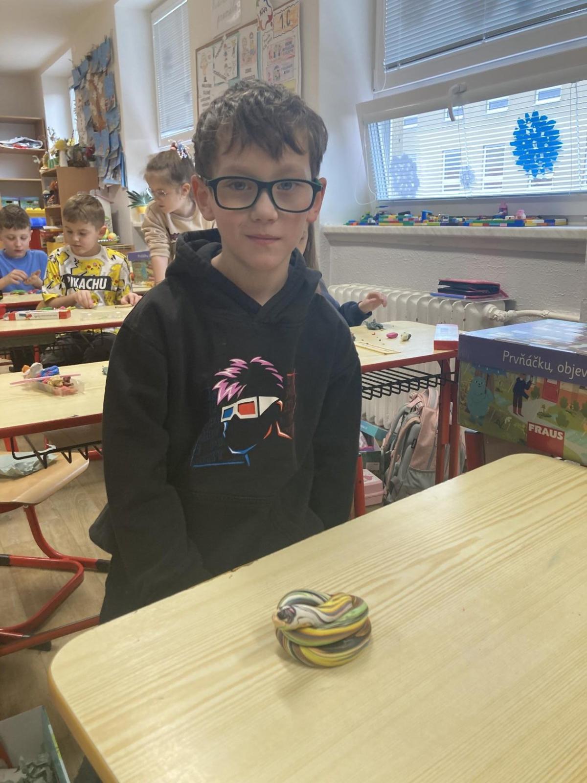 Při pracovních činnostech jsme v předprázdninovém týdnu opět vytáhli modelínu. Modelování nás moc baví! Každý měl za úkol vymodelovat svůj portrét. A jak se práce zdařila? Velmi! Novým spolužákům se ale do učení moc nechtělo, tak nakonec skončili přetvoření jako kočička, žralok a další potvůrky, které nás zrovna napadly.