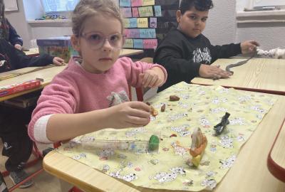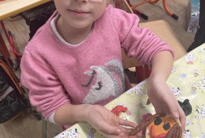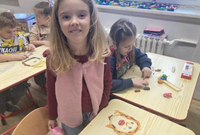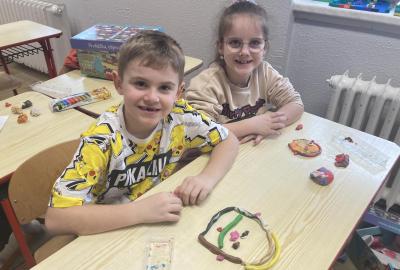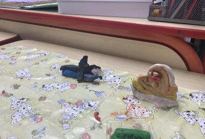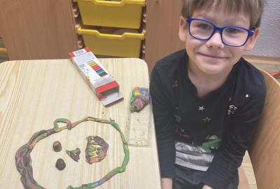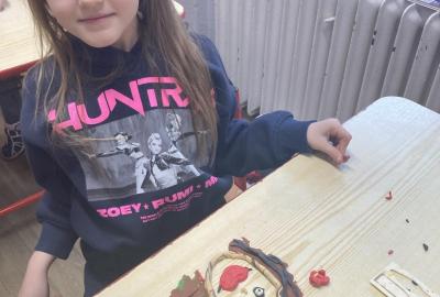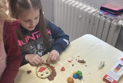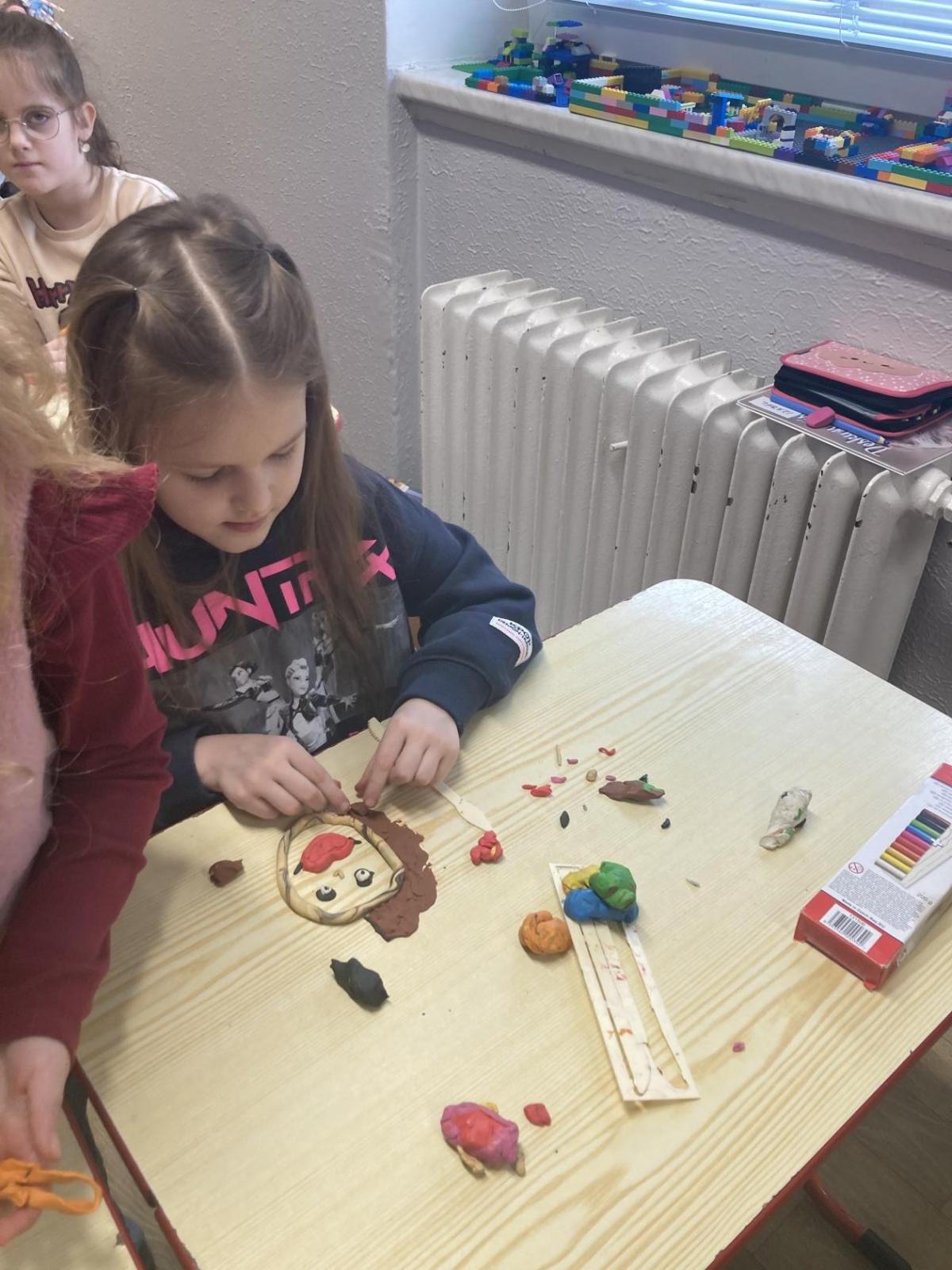 Na konci ledna nás při pracovních činnostech bylo více...každý vymodeloval svoji podobiznu.