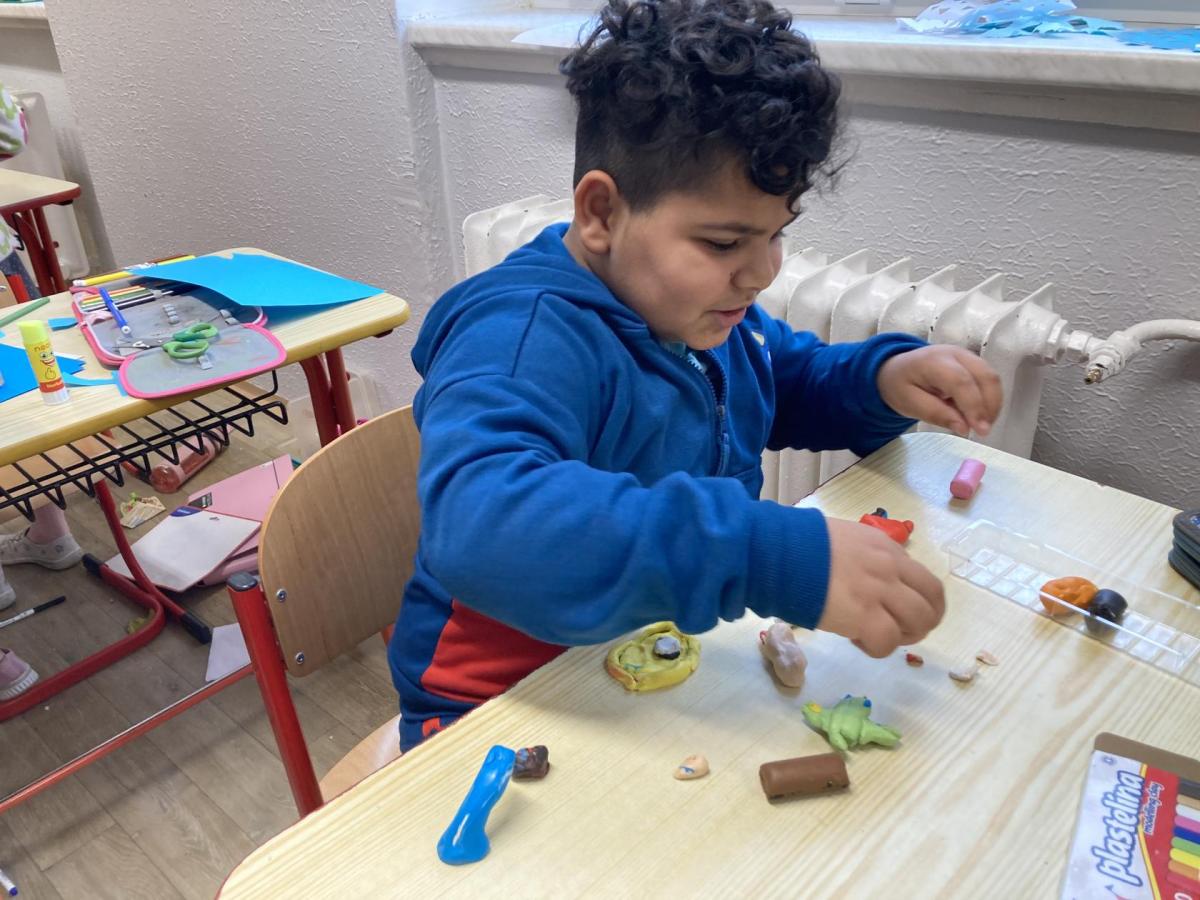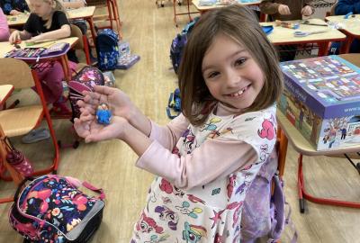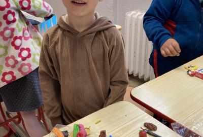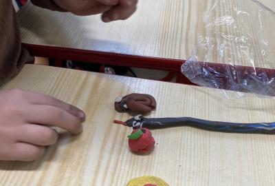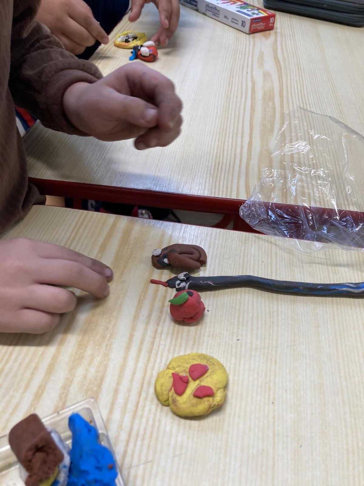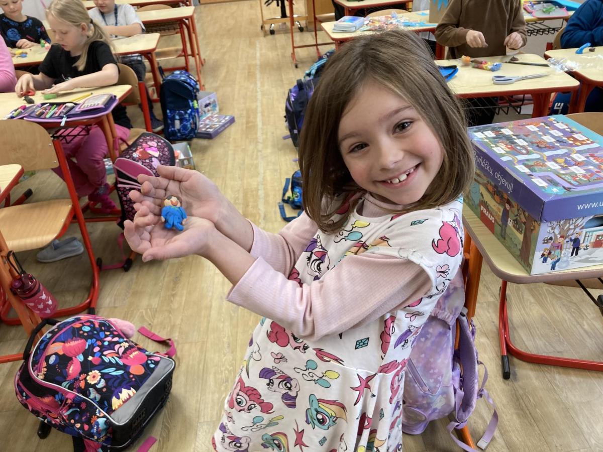Při pracovních činnostech jsme se pro tentokrát pustili do zimní výzdoby třídy. Nazdobili jsme si okna i pelíšek pro Apu. Nejvíce nás ale bavil závěr hodiny, v kterém jsme si mohli něco modelovat. Zapojili jsme veškerou fantazii i šikovné ručičky.