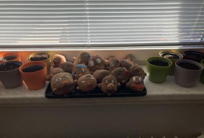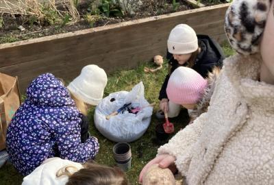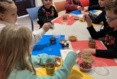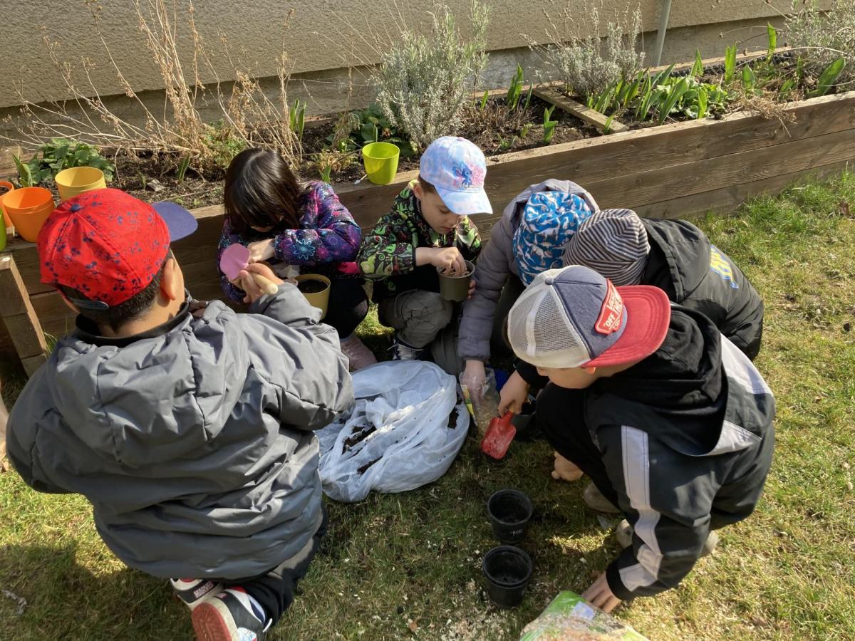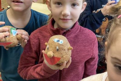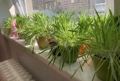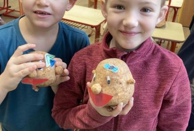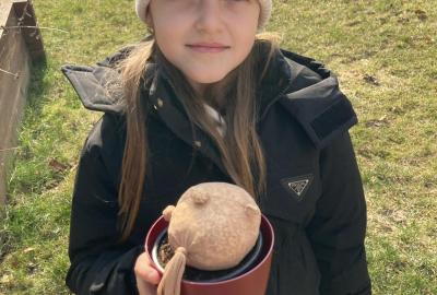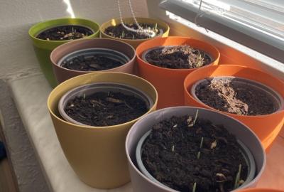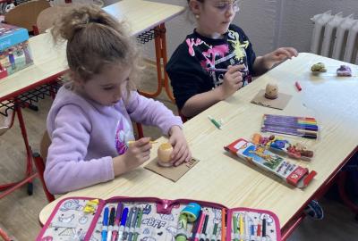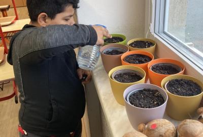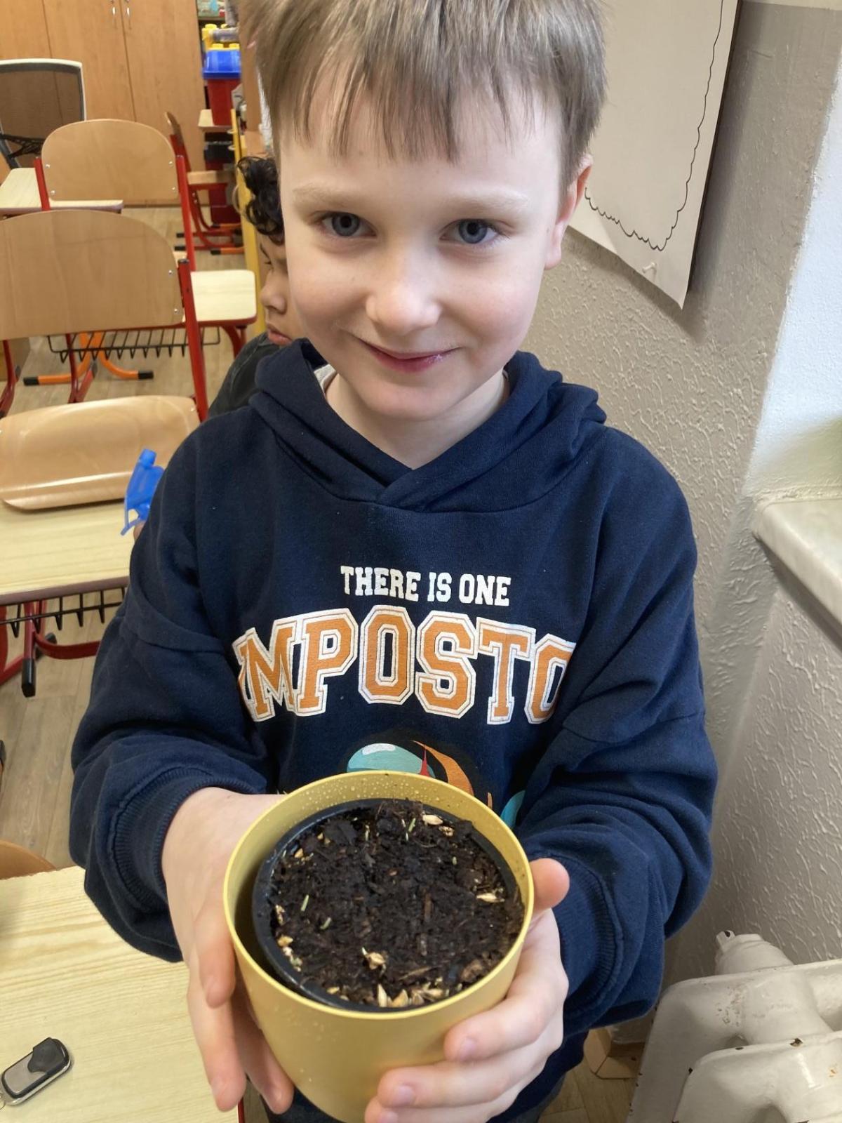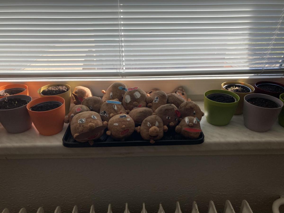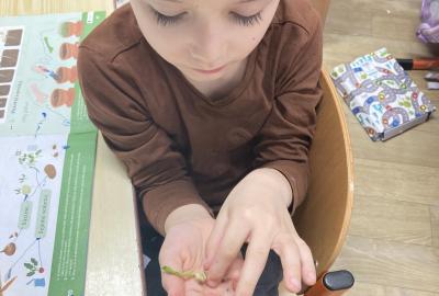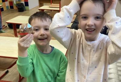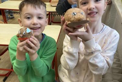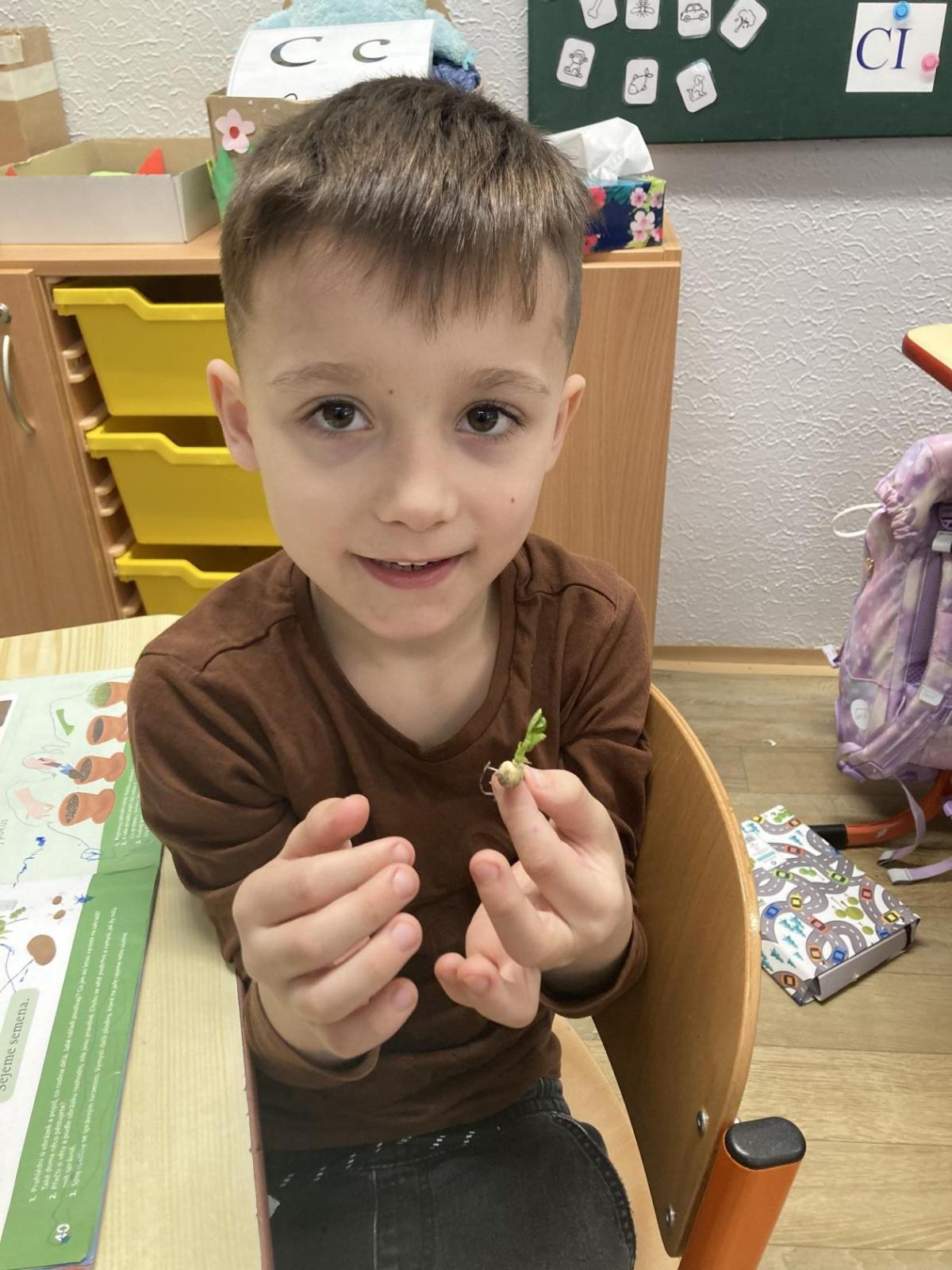 Vyrobili jsme si také veselé „pány Bramboráky“, zaseli jsme osení a učíme se, jak správně pečovat o rostlinky. S velkým zájmem pozorujeme, jak z malého semínka postupně roste hrášek, a radost nám dělají i řeřichové „vlásky“, které jsme zaseli našim pánům vajíčkům.