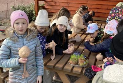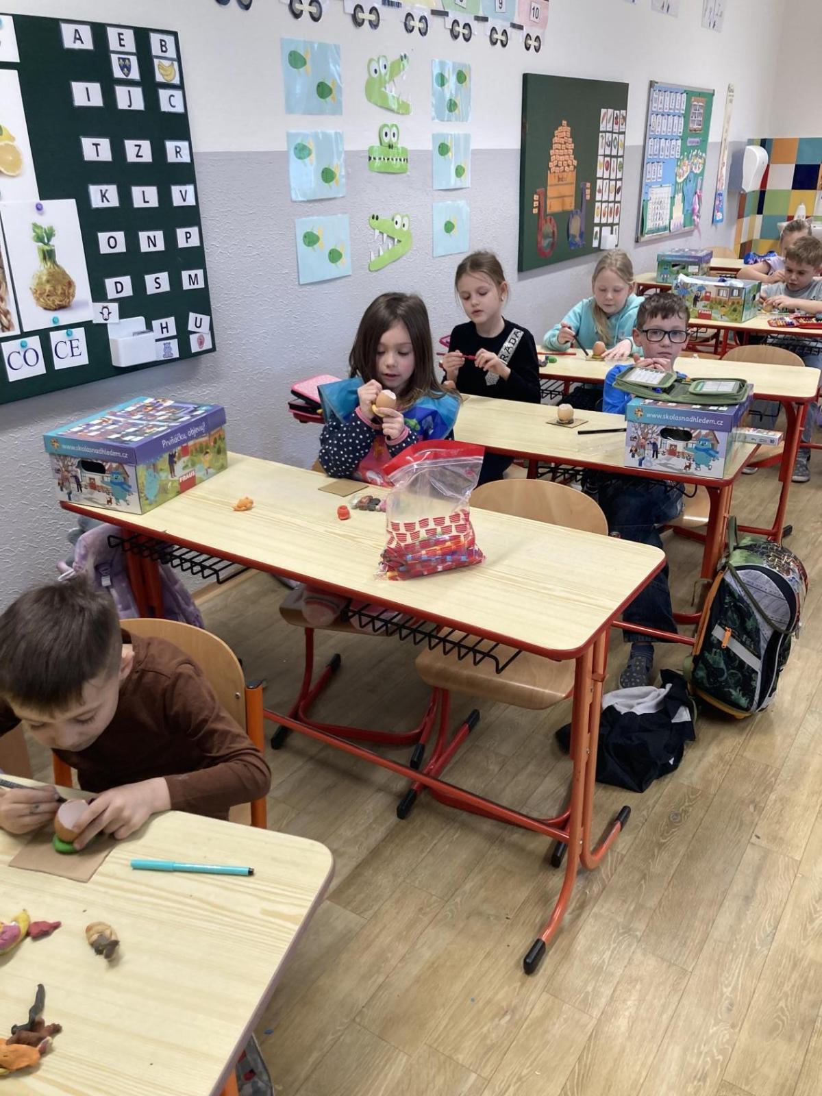 Jaro jsme v 1. C přivítali tvořivě, hravě i na čerstvém vzduchu. Čekala nás venkovní výuka, sázení, pozorování přírody i velikonoční tvoření.