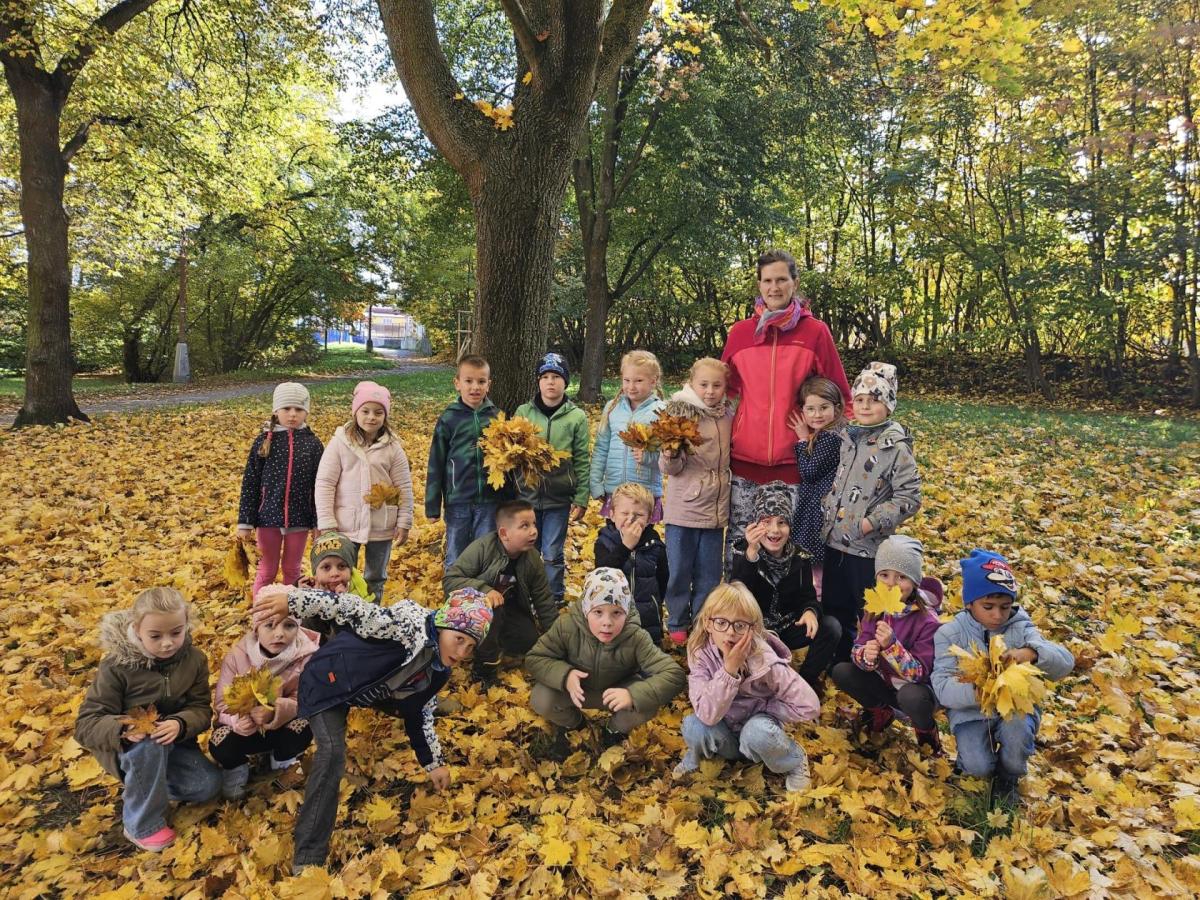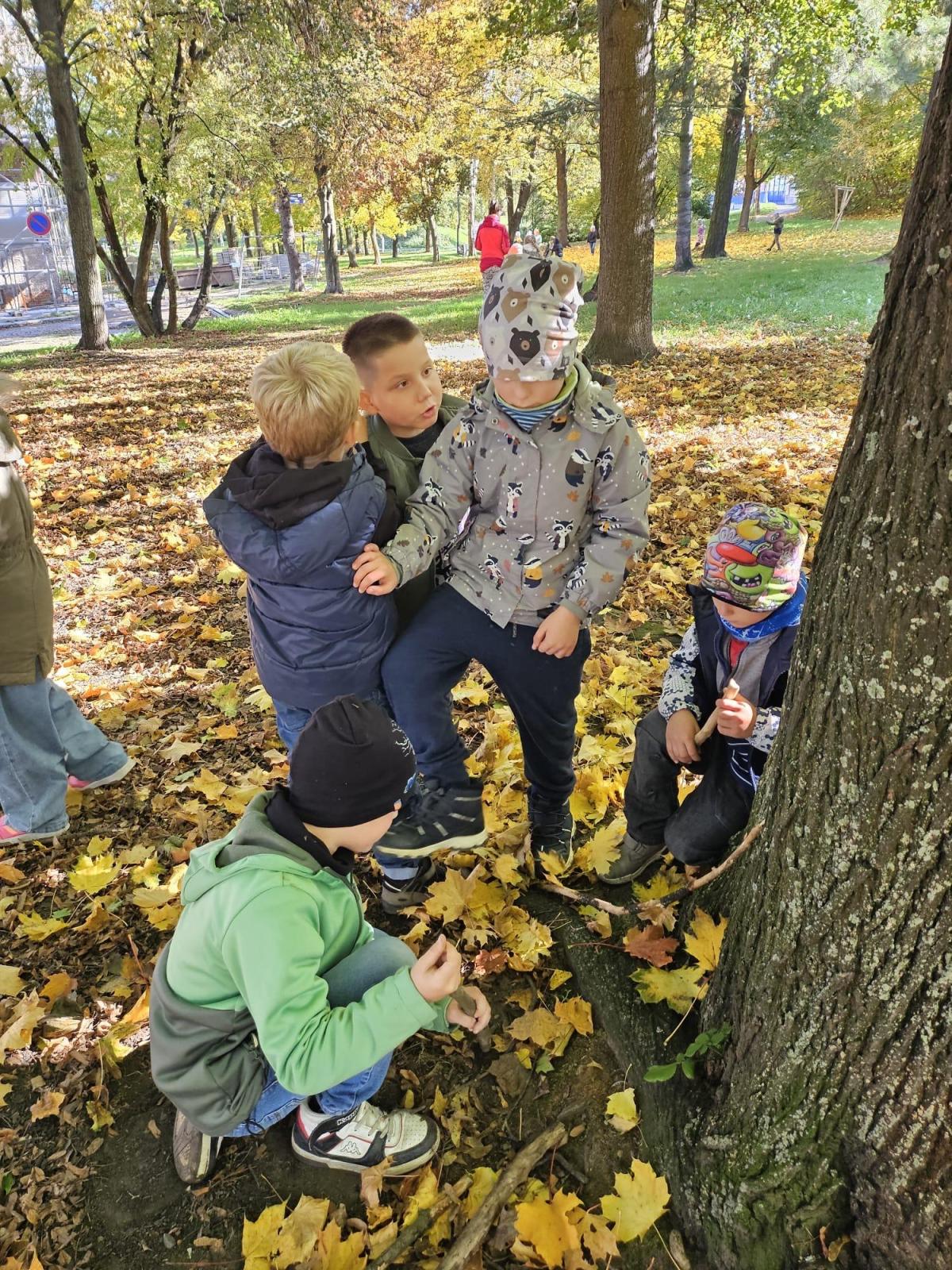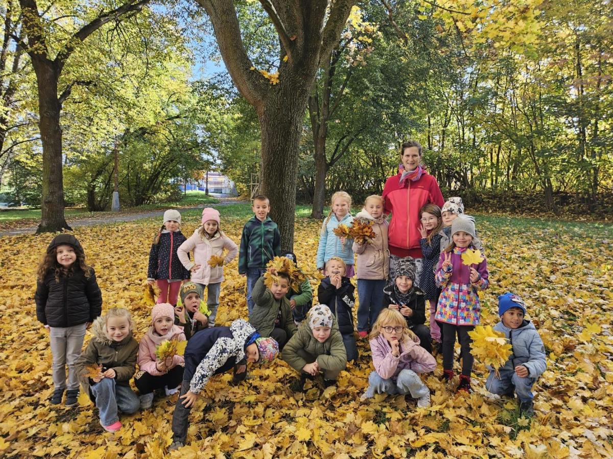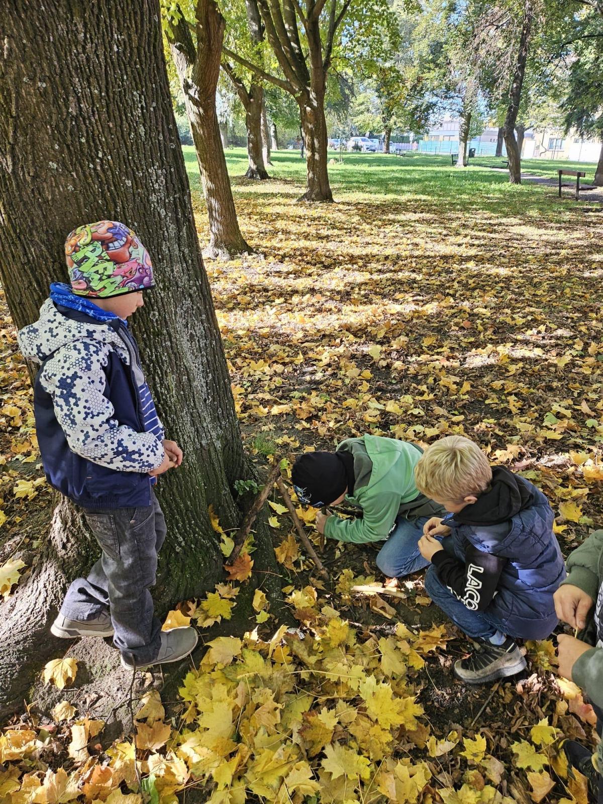 Dnes jsme o prvouce šli do parku, sbírali a pojmenovávali listy, stromy, stavěli domečky z přírodnin a užívali si podzimních barev.